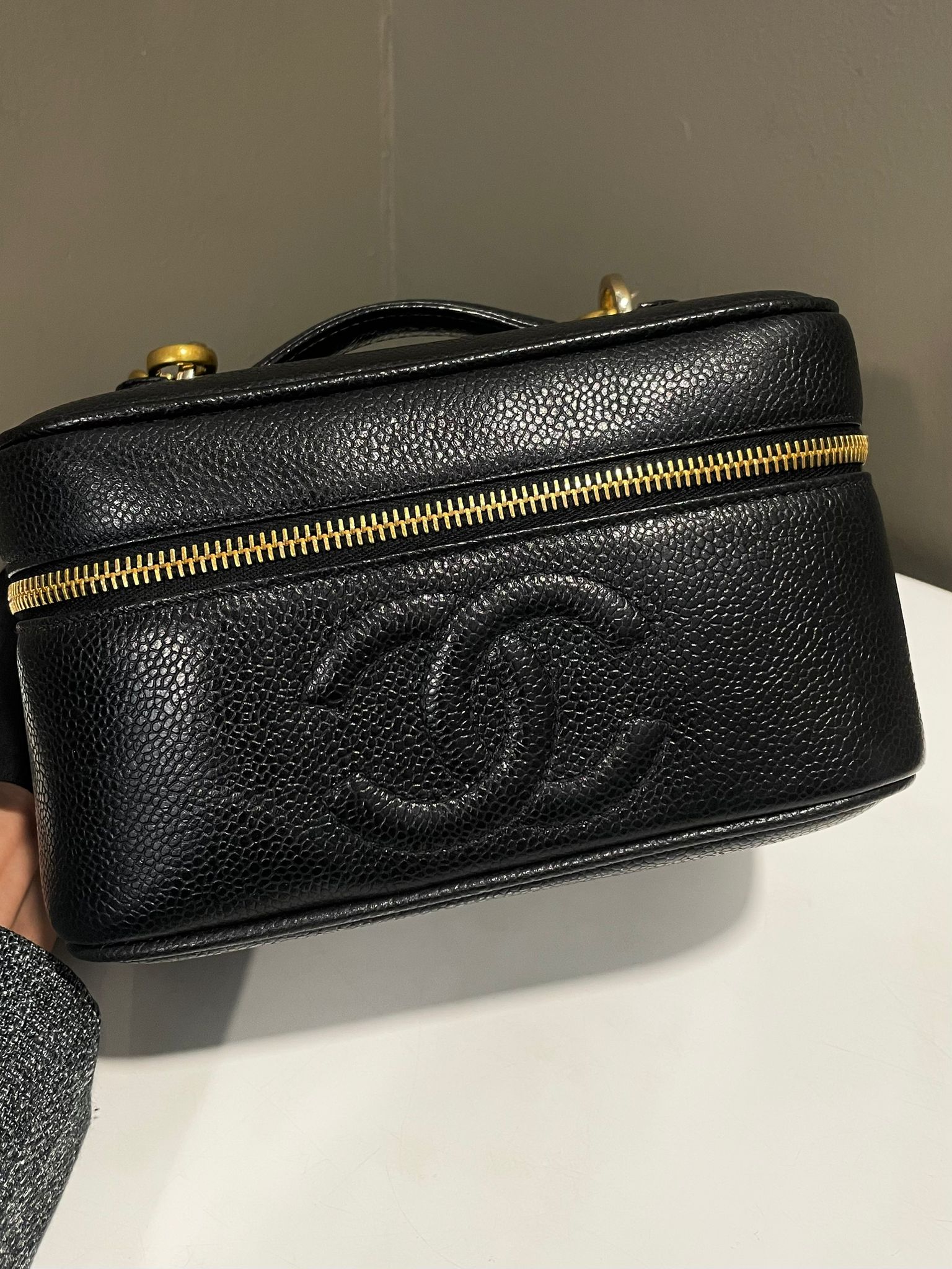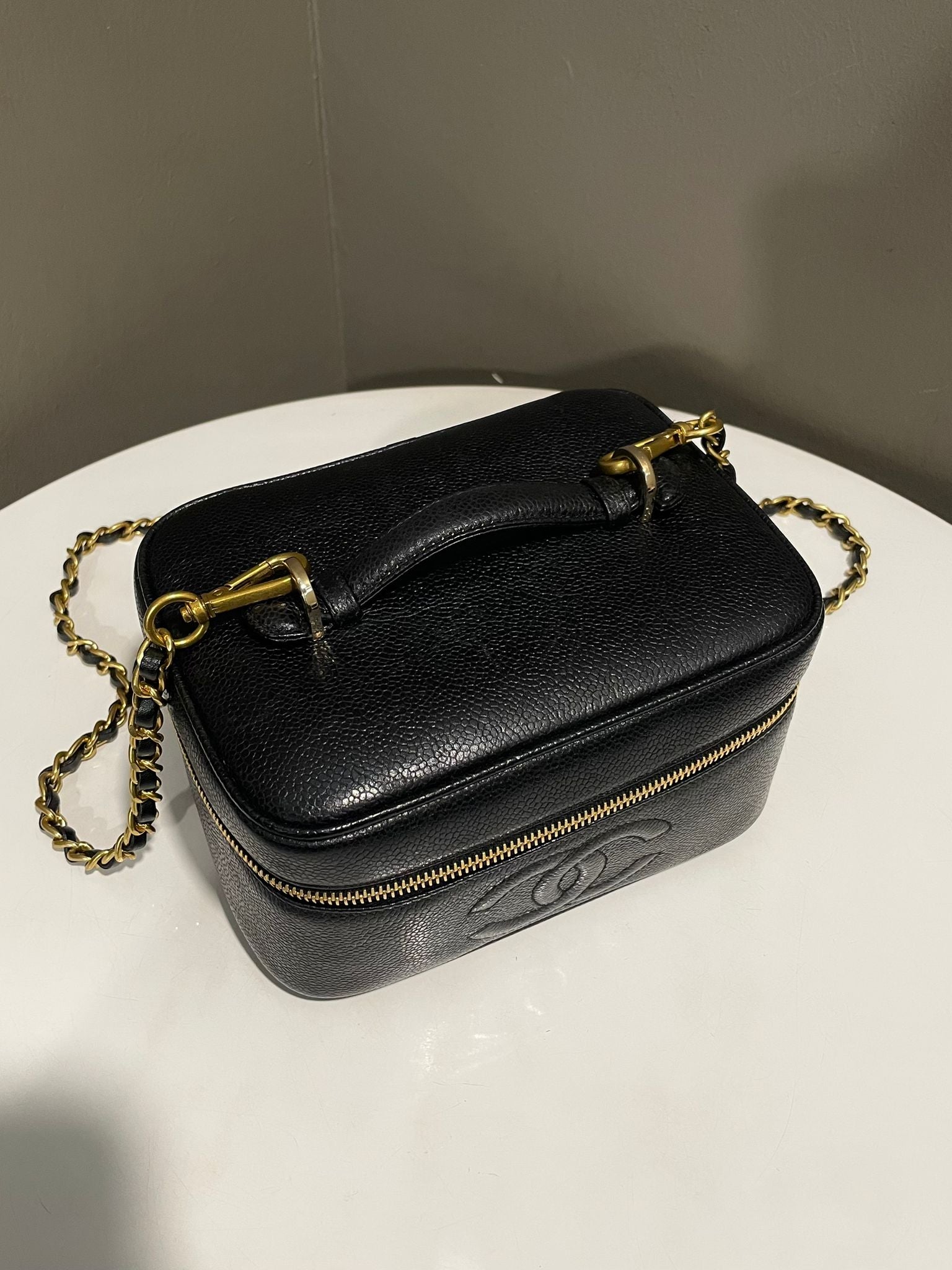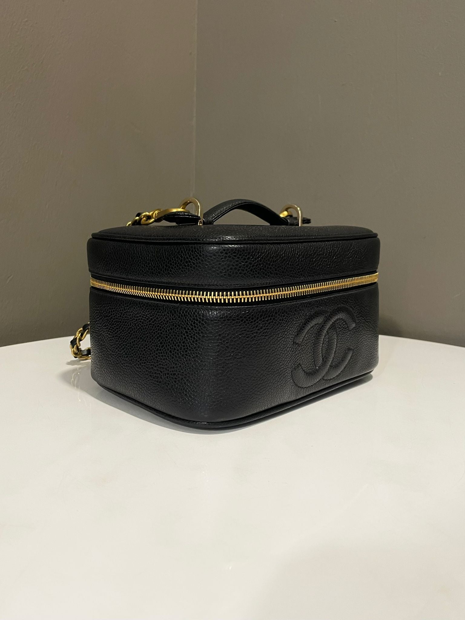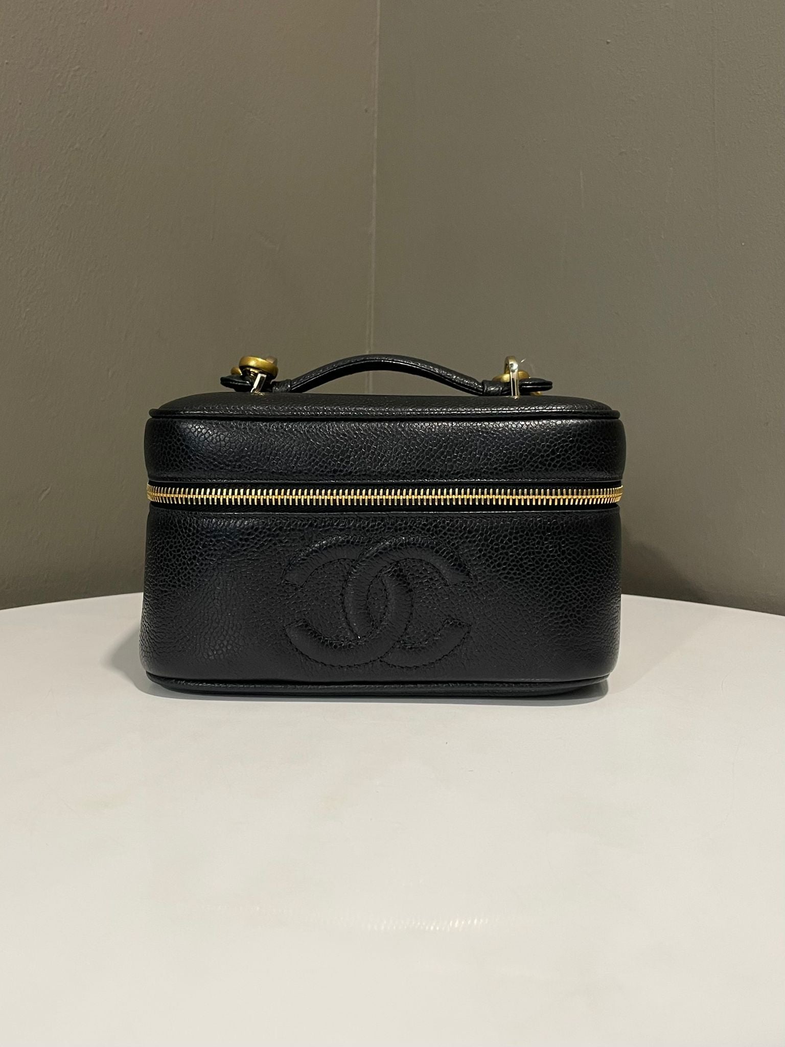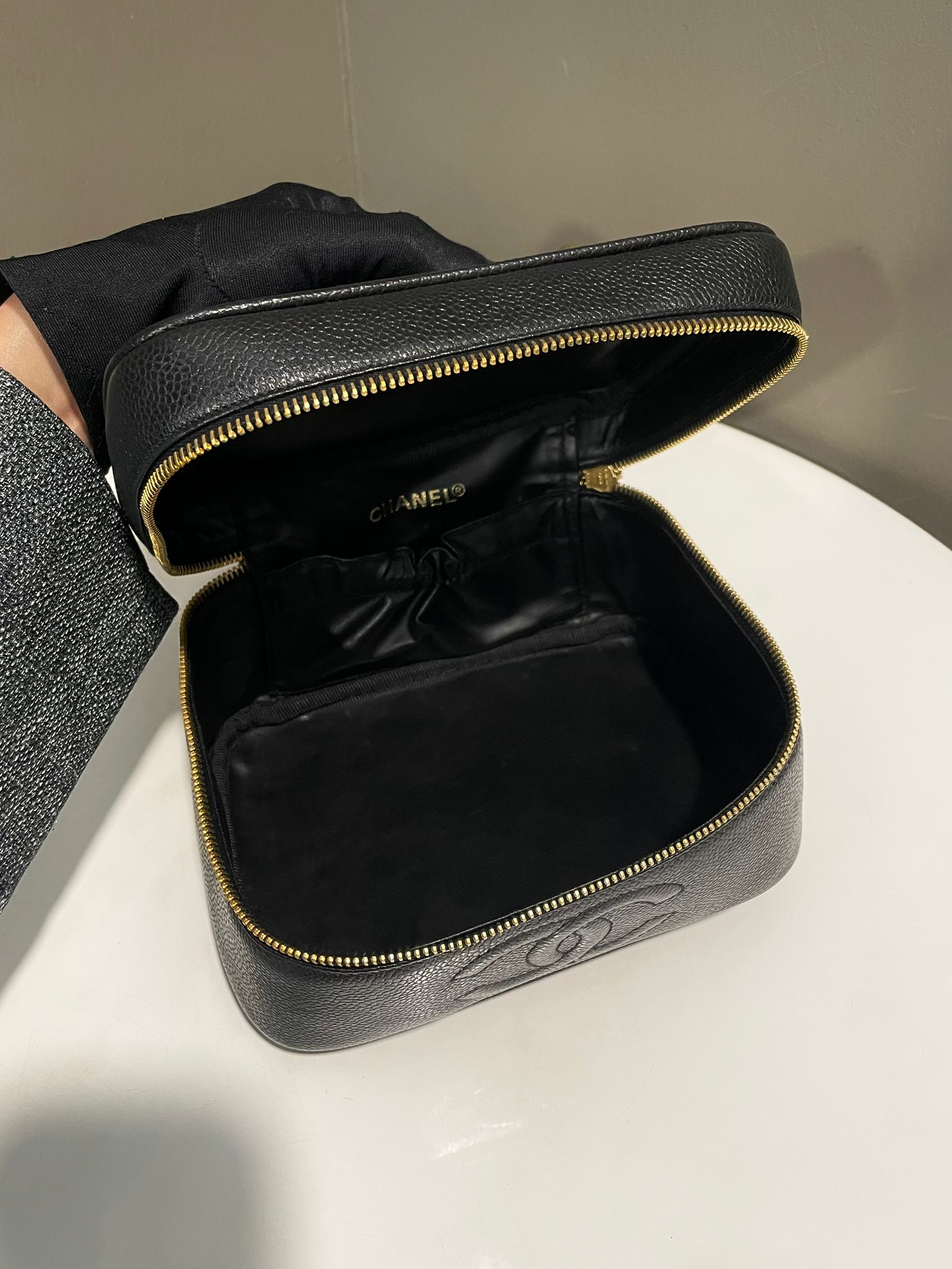 Chanel Vintage CC Caviar Vanity Case Black Caviar