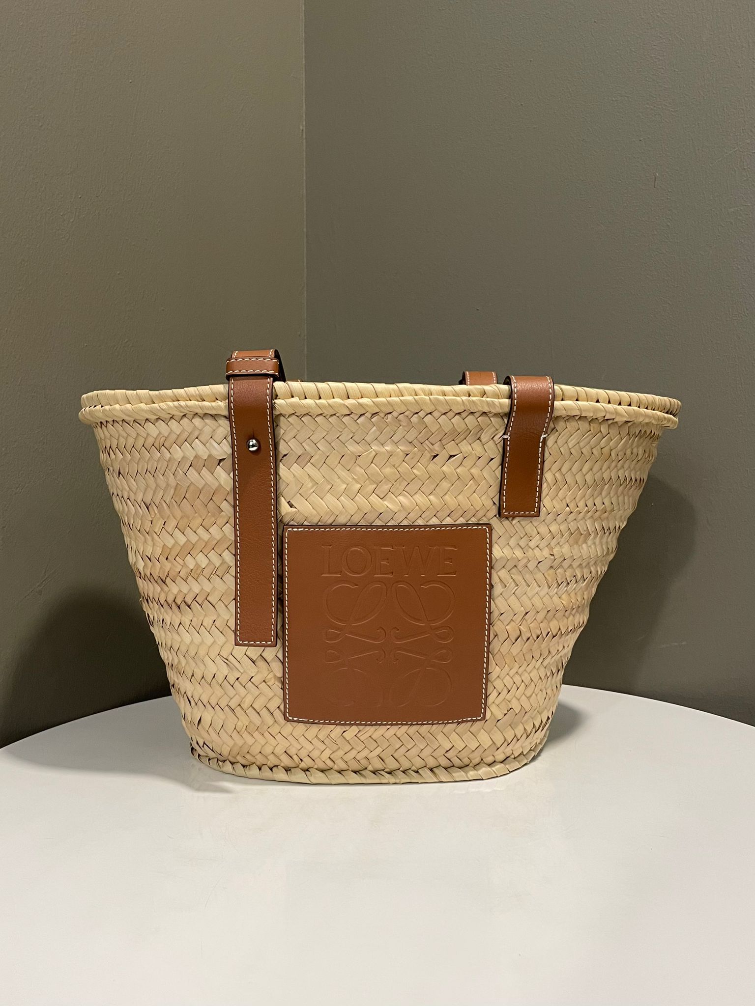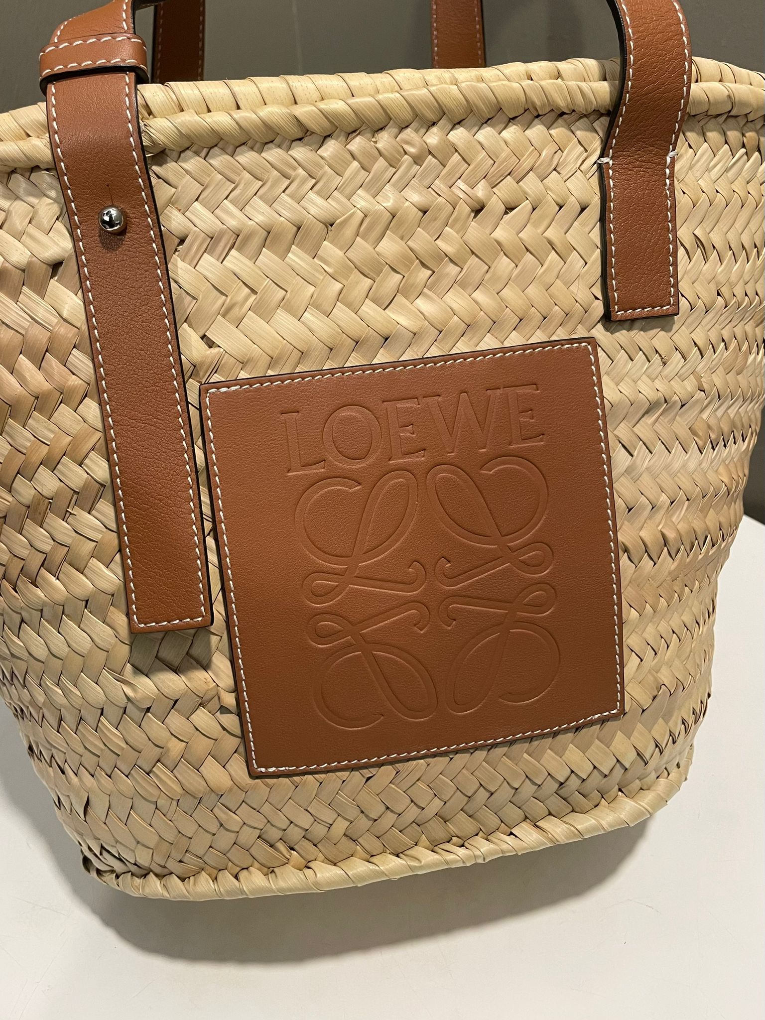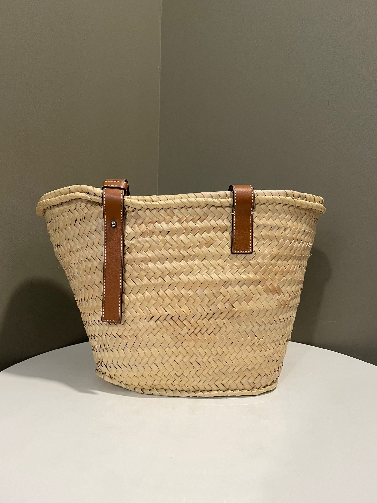 Loewe Small Basket Bag Natural Palm leaf, Calf