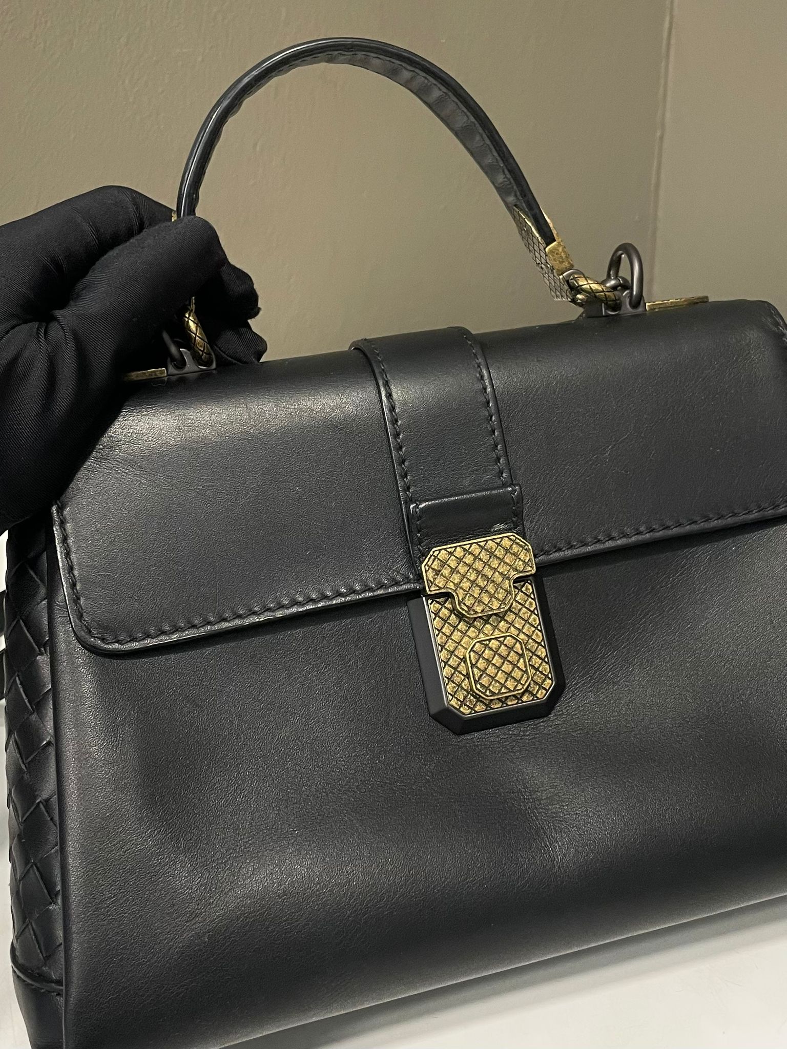 Bottega Veneta Mini Piazza Bag Black Calf Brunito