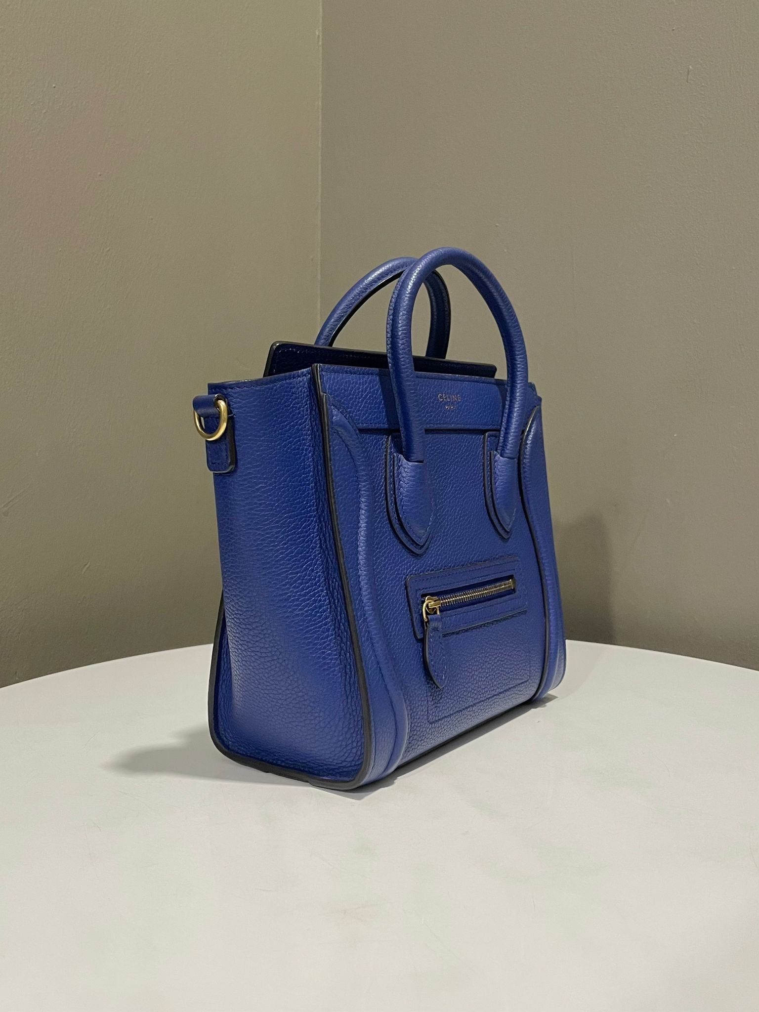 Celine Nano Luggage Tote Bag Electric Blue Grainy Leather