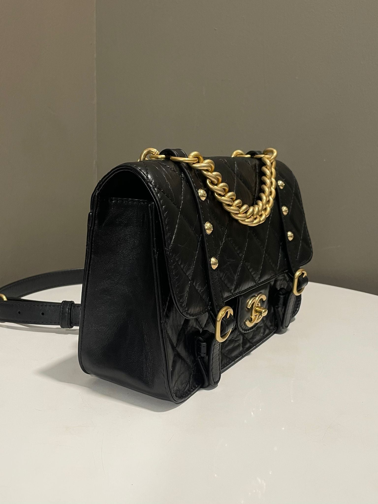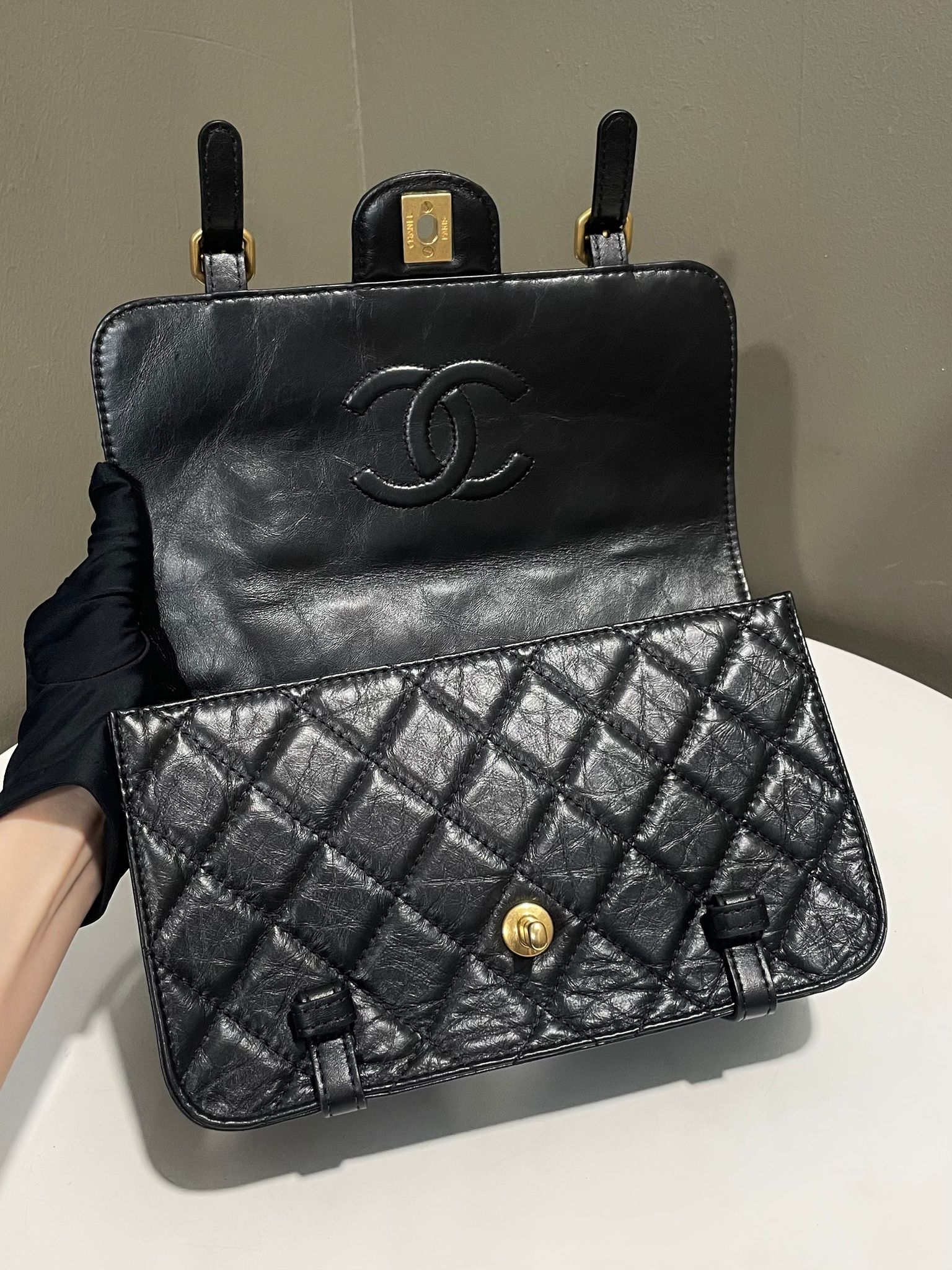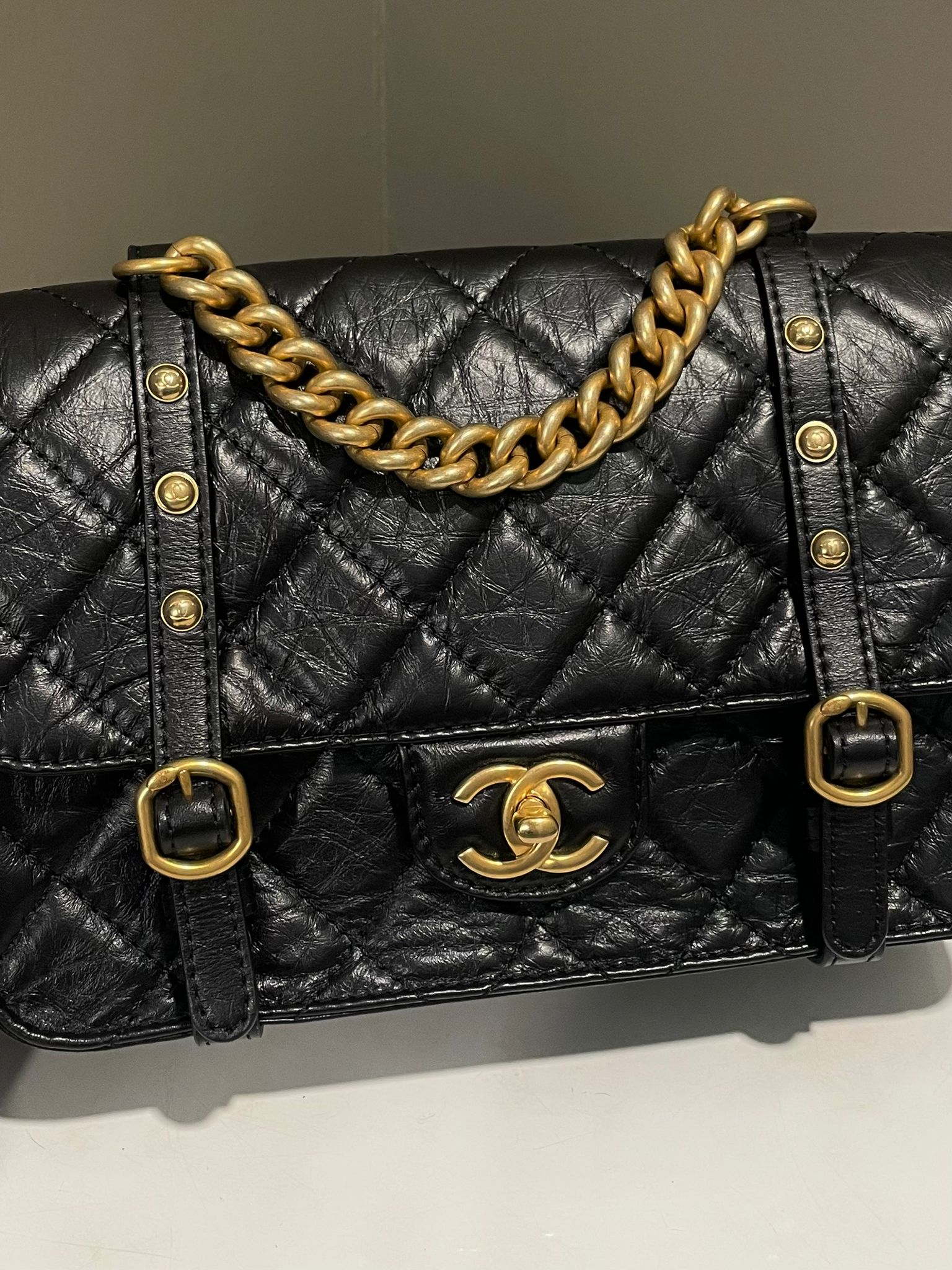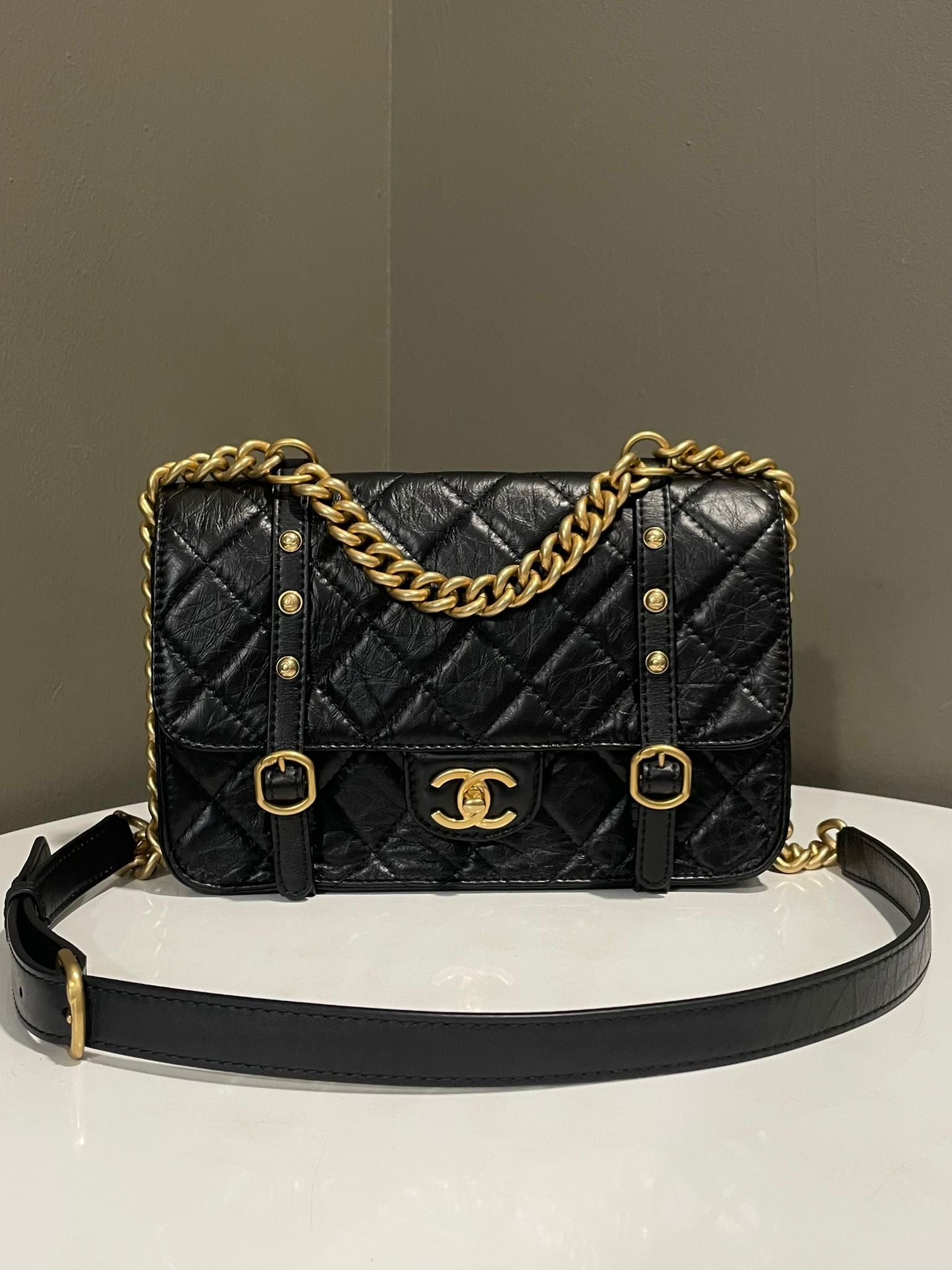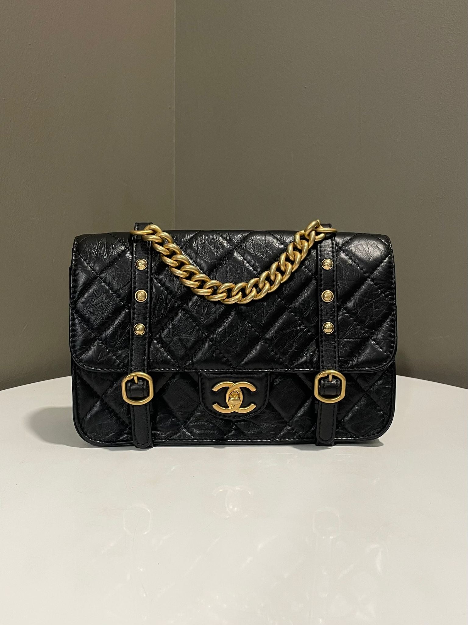 Chanel 21B Cc Buckle Flap Bag Black Aged Calfskin