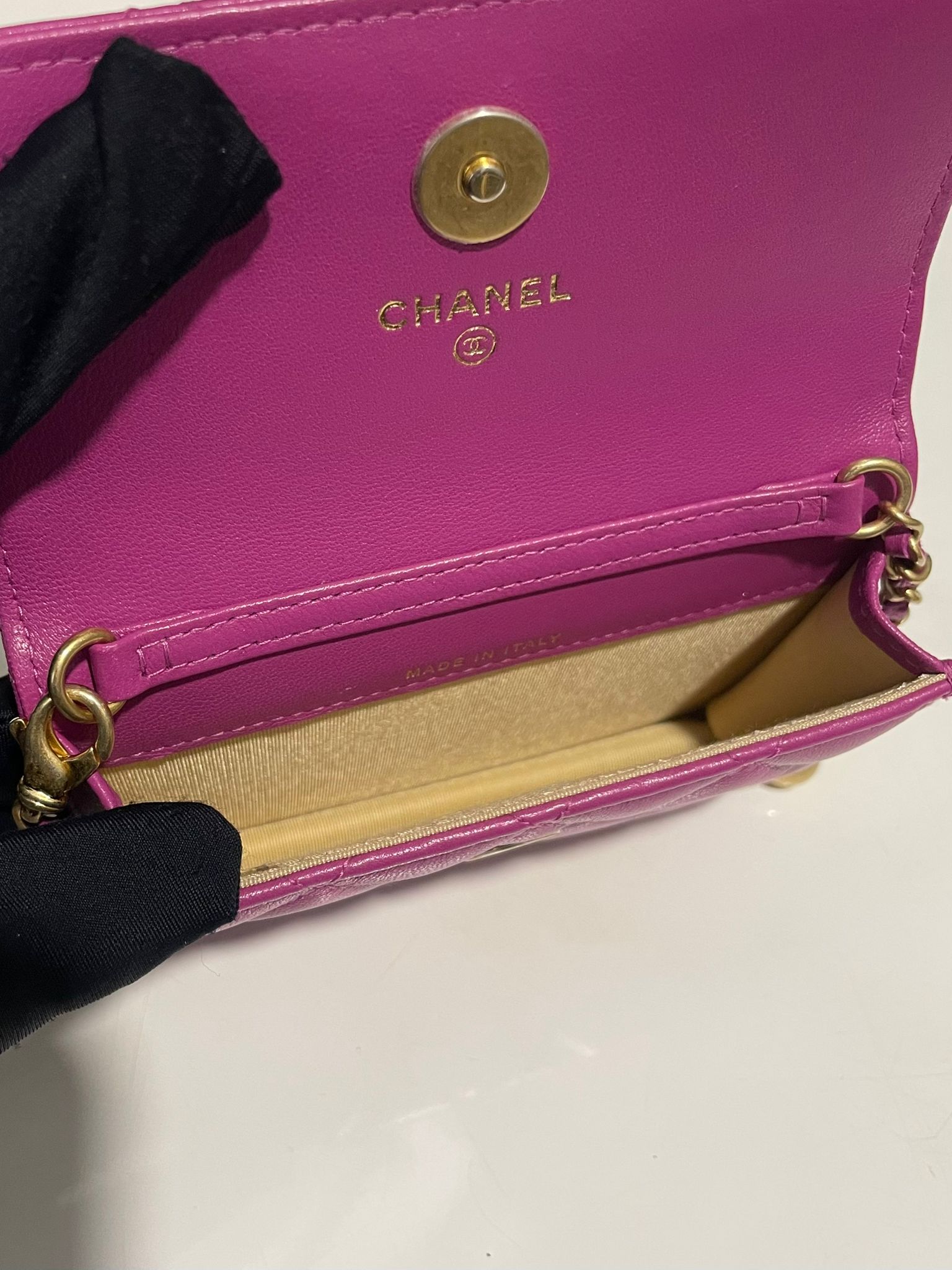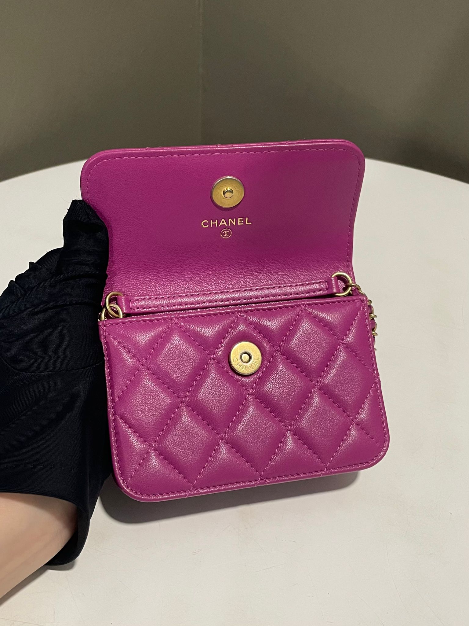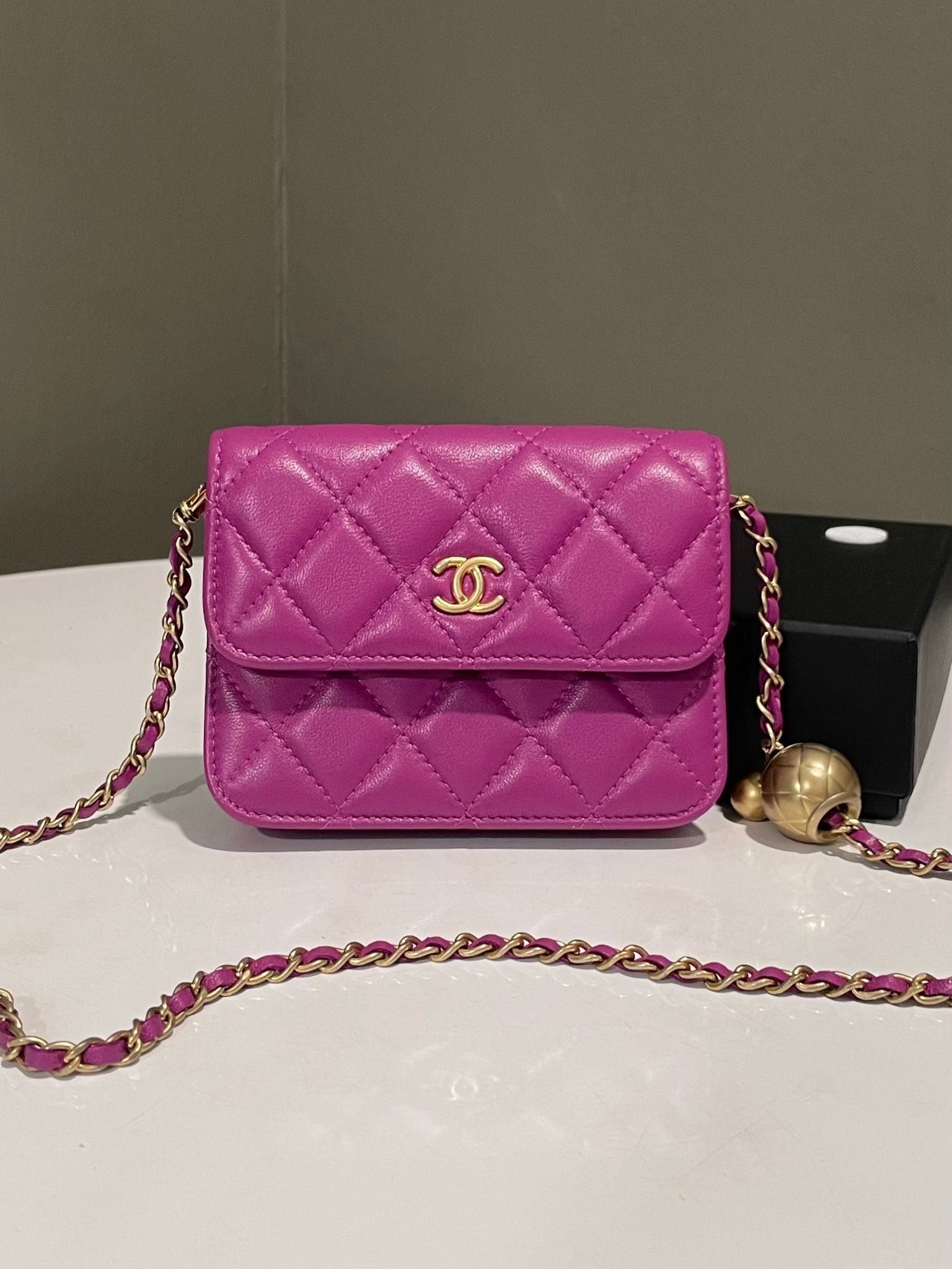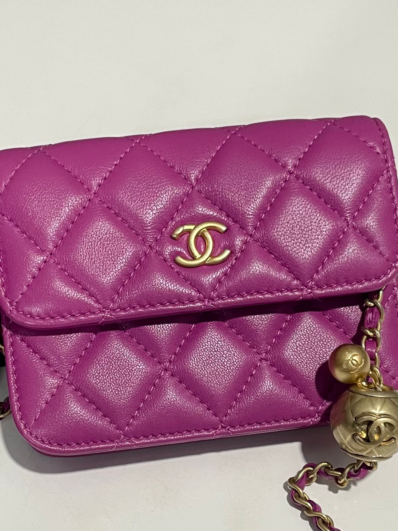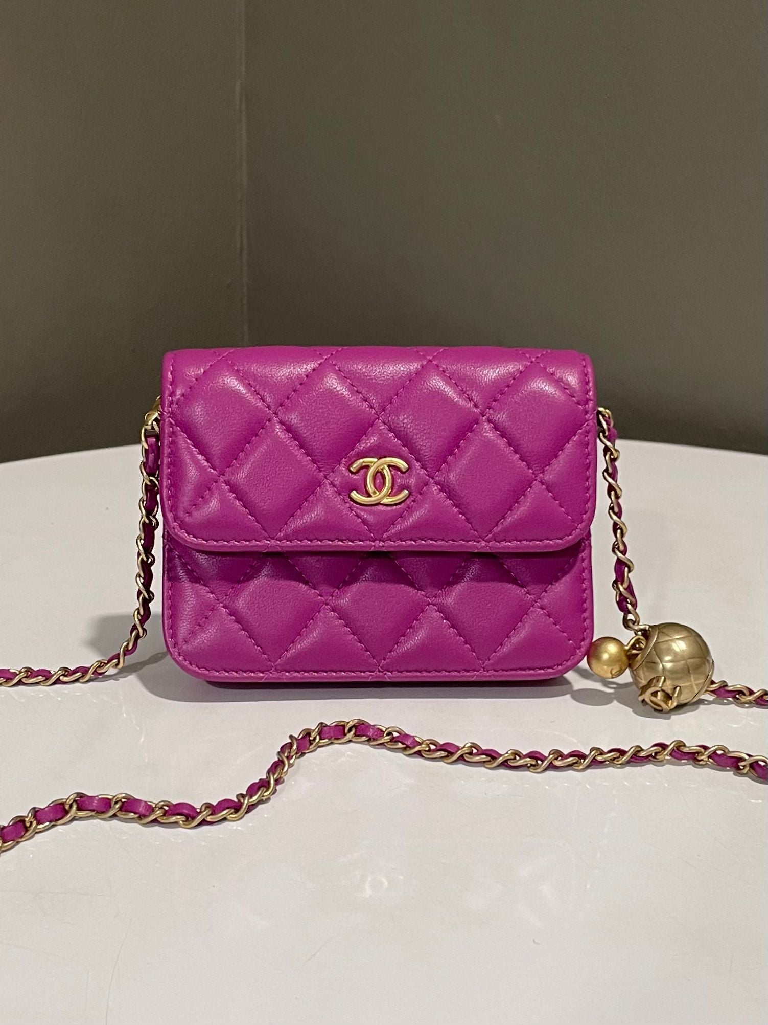 Chanel 21B Pearl Crush Chain Belt Clutch on Chain Magenta Lambskin