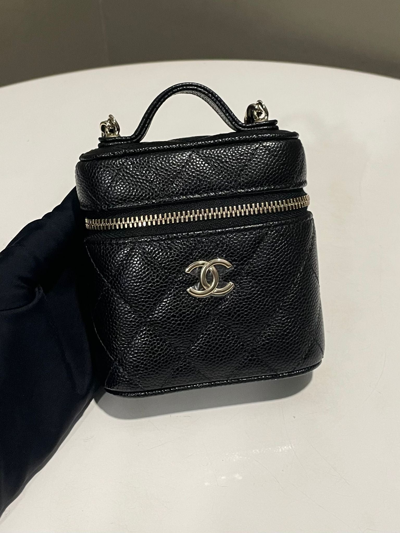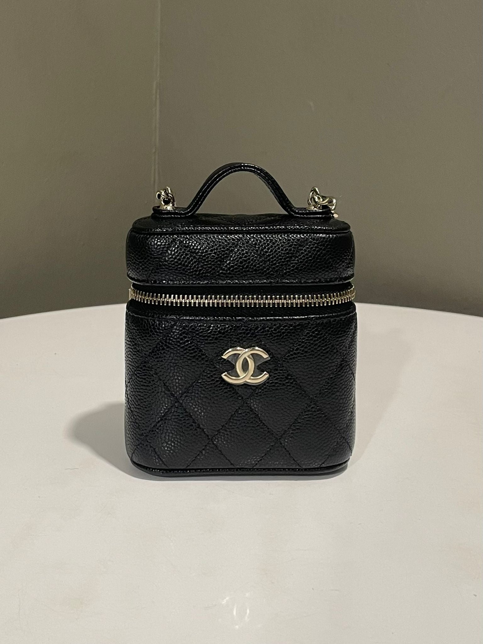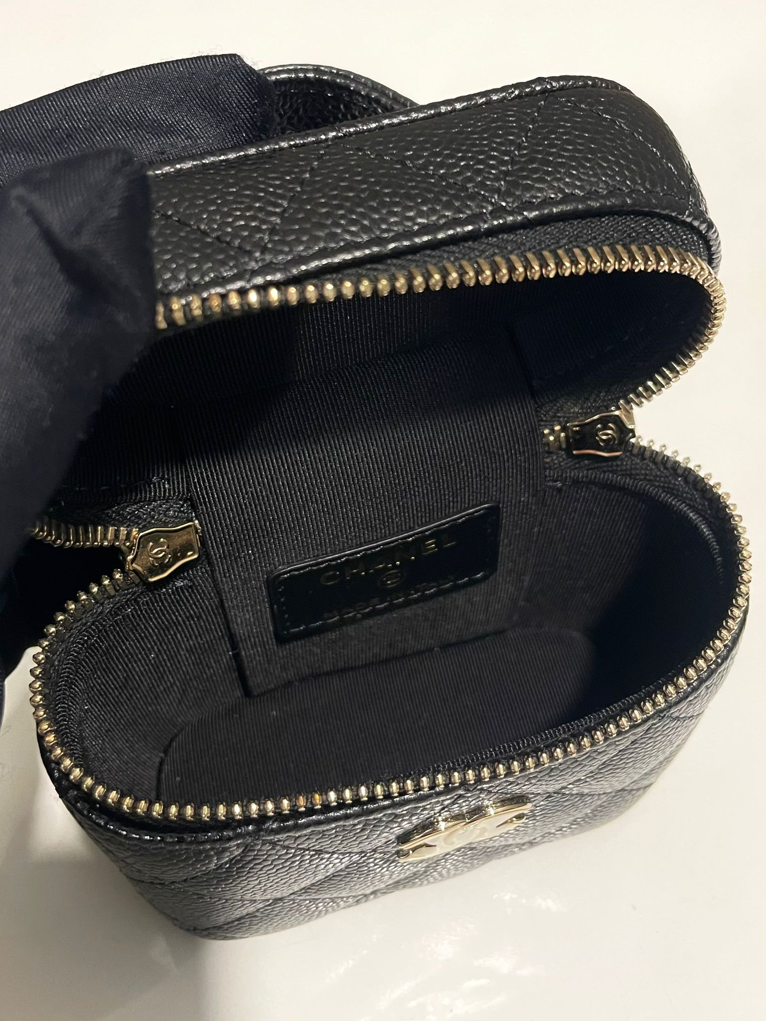 Chanel 22C Quilted Top Handle Mini Vanity Black Caviar