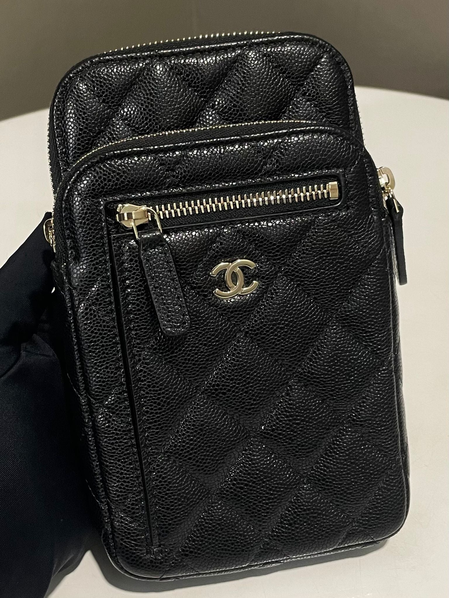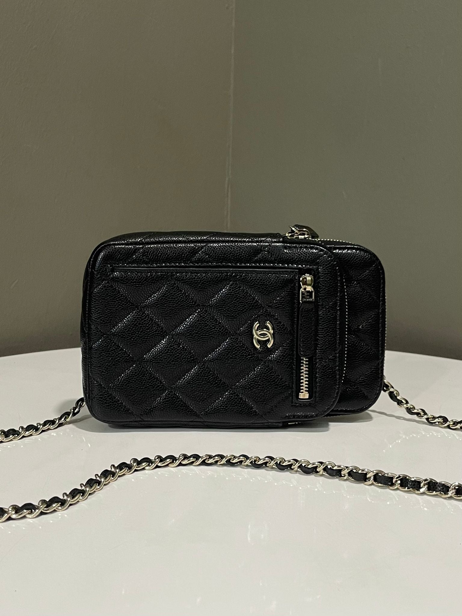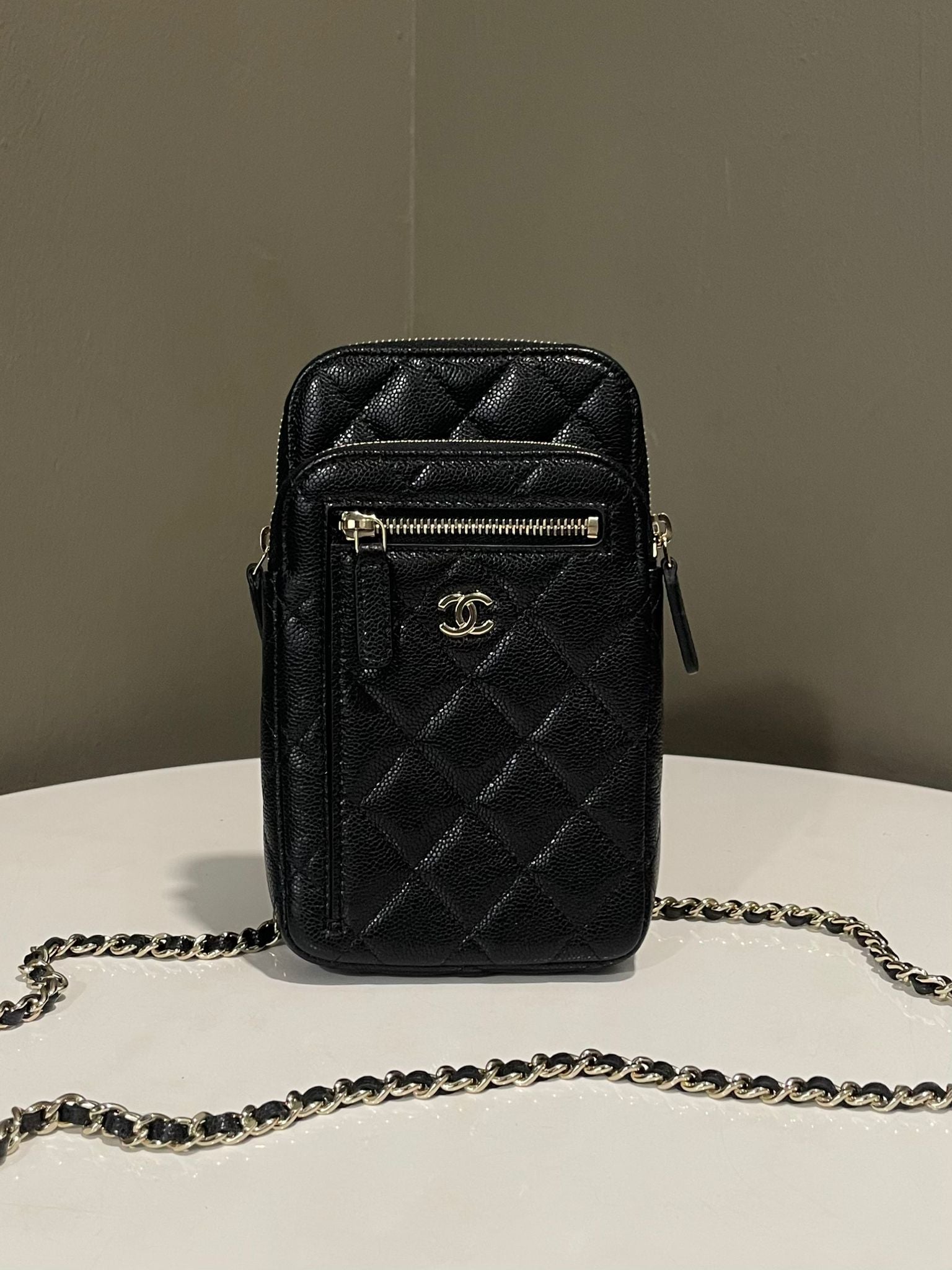 Chanel 24C Cc Quilted Phone Chain Black Caviar