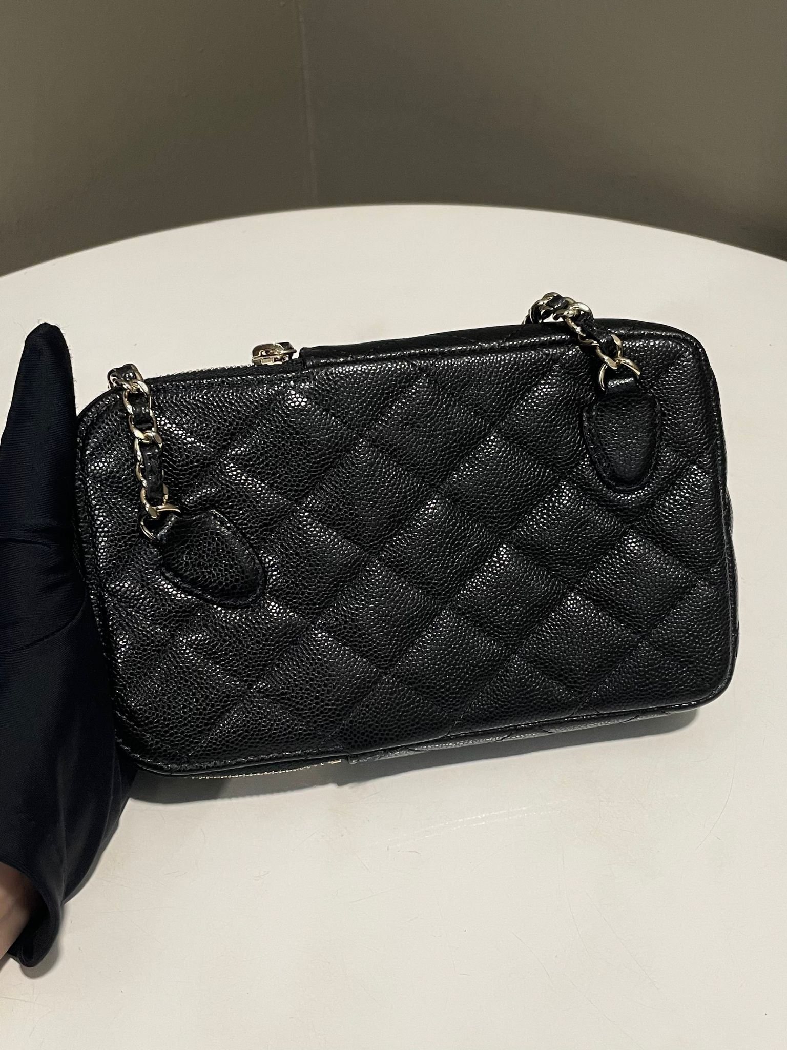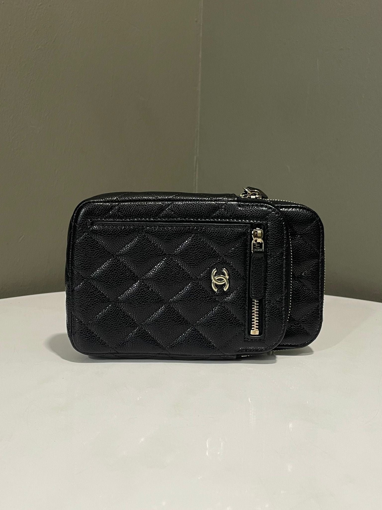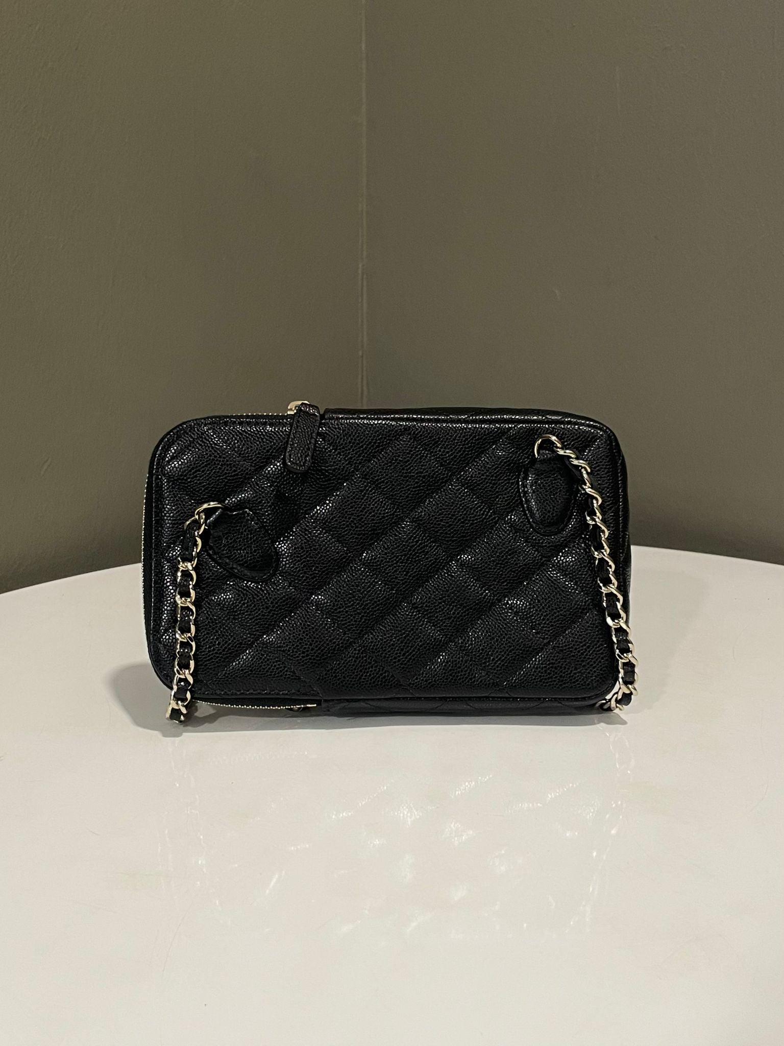 Chanel 24C Cc Quilted Phone Chain Black Caviar
