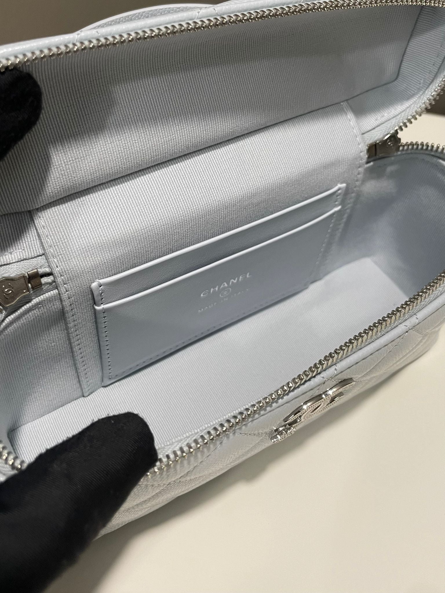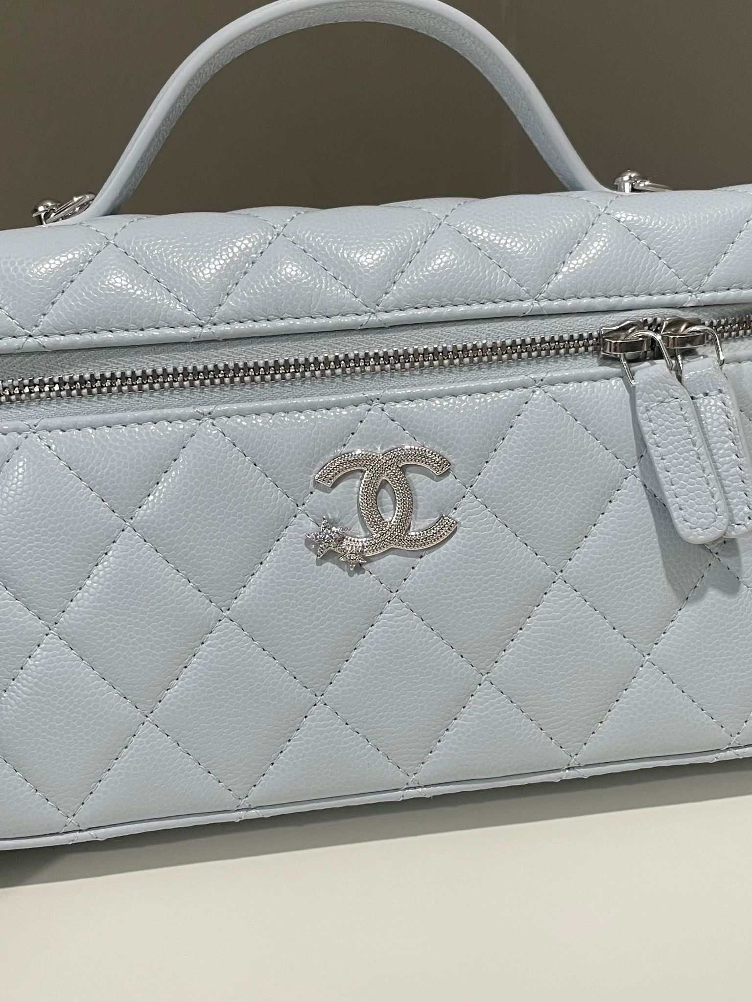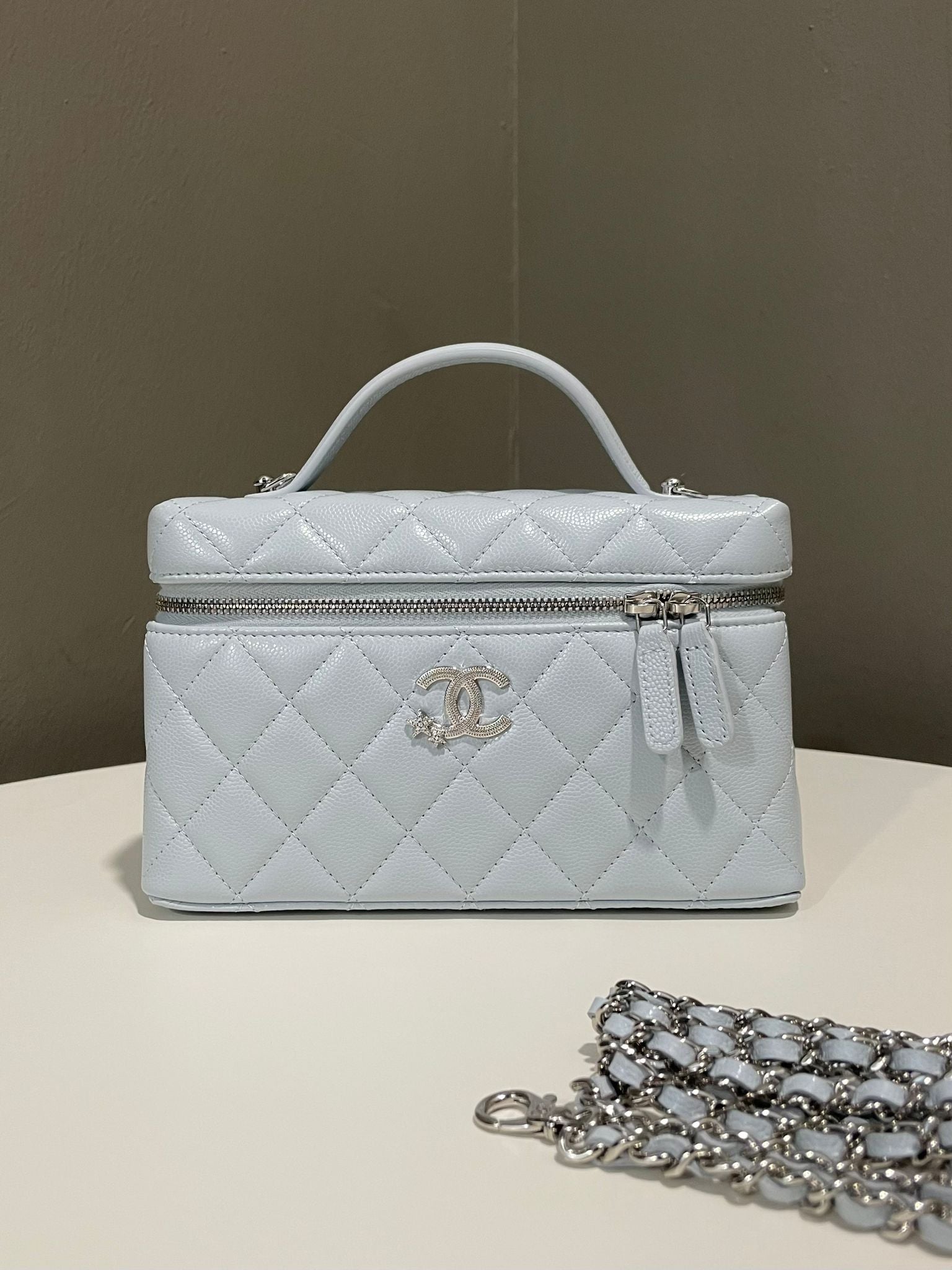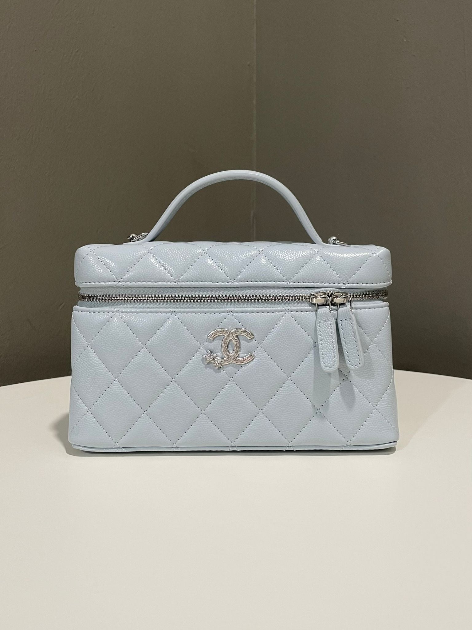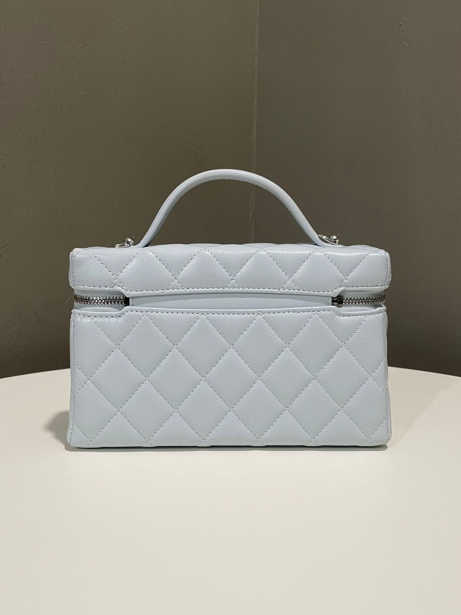 Chanel 25B LP Vanity Top Handle Bag Ice Grey Blue Caviar