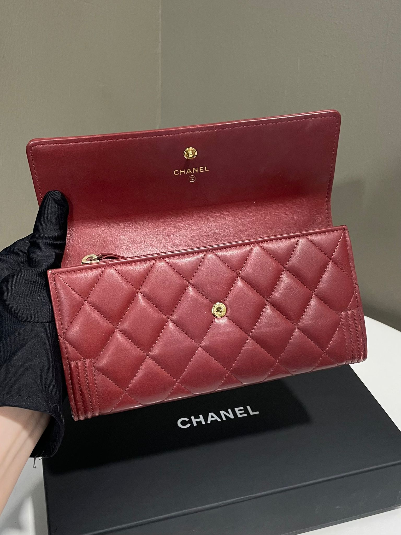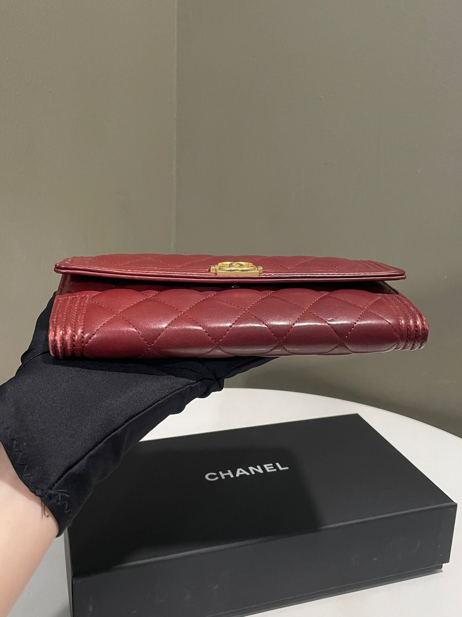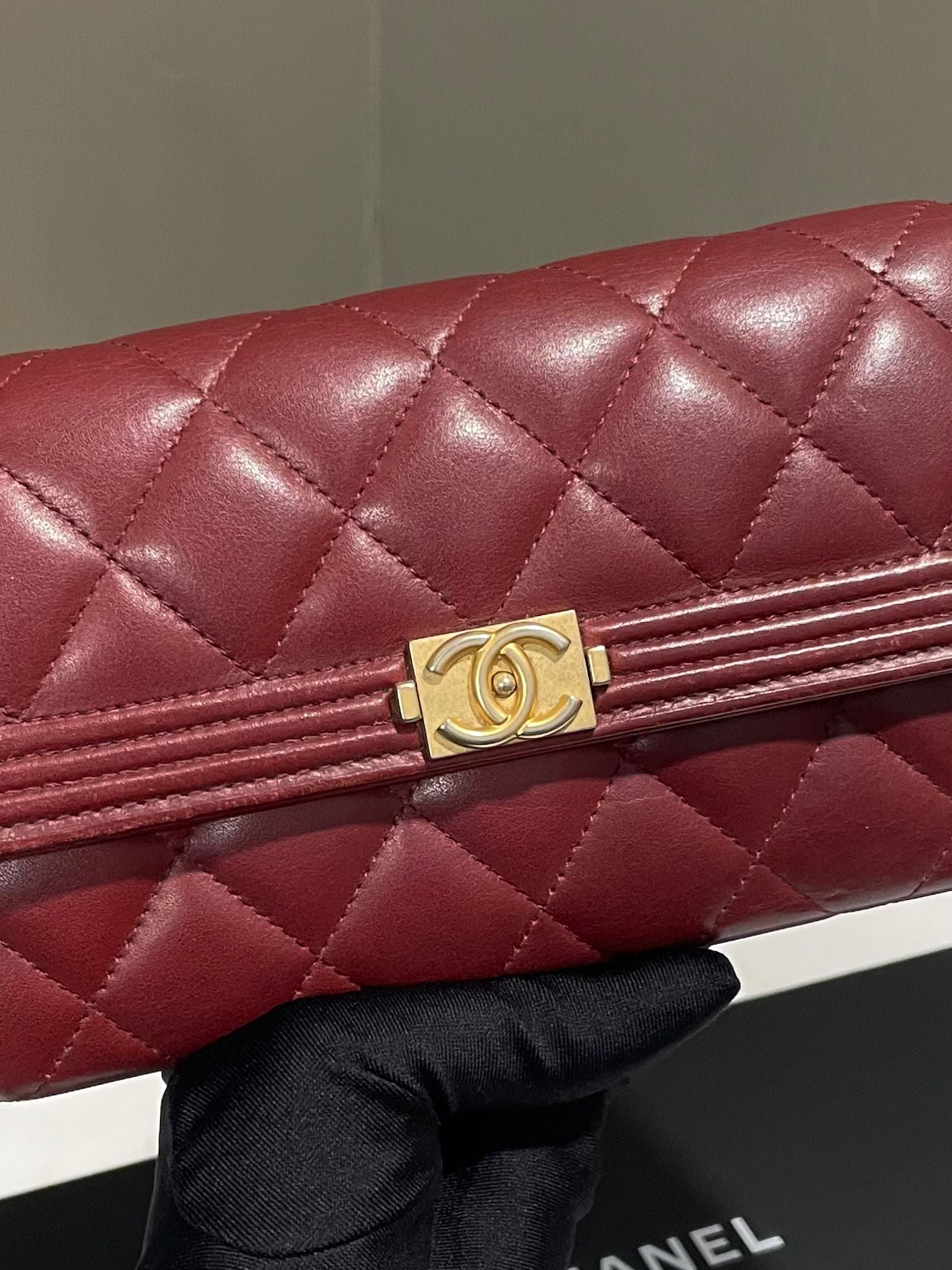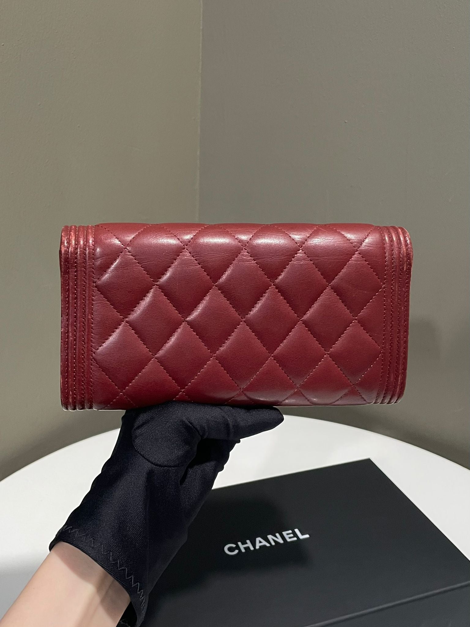 Chanel Boy Long Flap Wallet Burgundy Lambskin