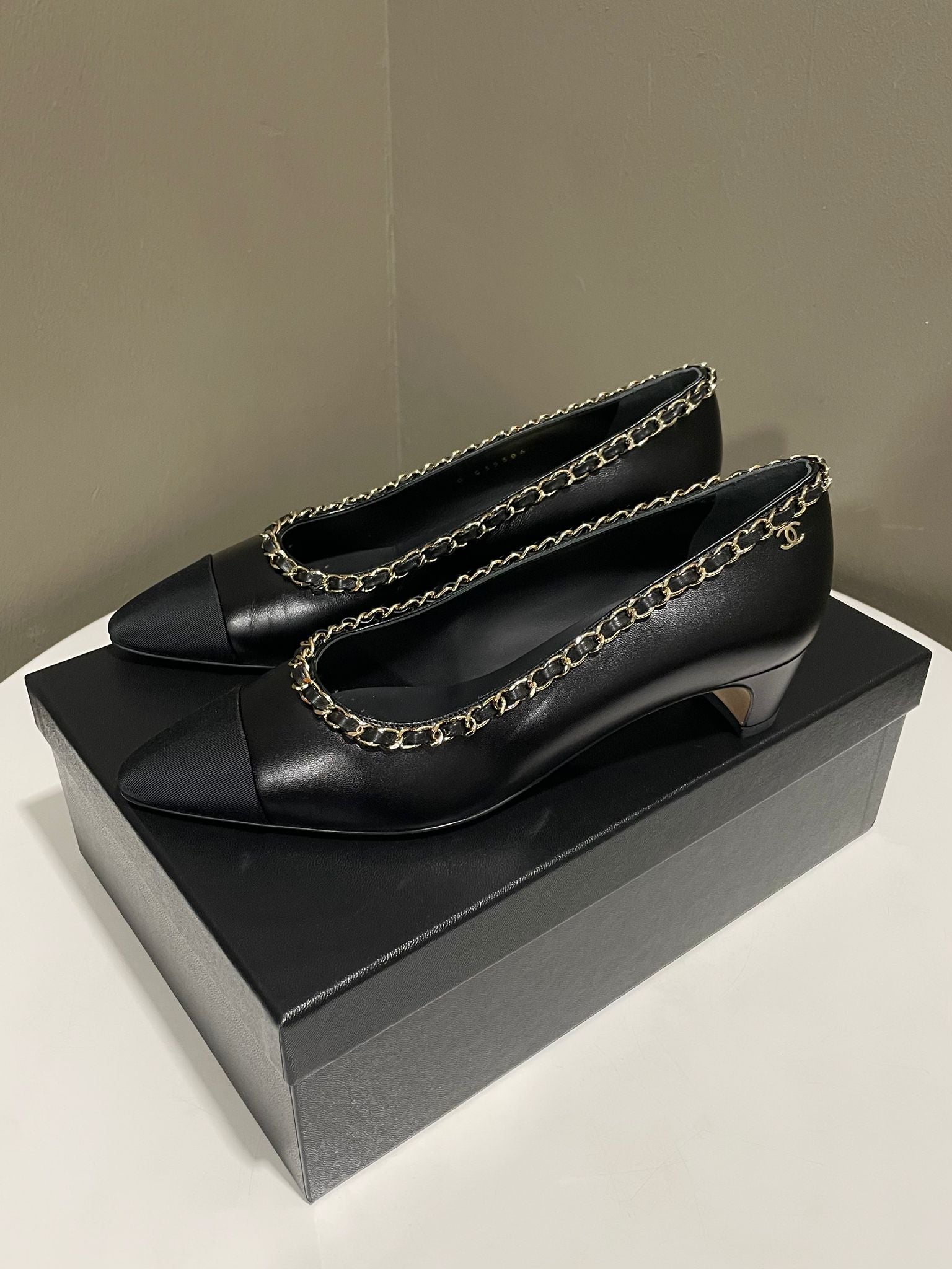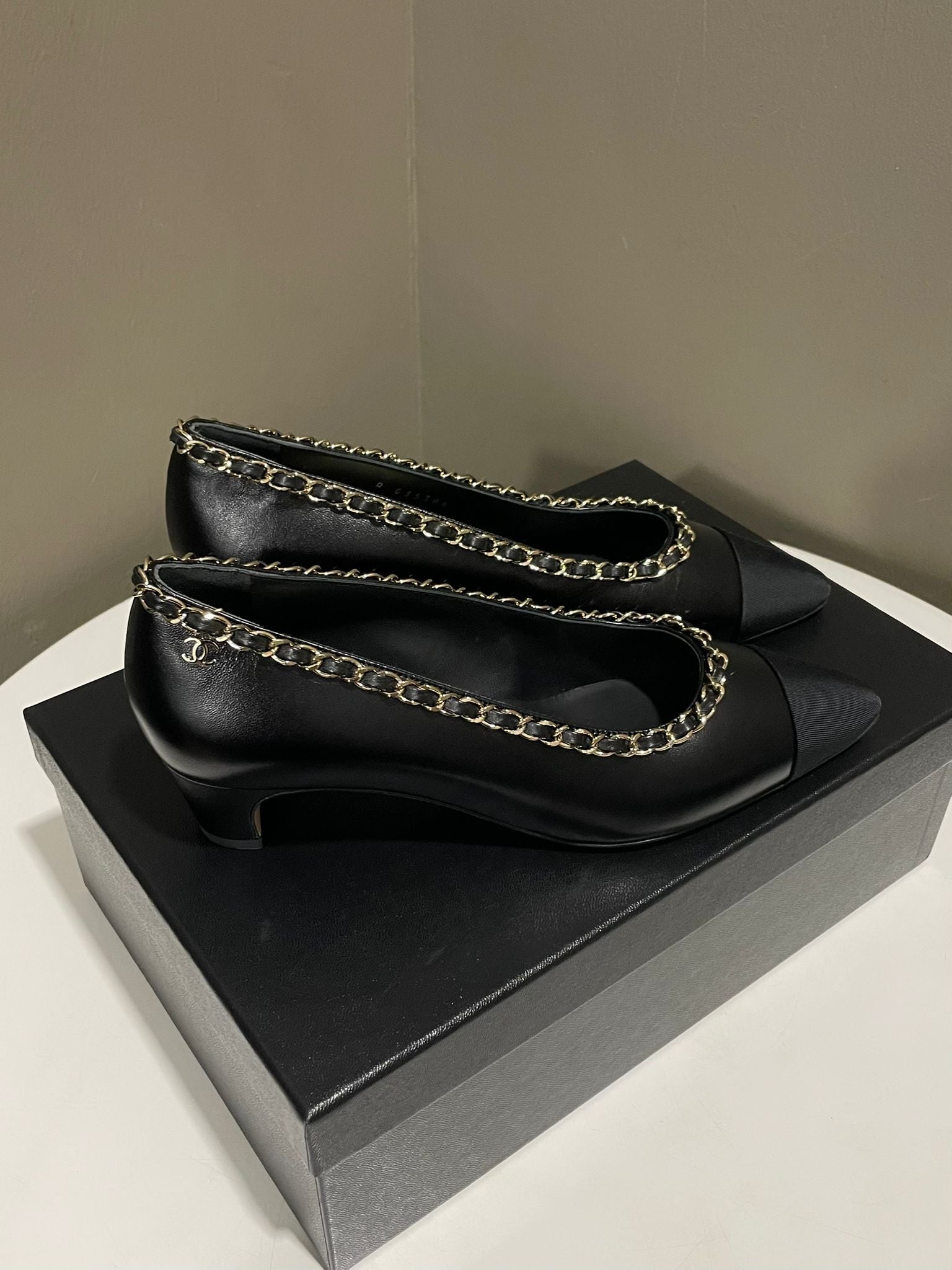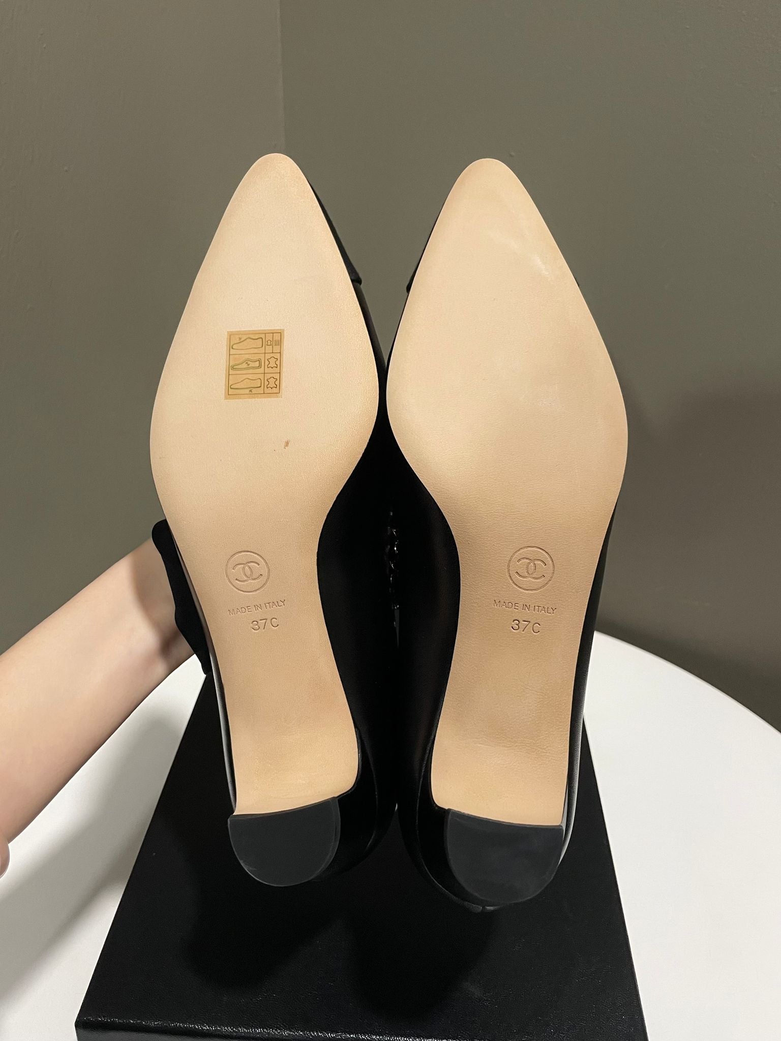 Chanel Cambon Grosgrain Chain Pumps Black LGHW Size 37 C