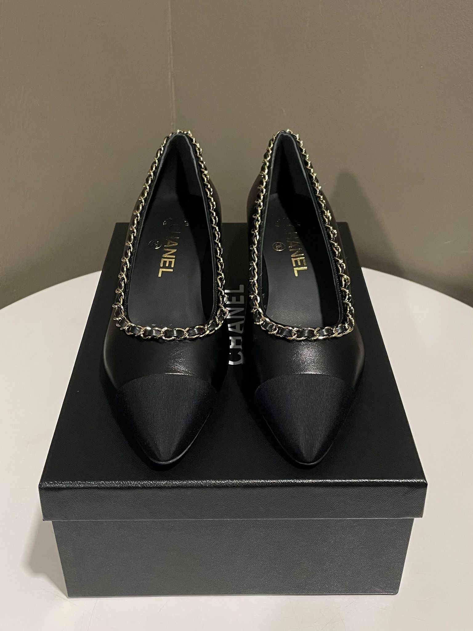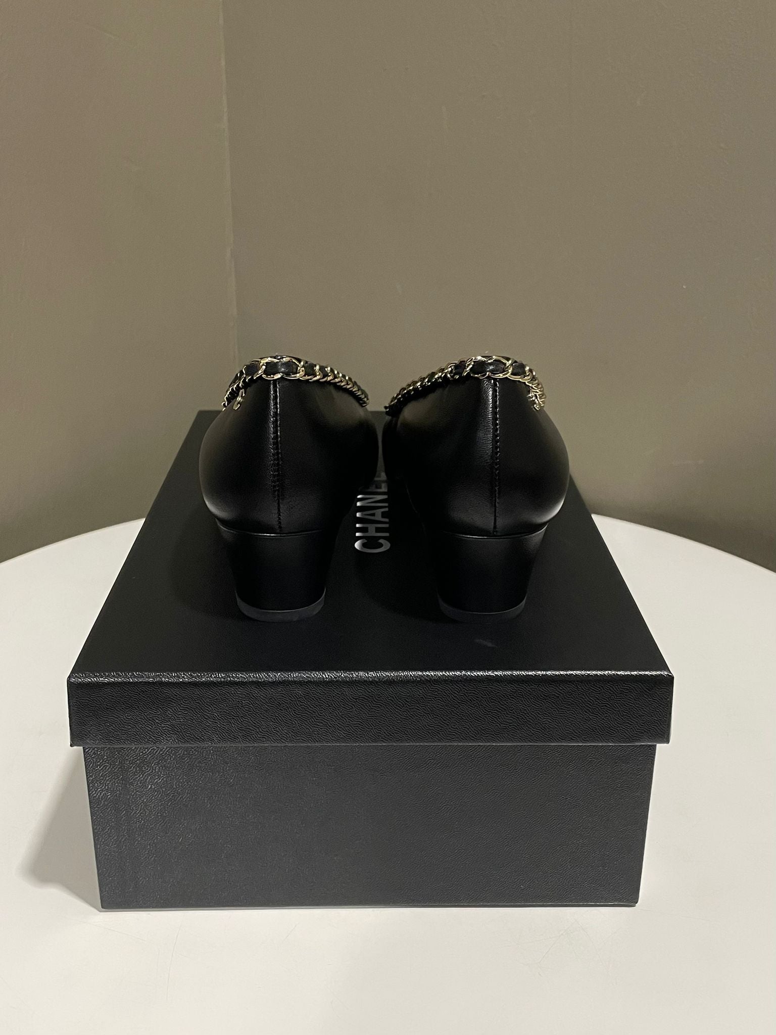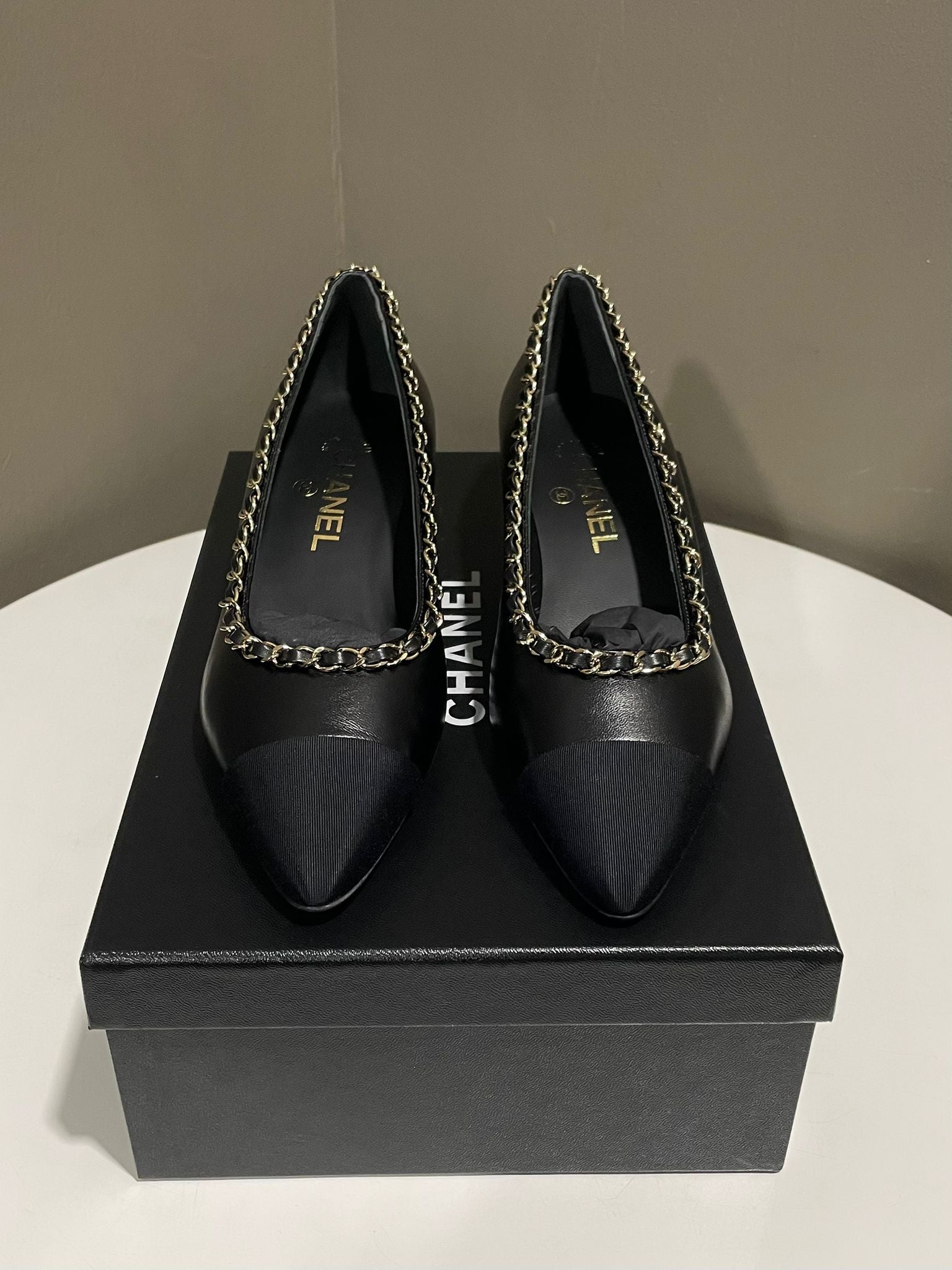 Chanel Cambon Grosgrain Chain Pumps Black LGHW Size 37 C