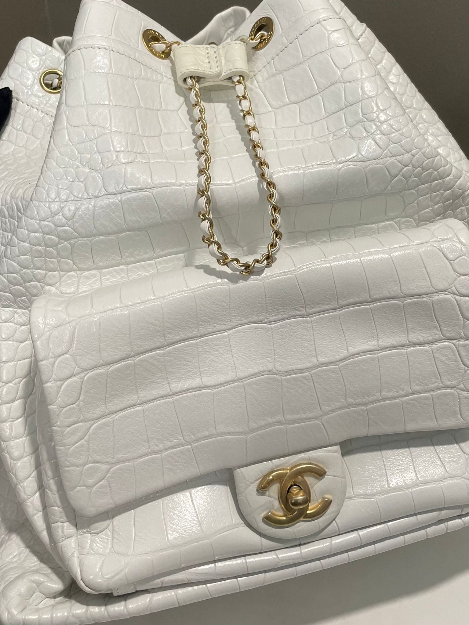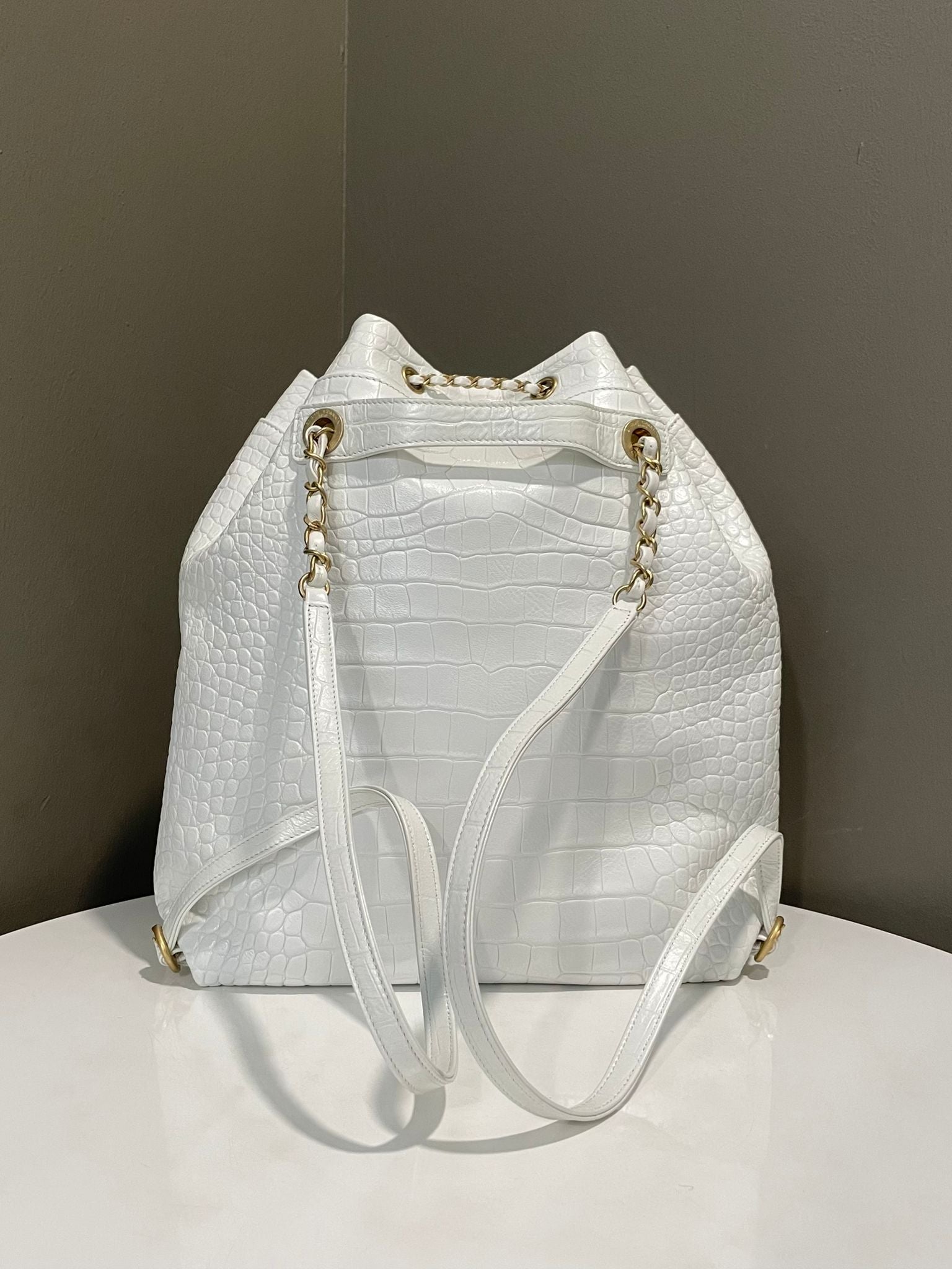 Chanel Cc Pocket Drawstring Backpack White Embossed