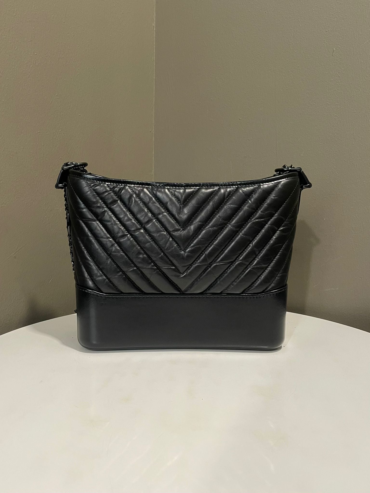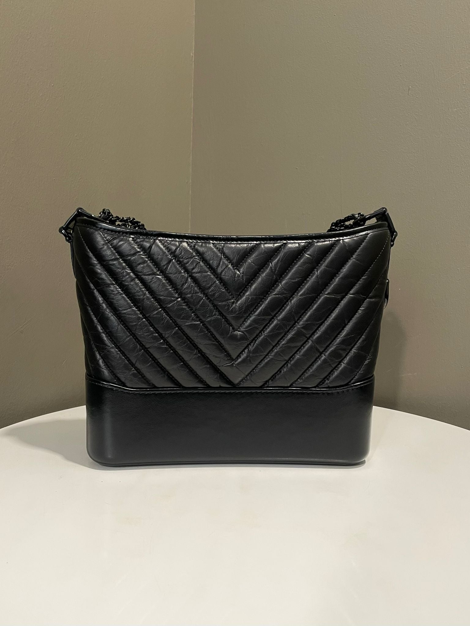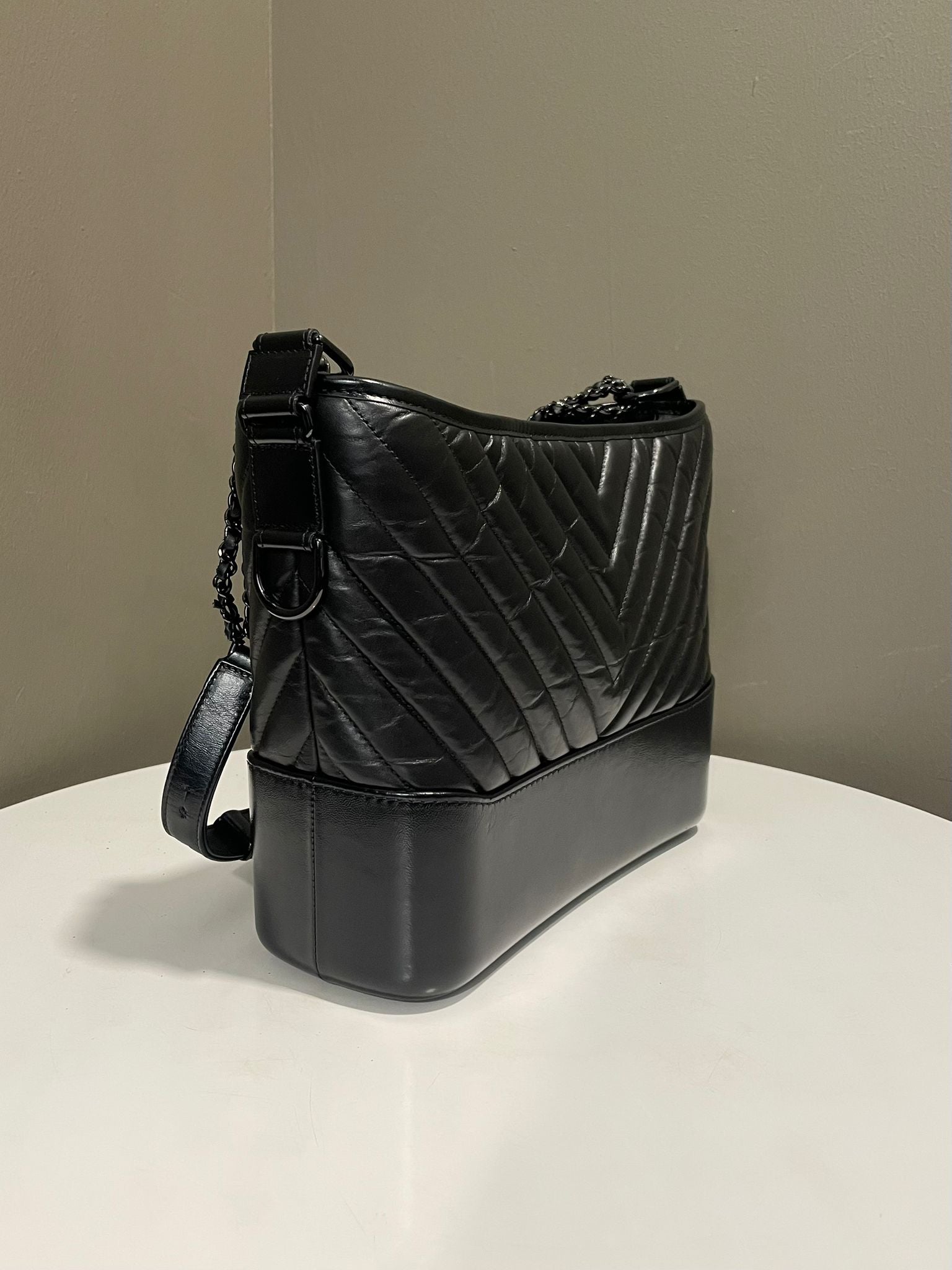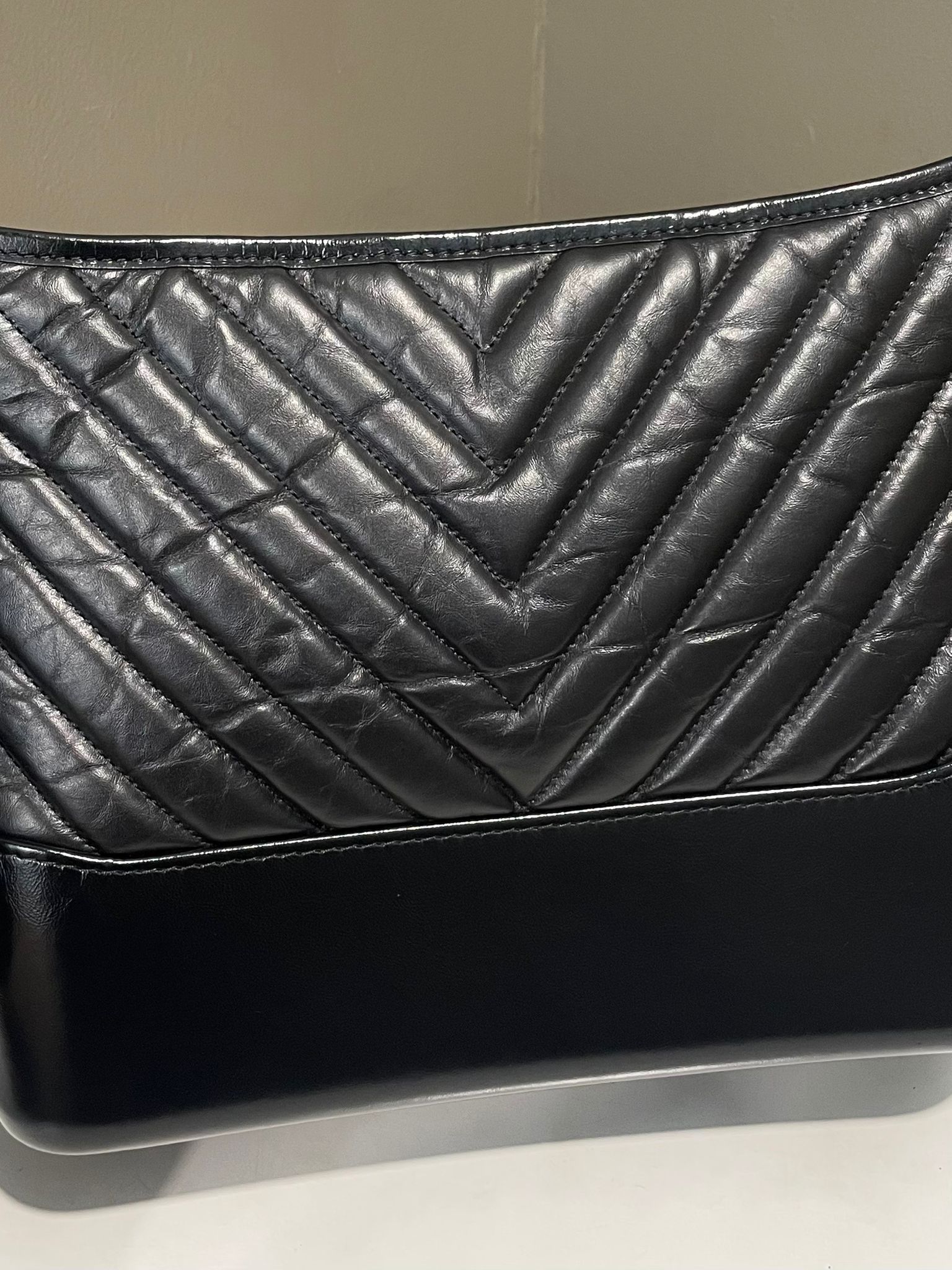 Chanel Chevron Gabrielle Bag So Black Aged Calfskin