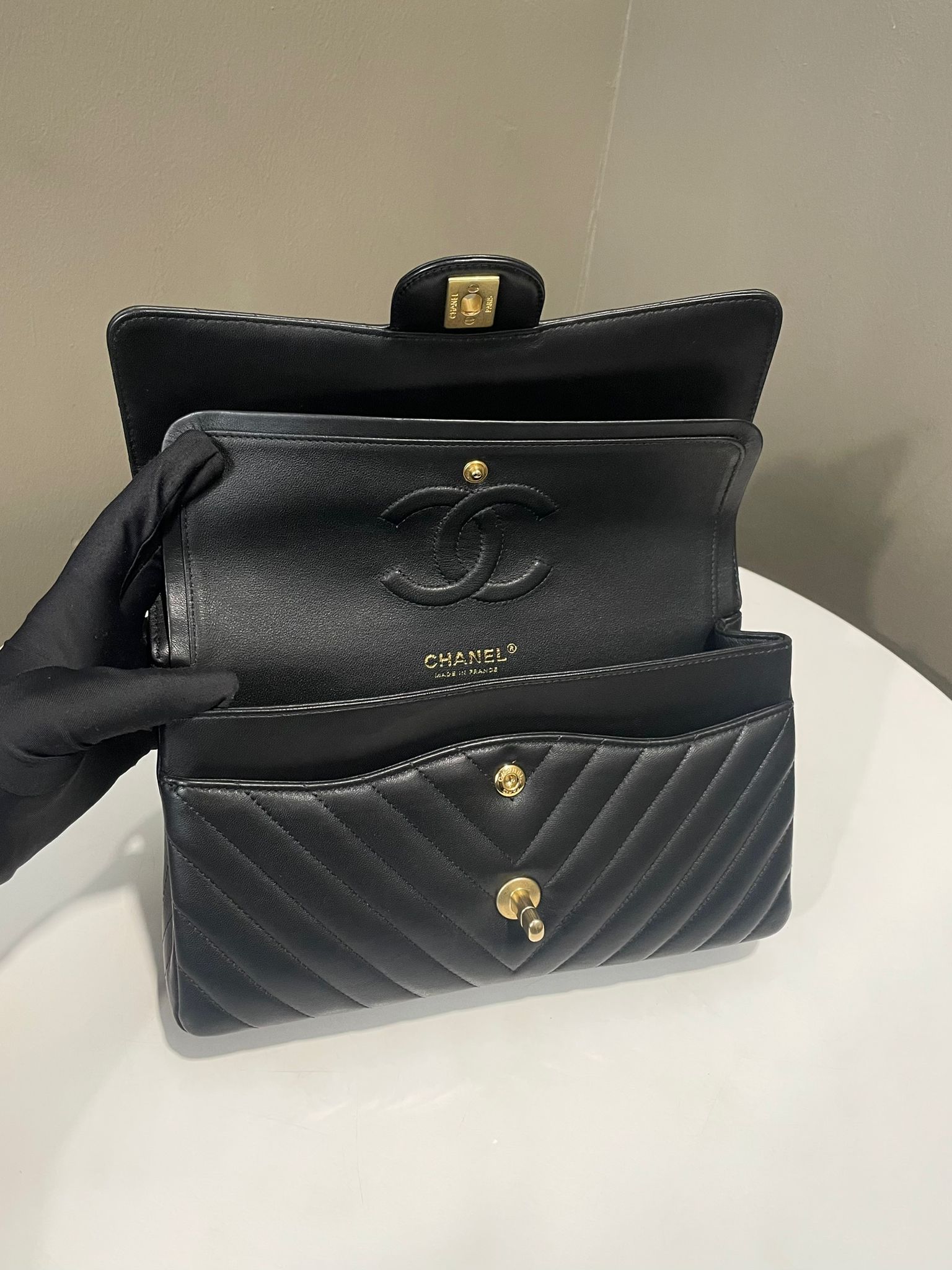 Chanel Classic Chevron Medium Double Flap Black Lambskin
