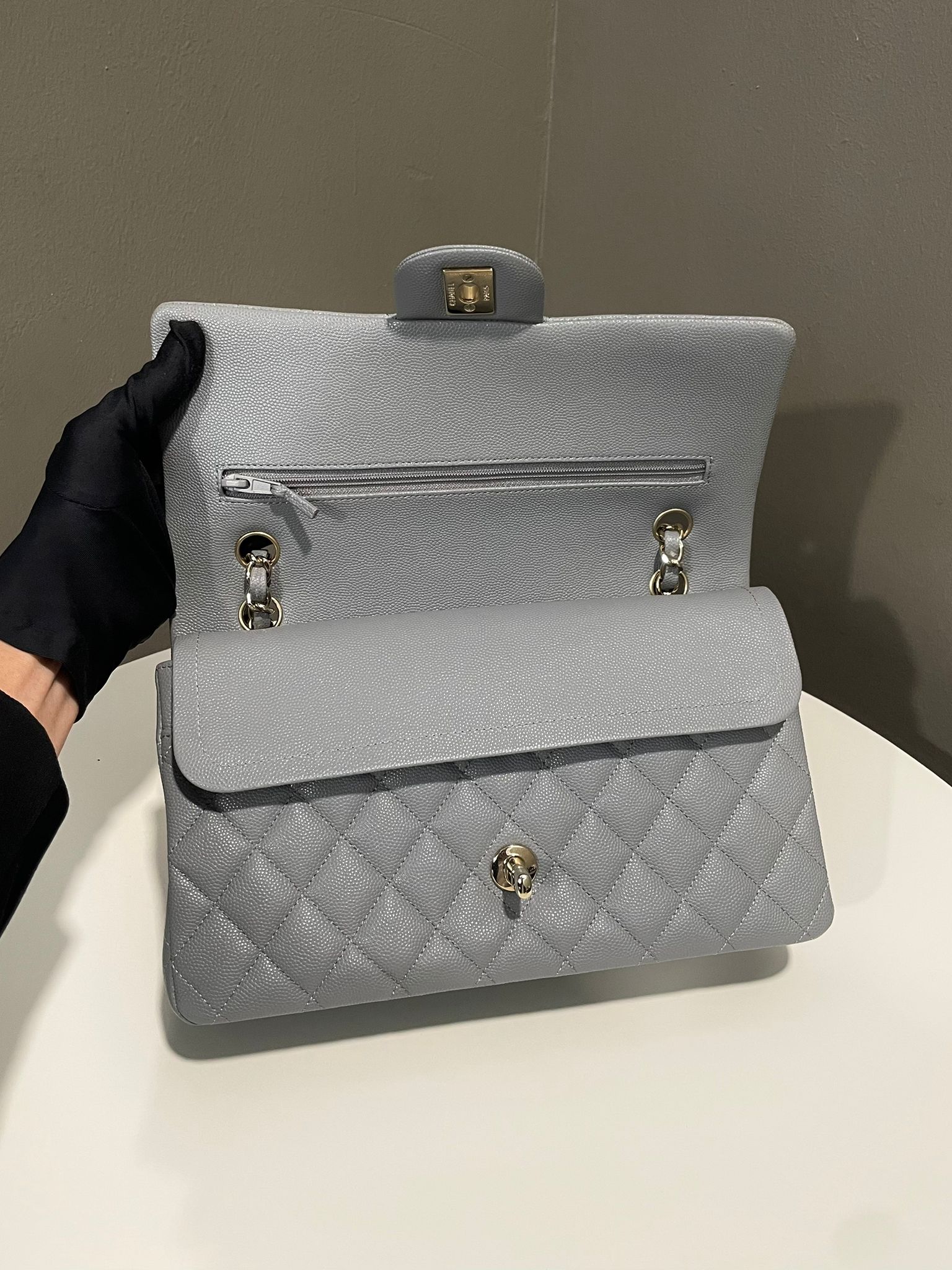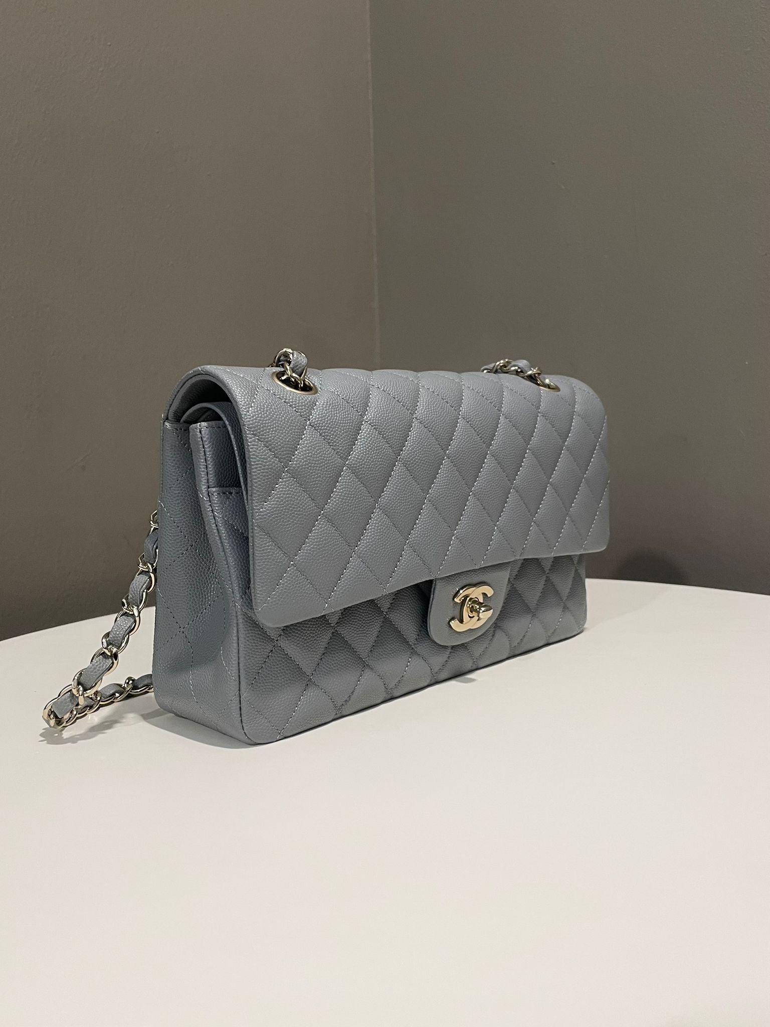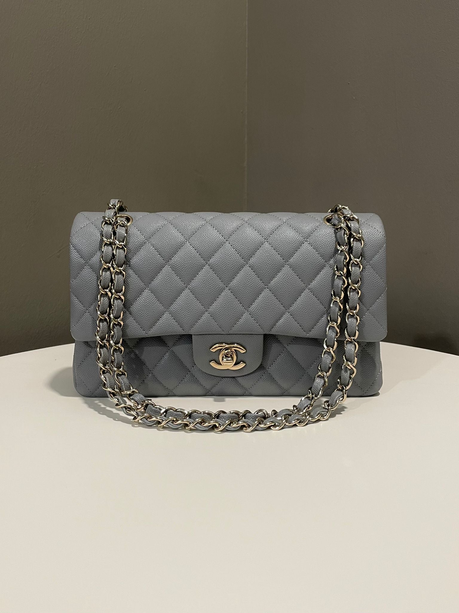 Chanel Classic Quilted Medium Double Flap Grey Caviar