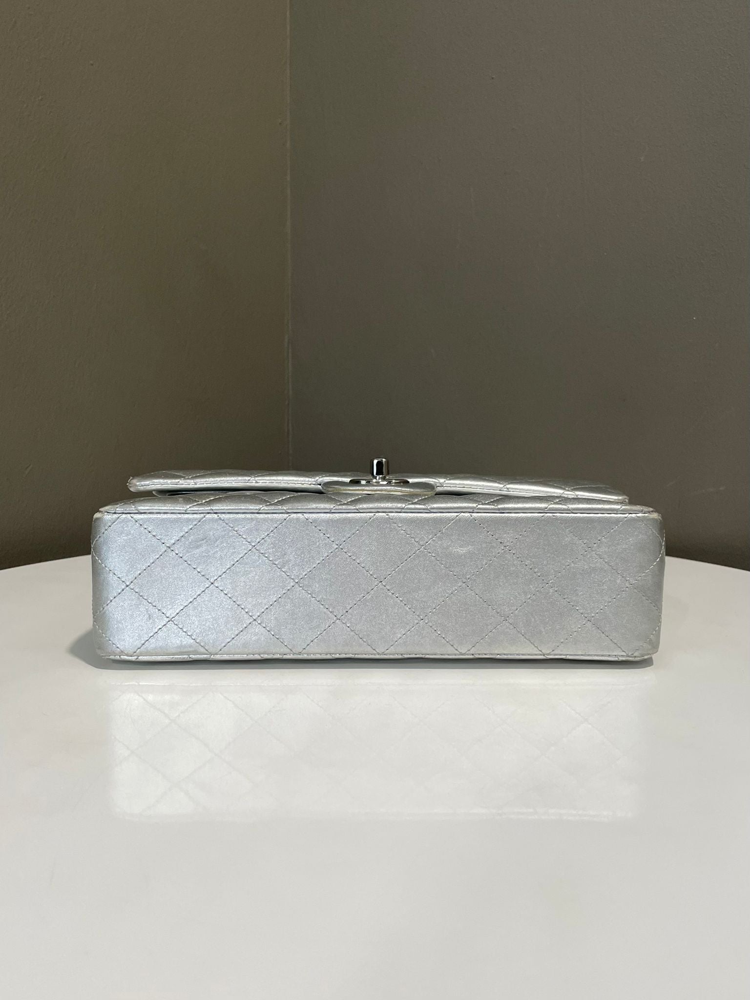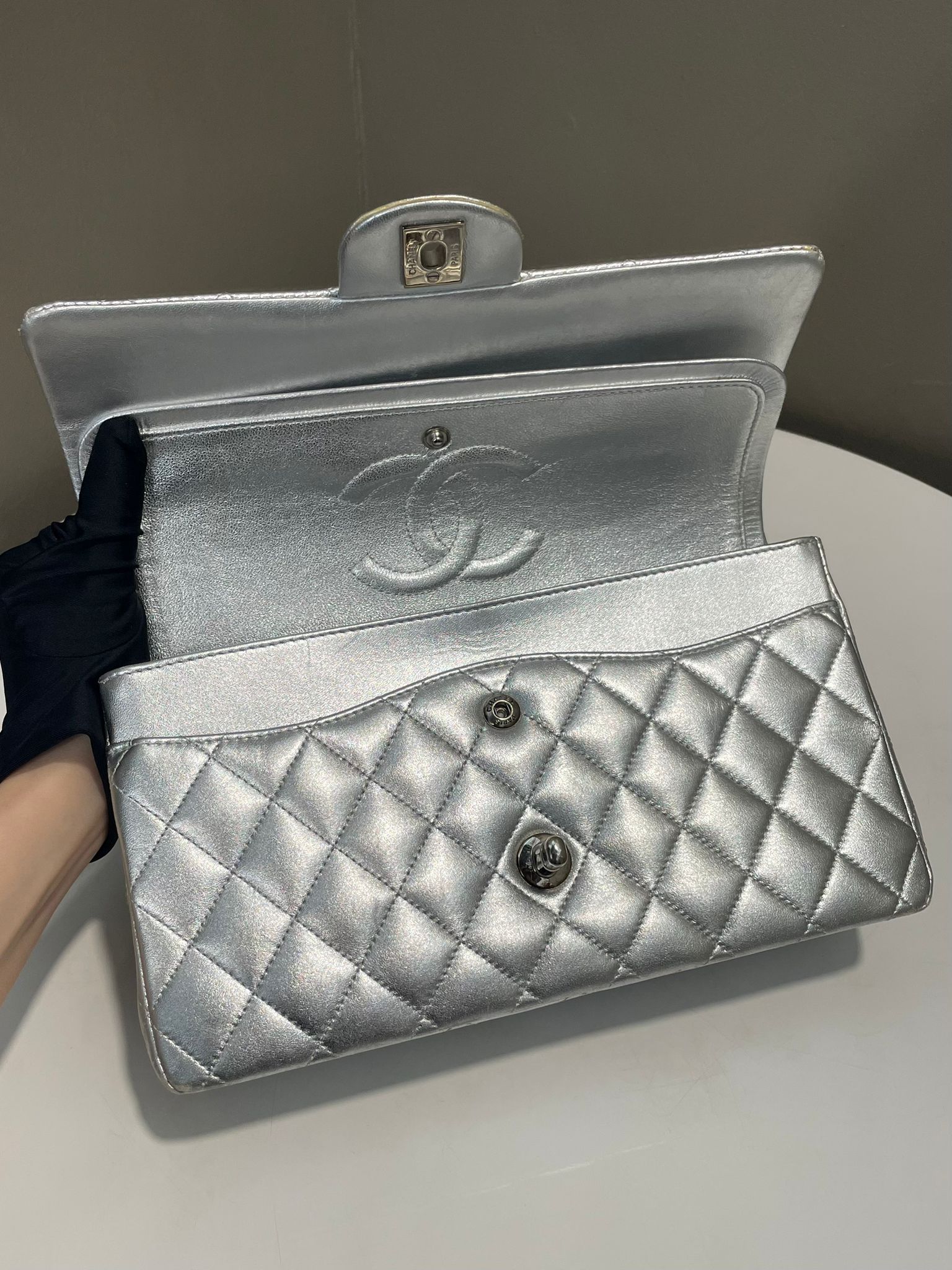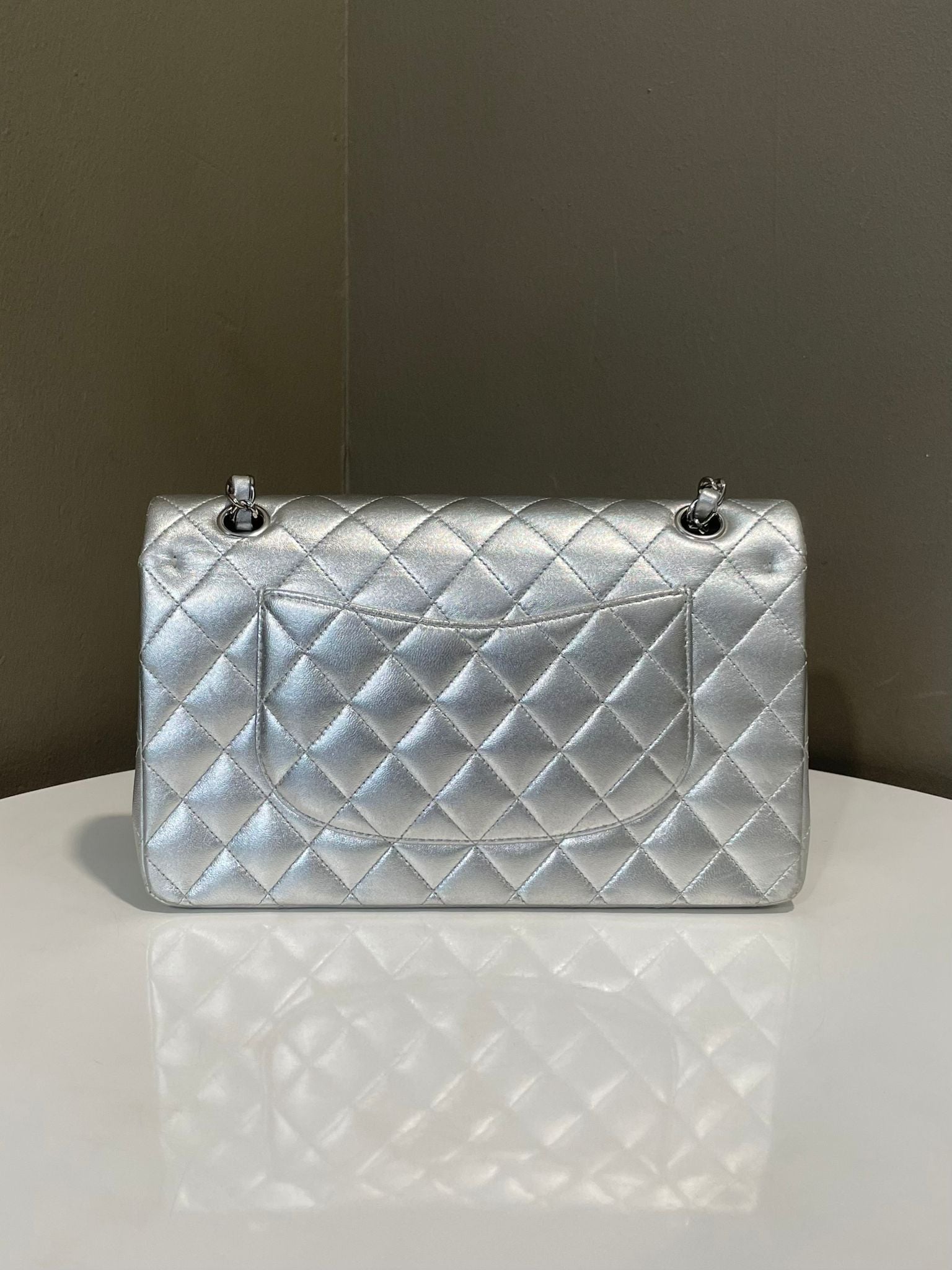 Chanel Classic Quilted Medium Double Flap Silver Lambskin