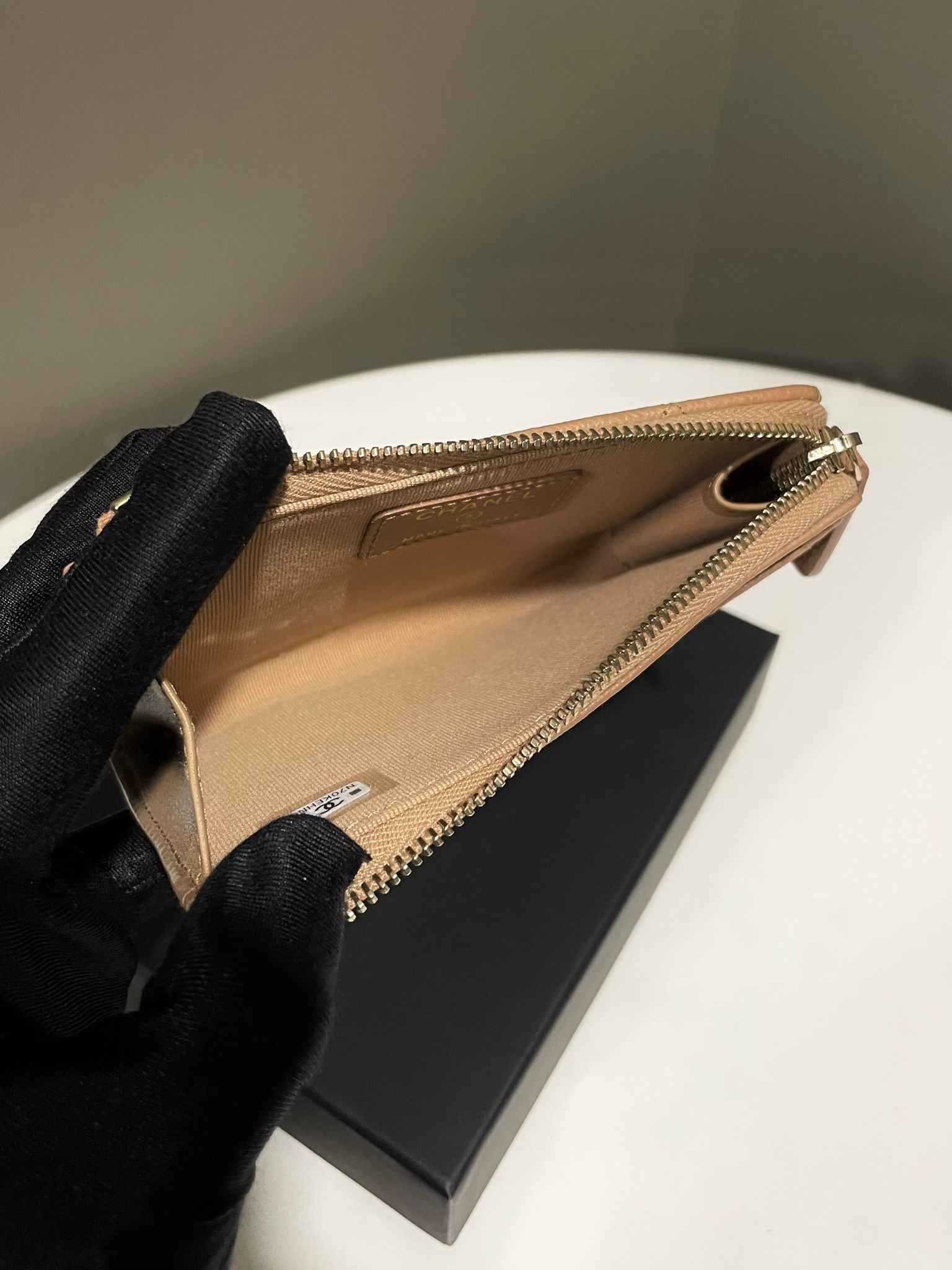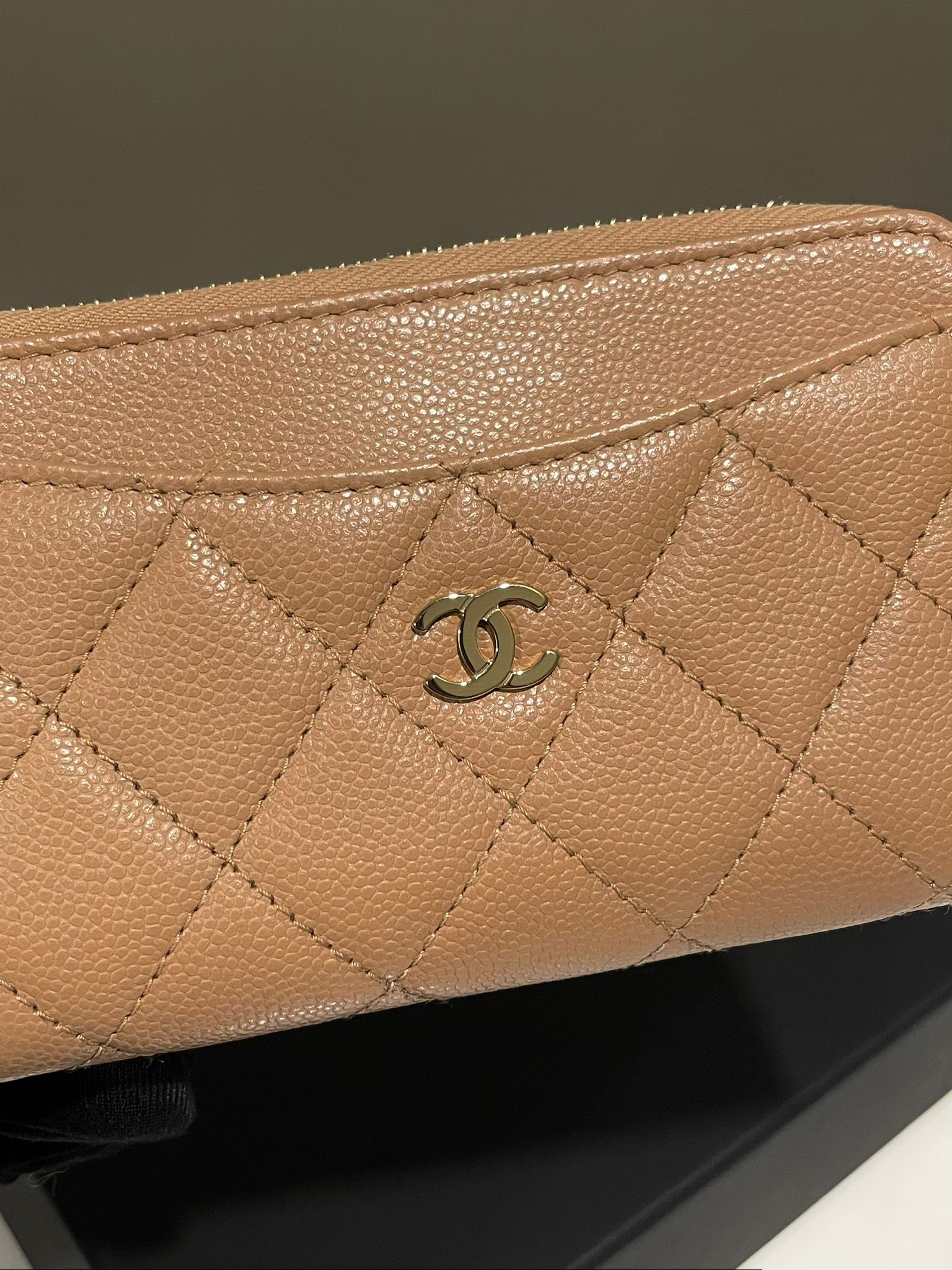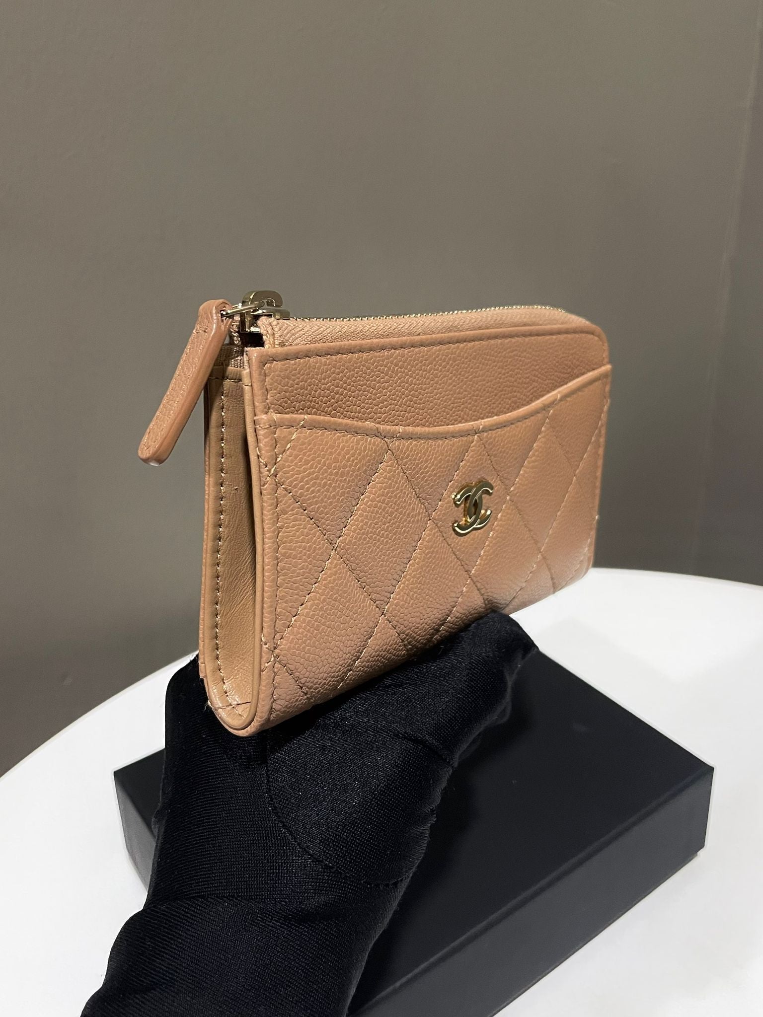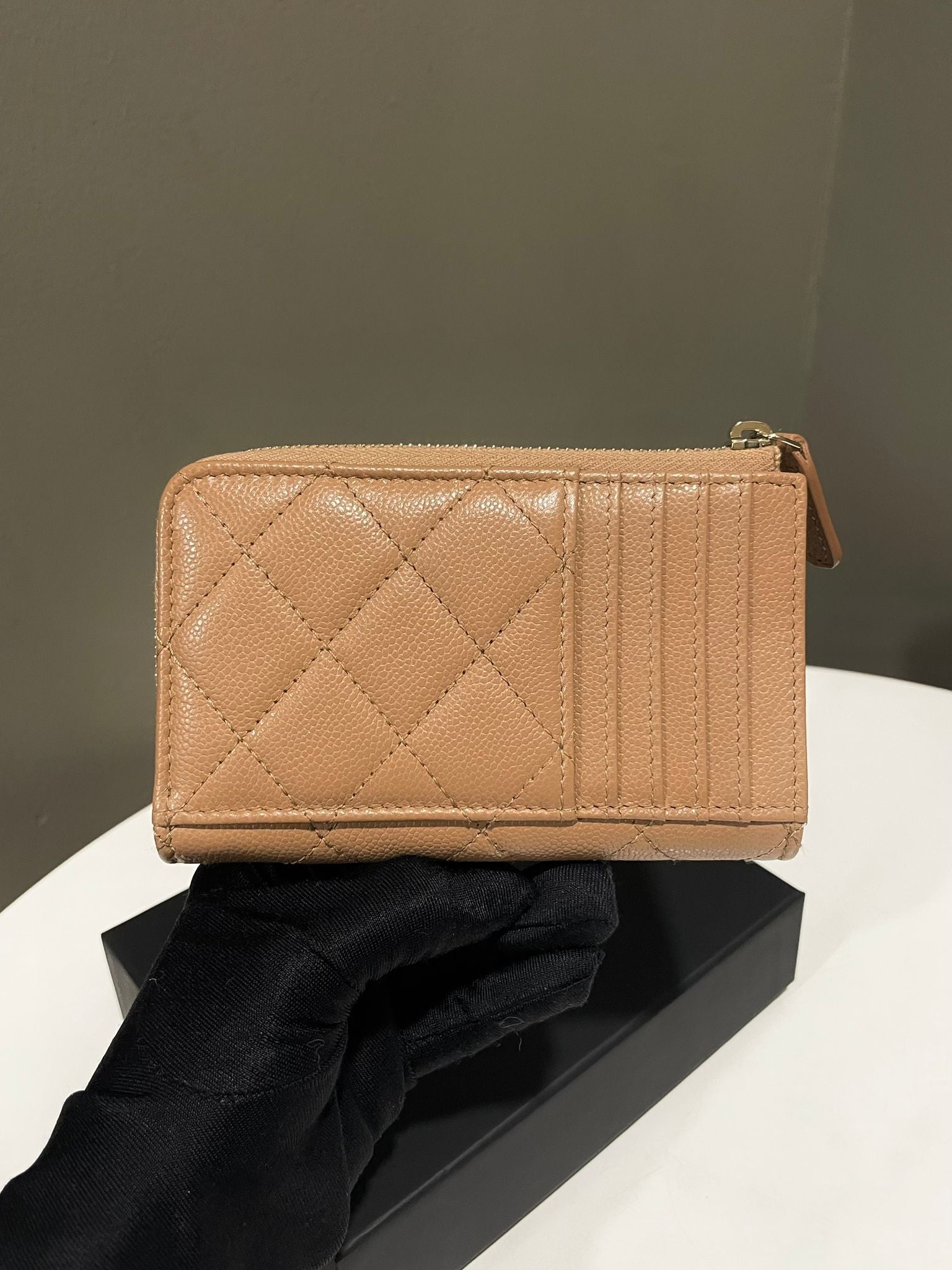 Chanel Classic Quilted Pocket Zipped Card Holder Dark Beige Caviar