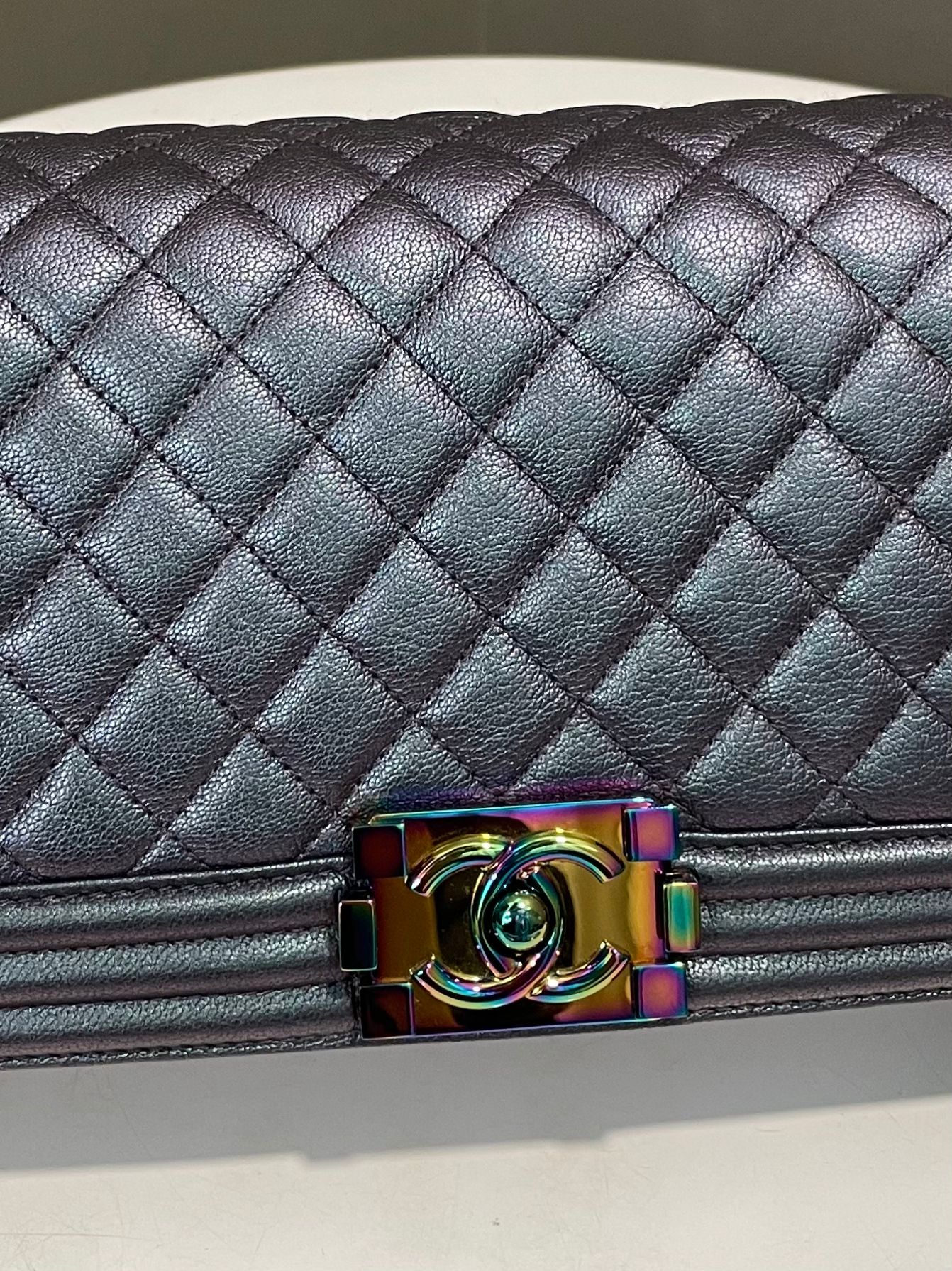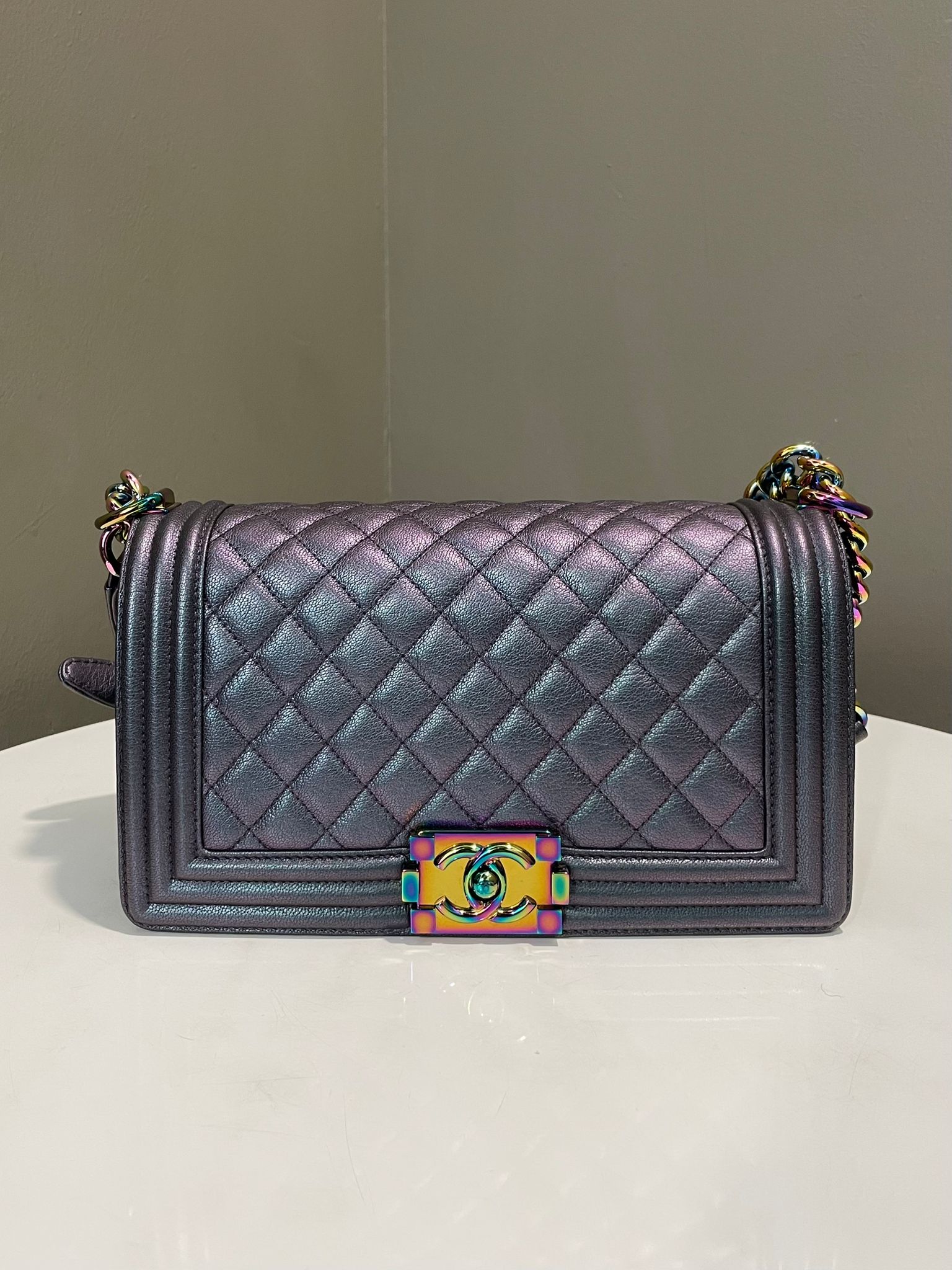 Chanel Old Medium Boy Bag Mermaid Purple Iridescent Rainbow