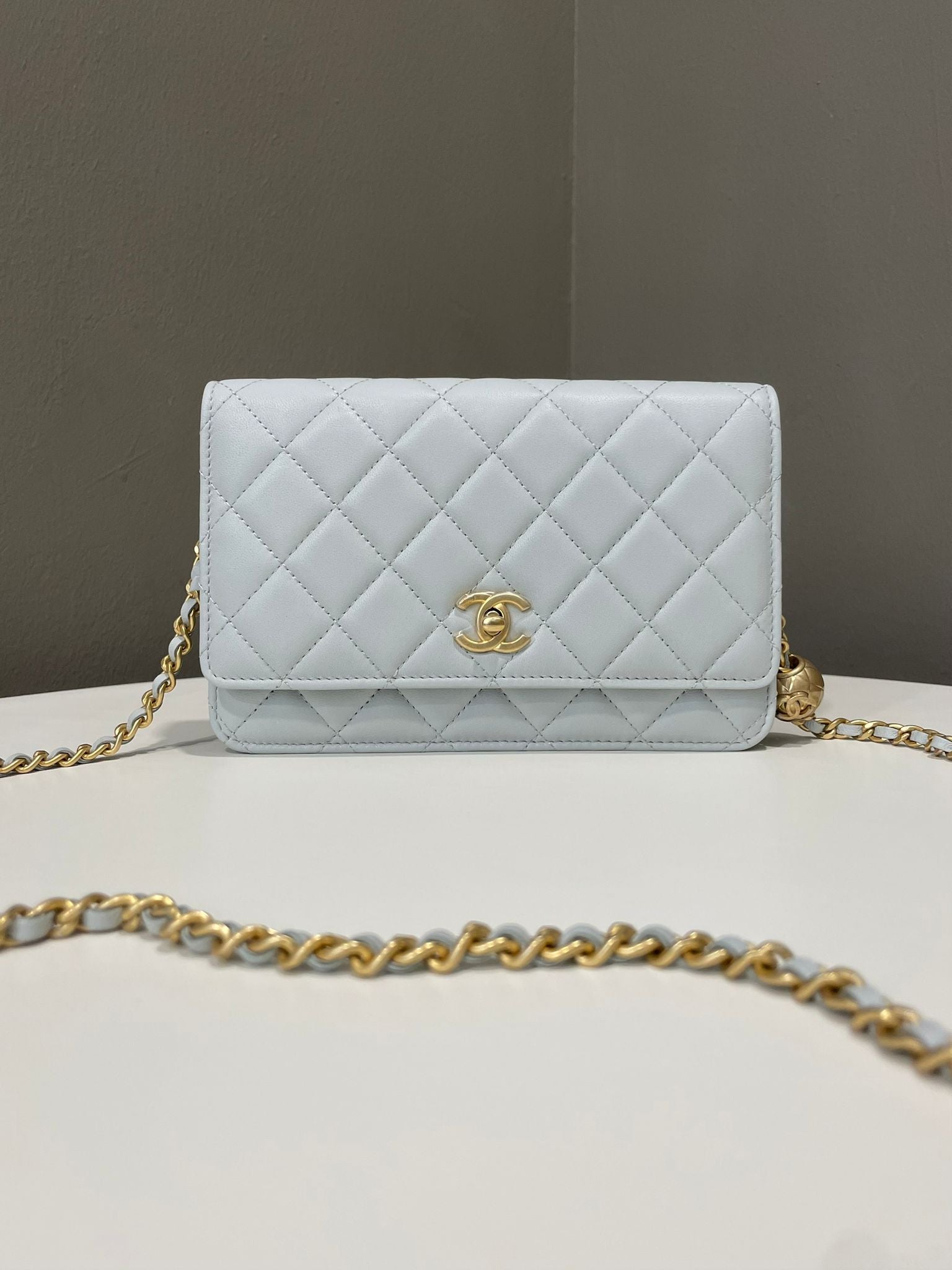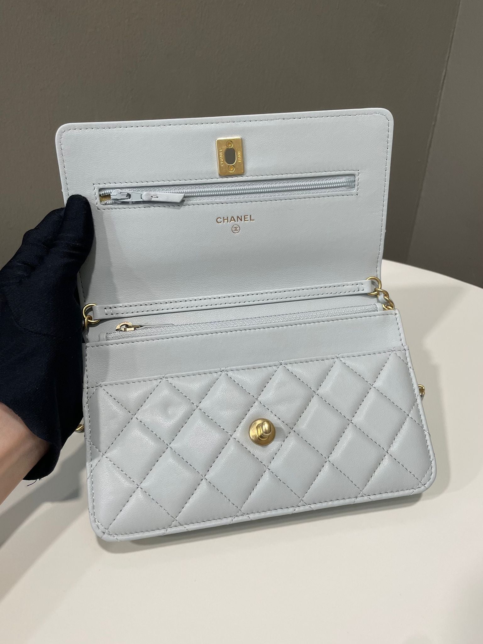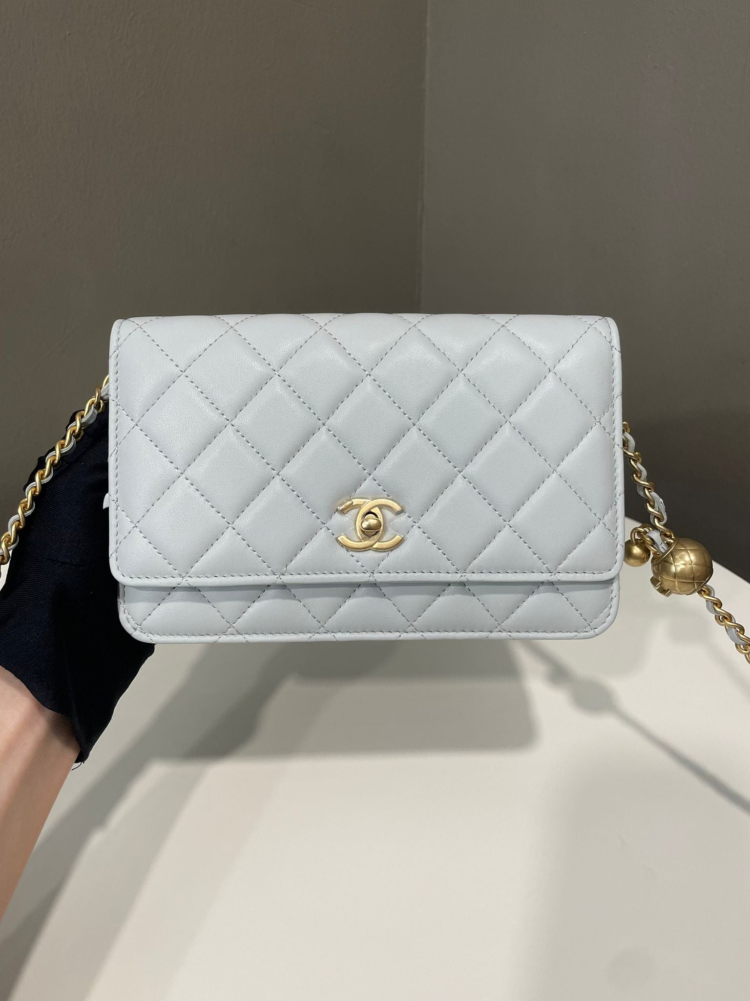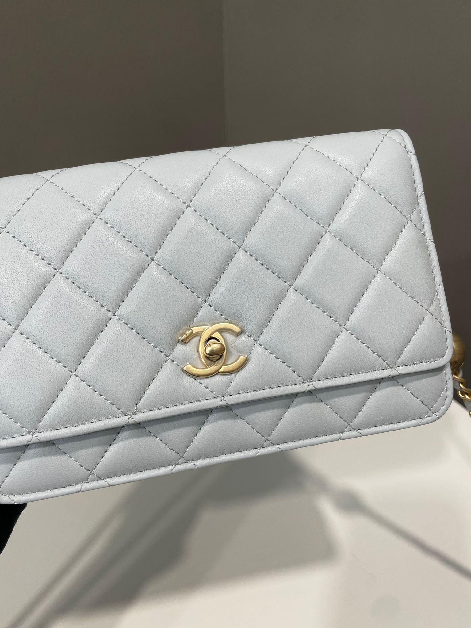 Chanel Pearl Crush Wallet on Chain Grey Lambskin