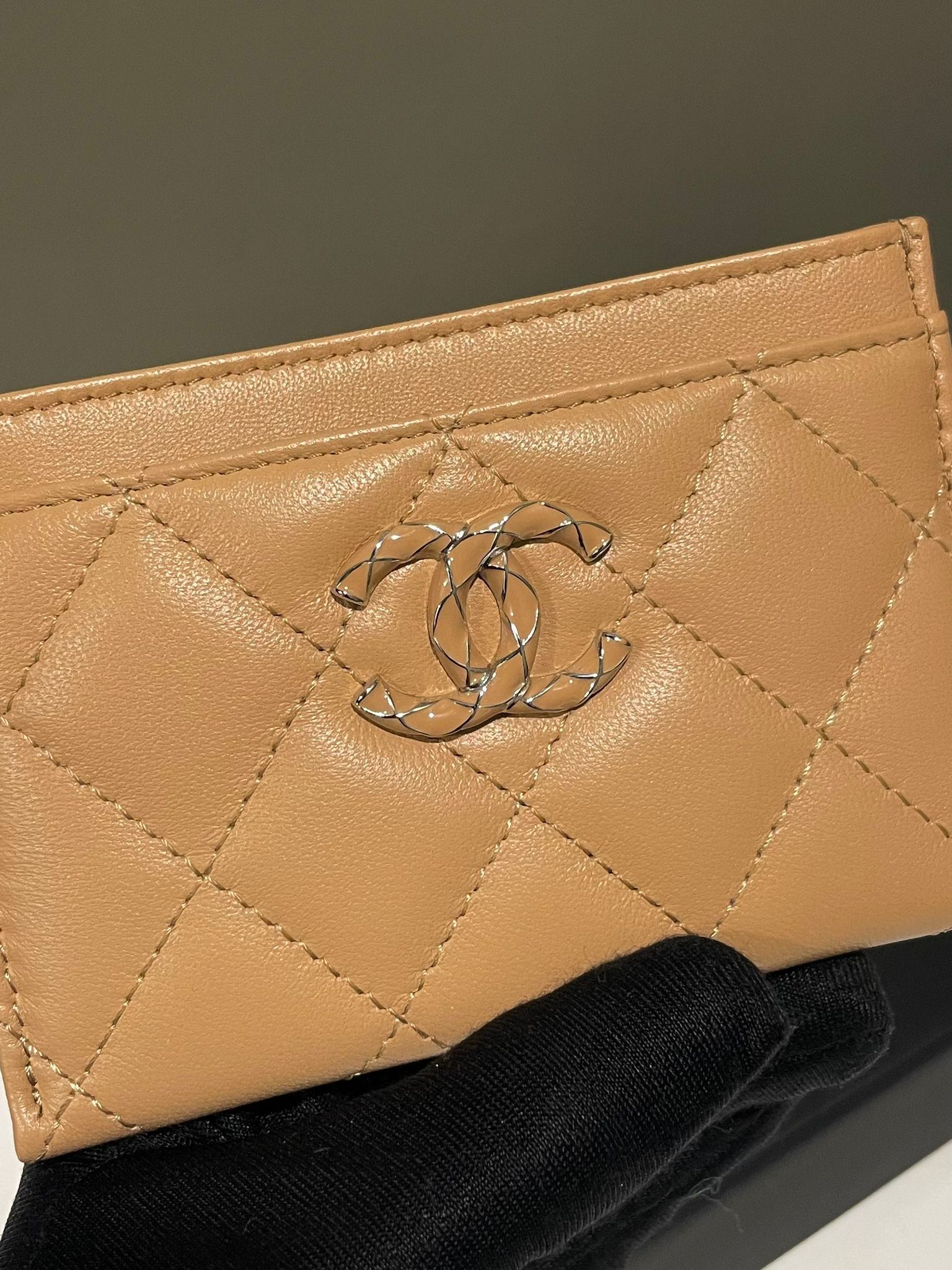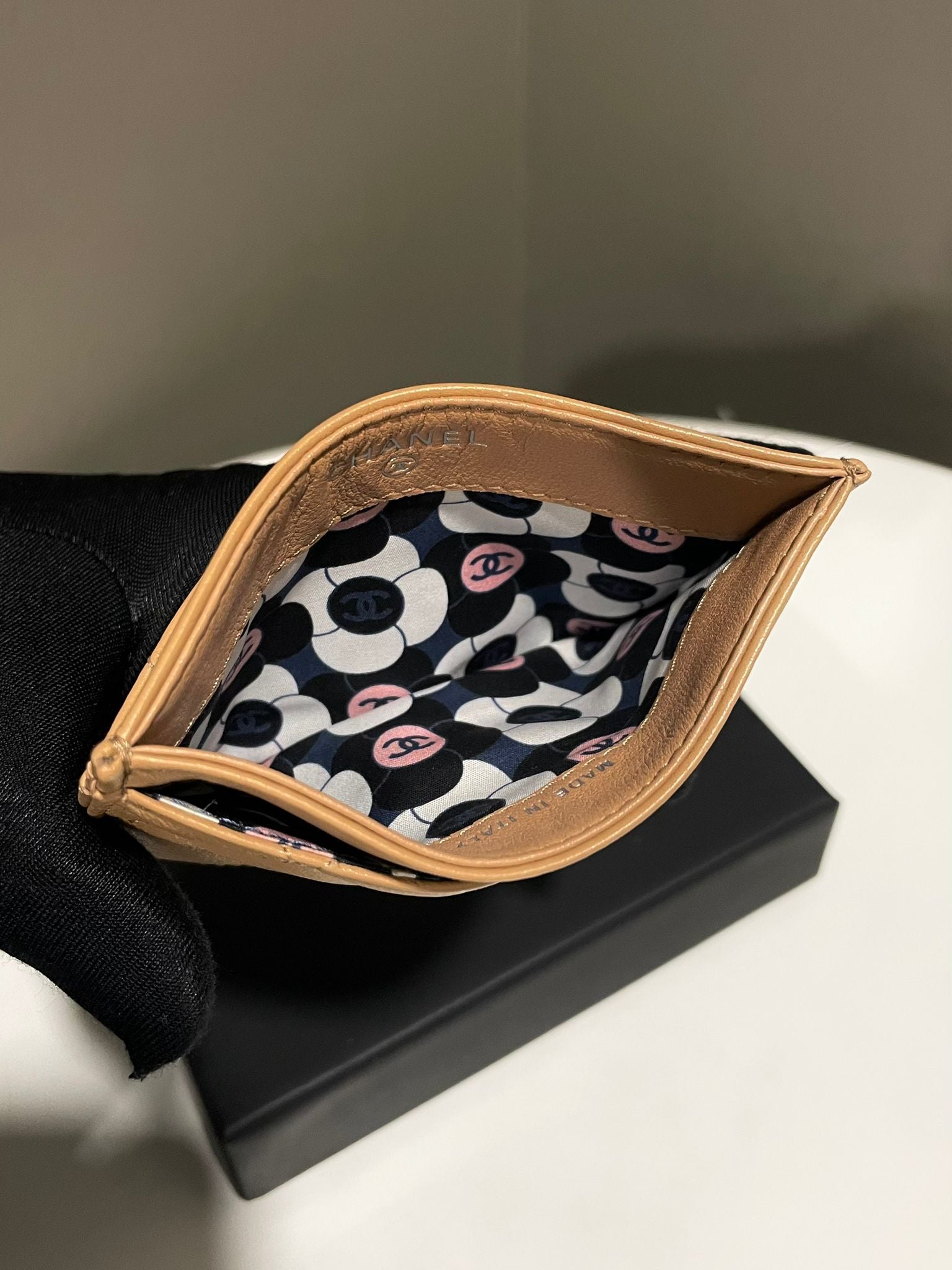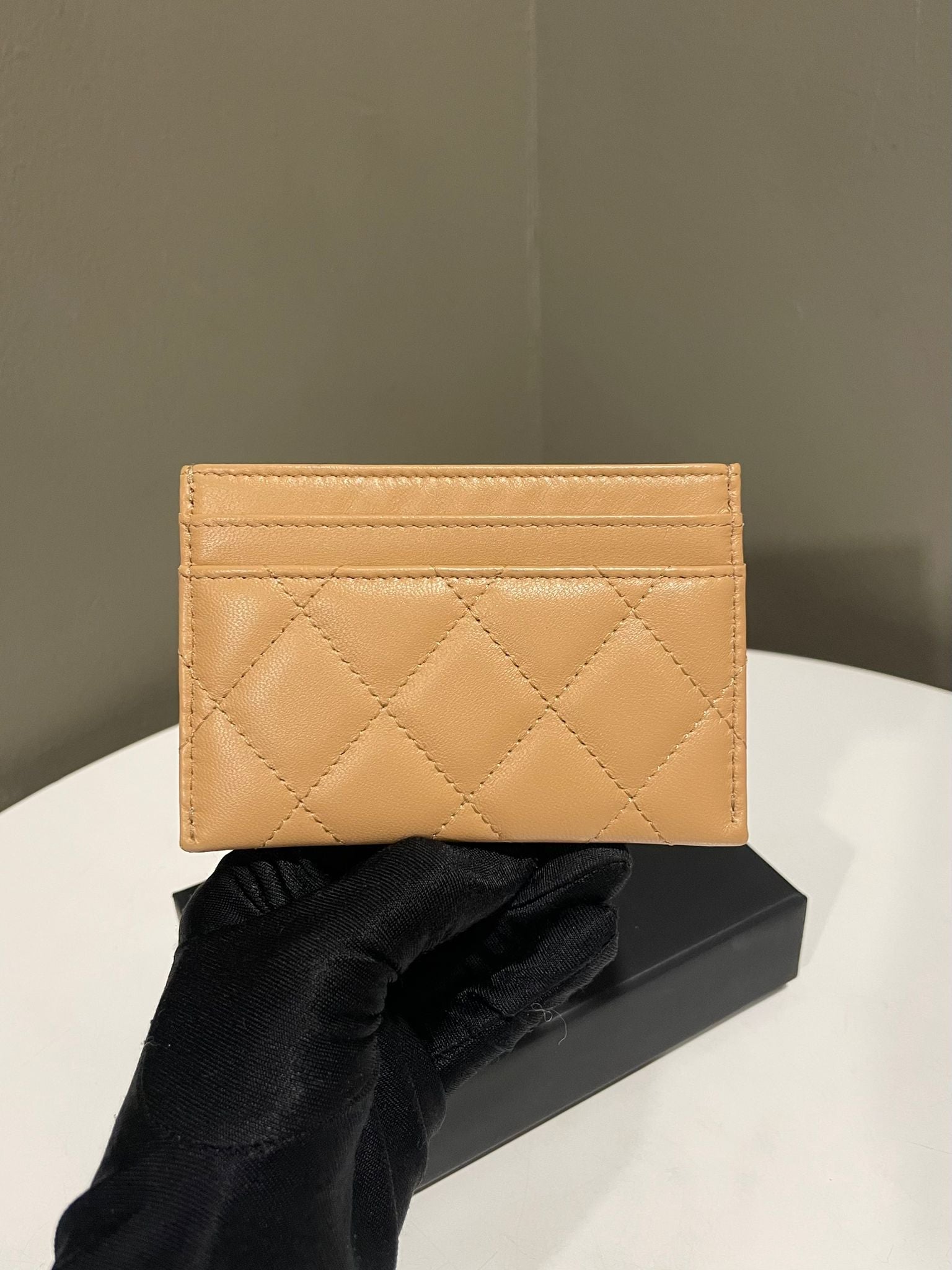 Chanel Quilted Cc Logo Card Holder Caramel Beige Lambskin