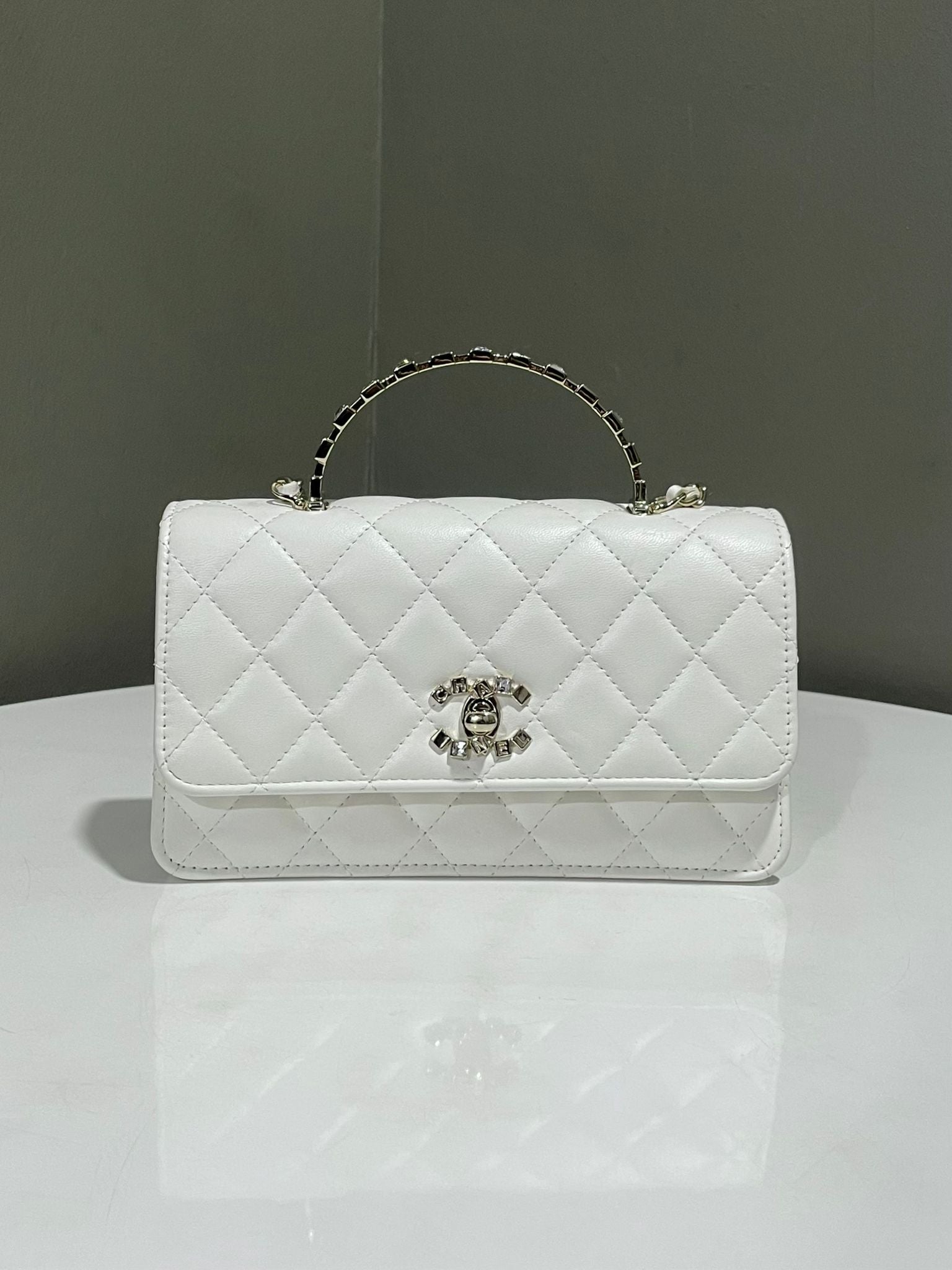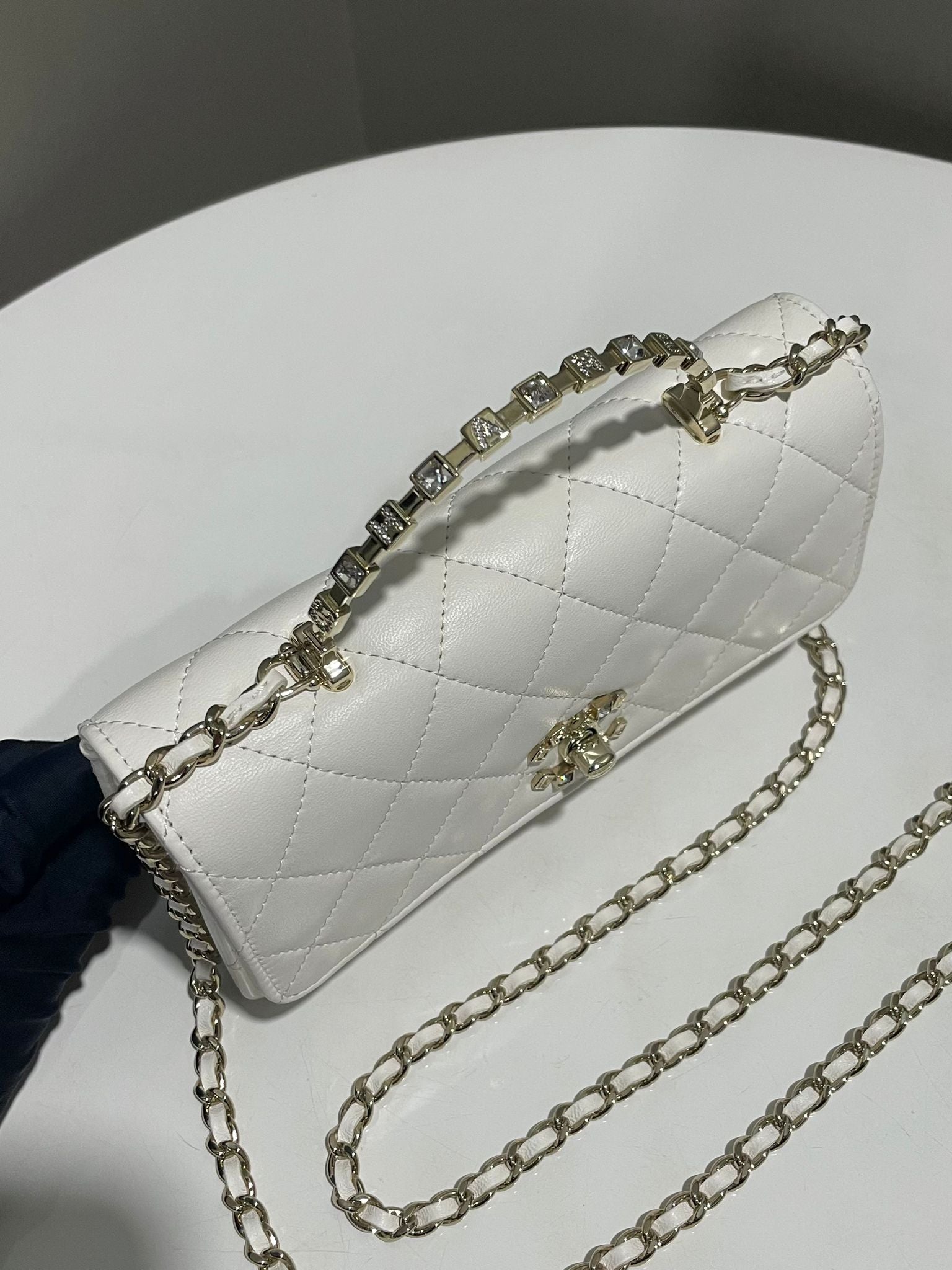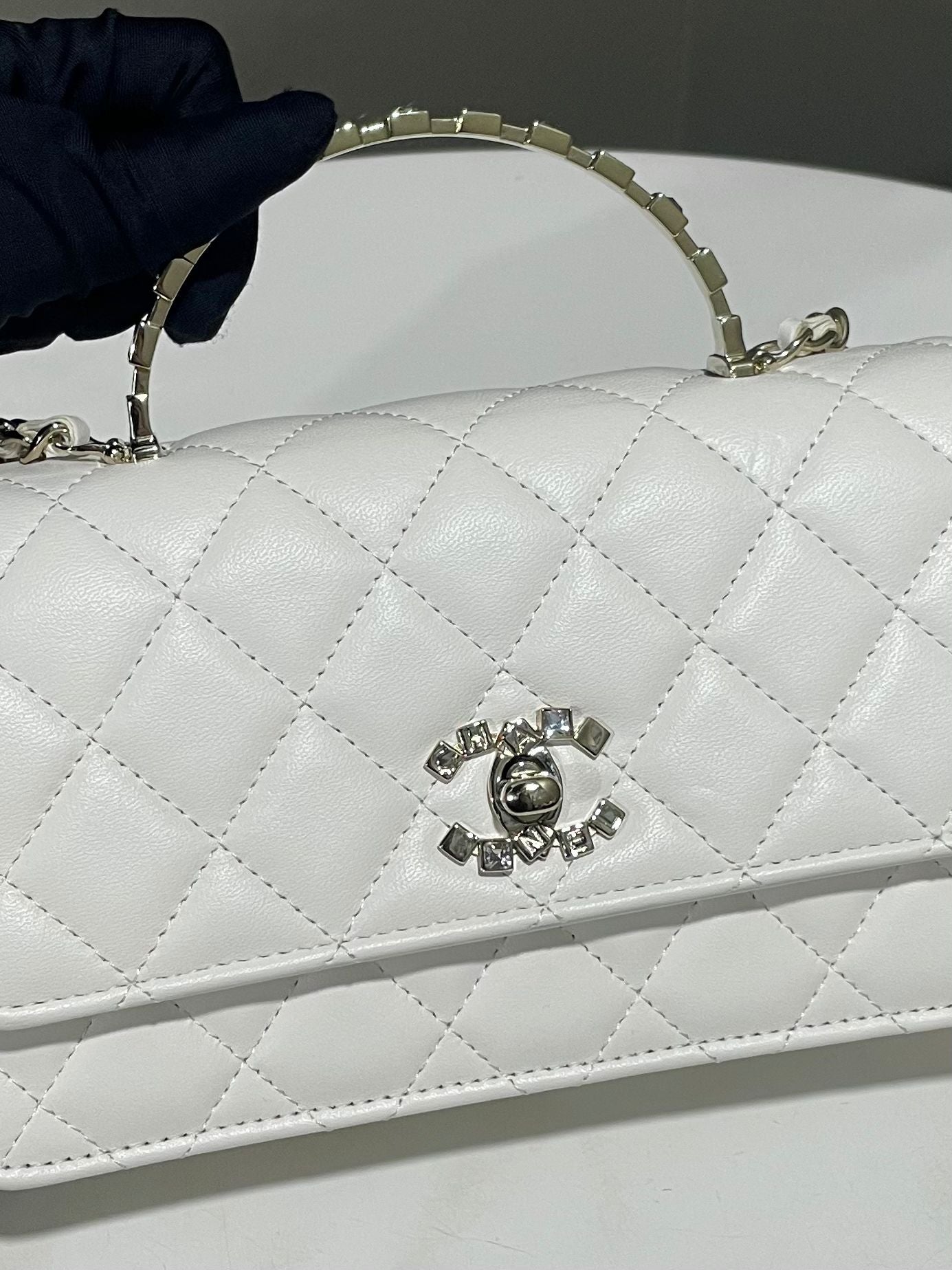 Chanel Quilted Crystal Top Handle Flap Chain Ivory