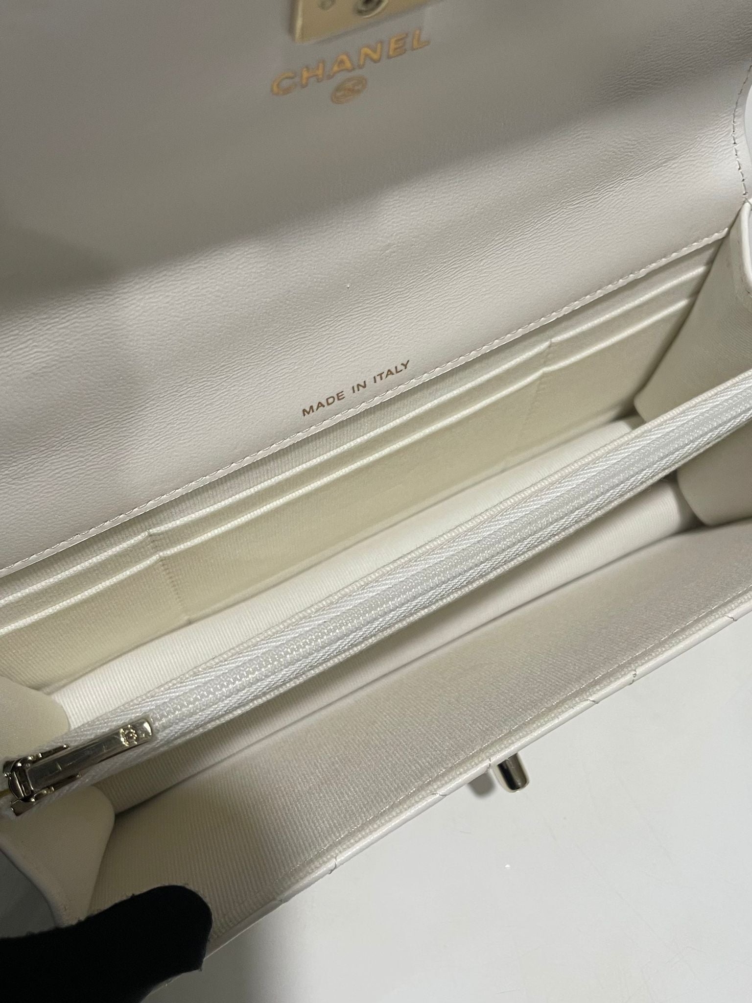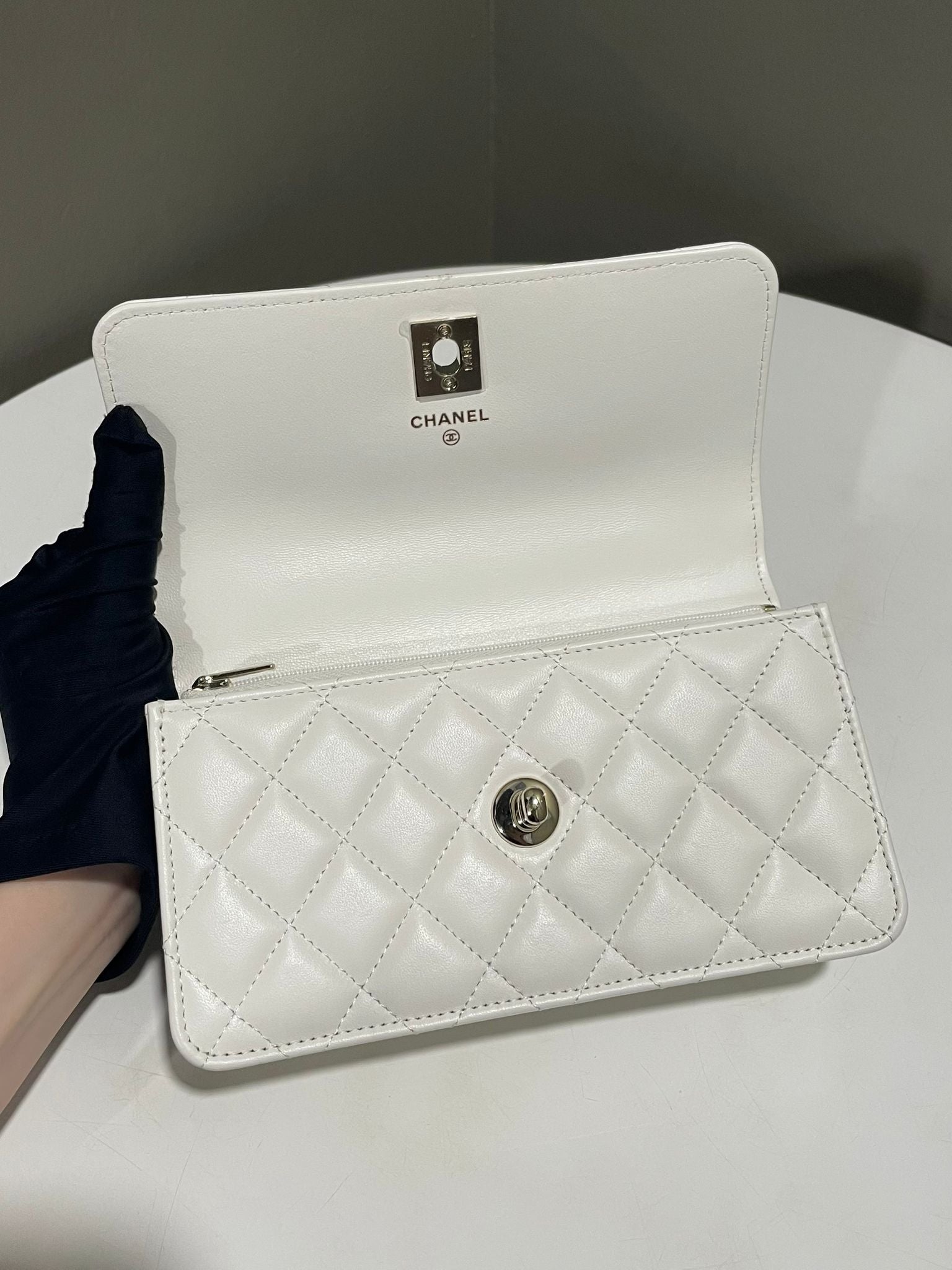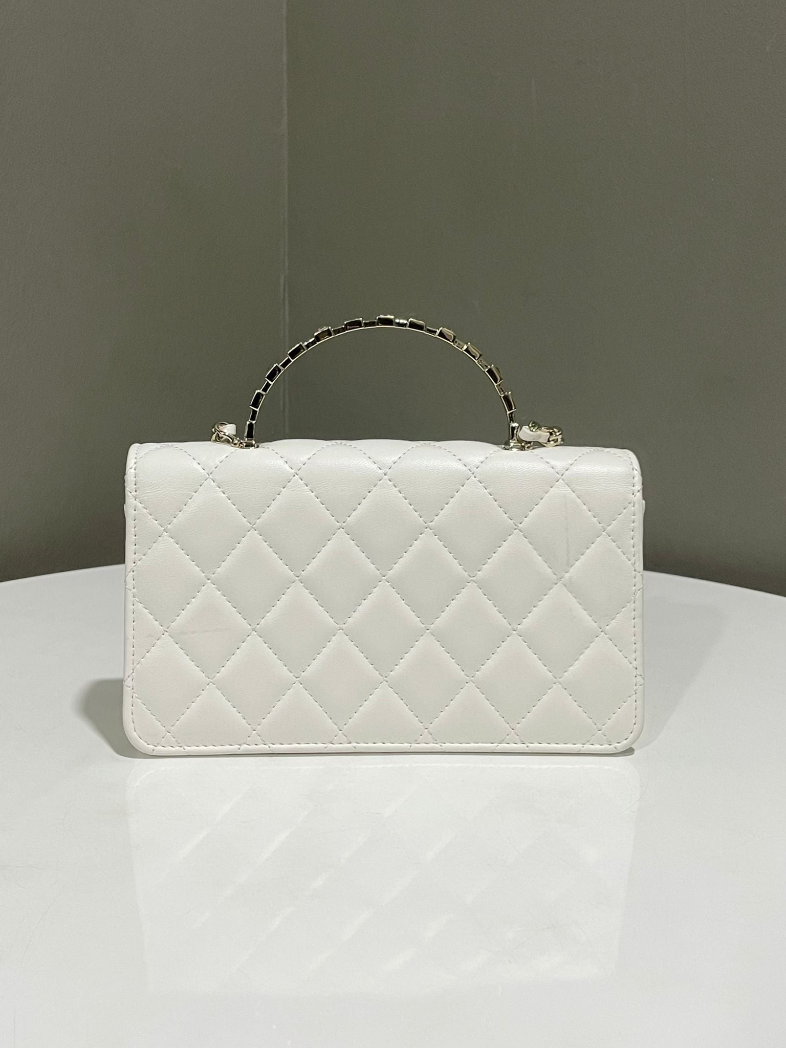 Chanel Quilted Crystal Top Handle Flap Chain Ivory