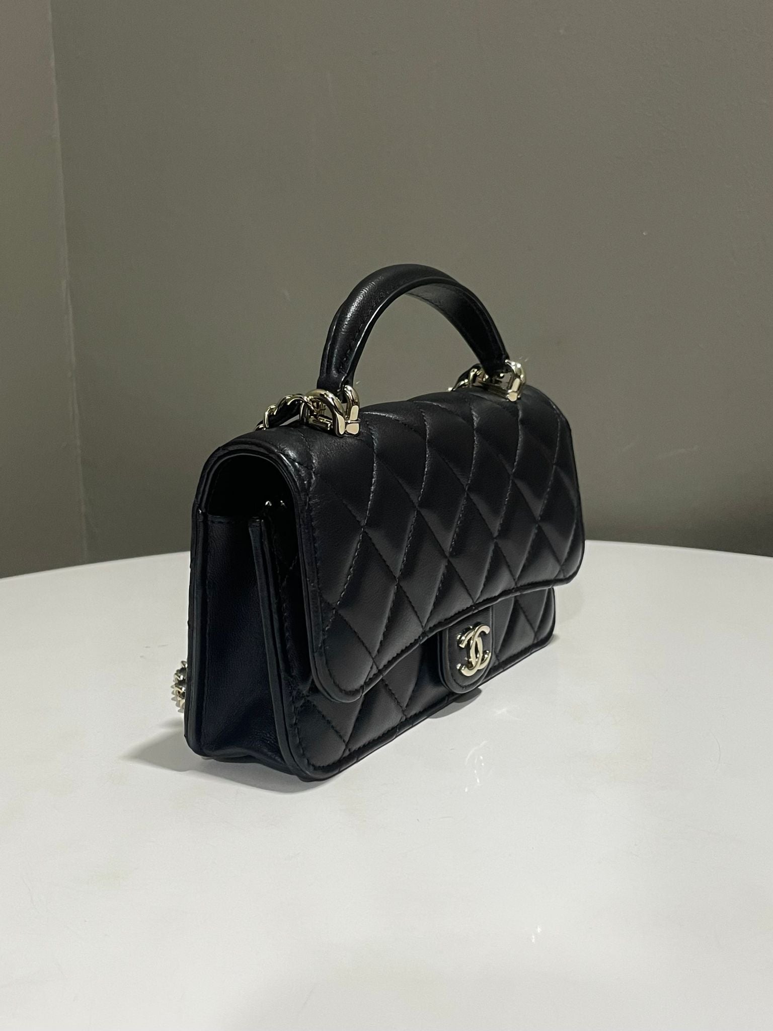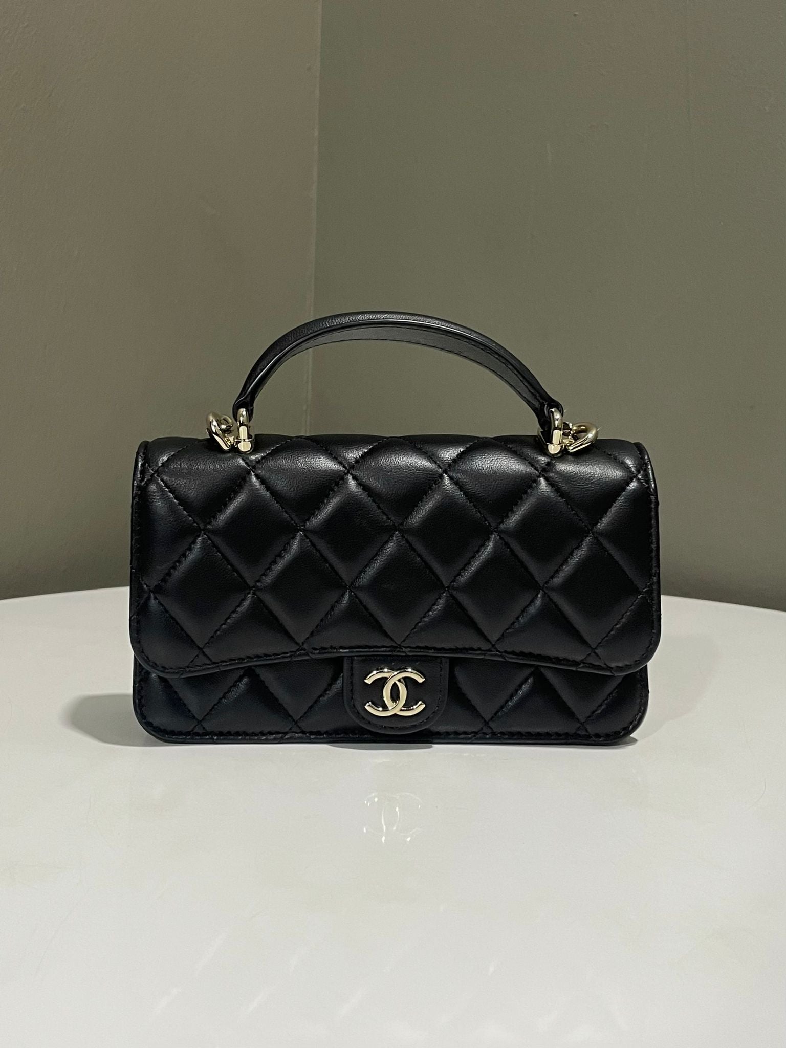 Chanel Quilted Top Handle Phone Clutch on Chain