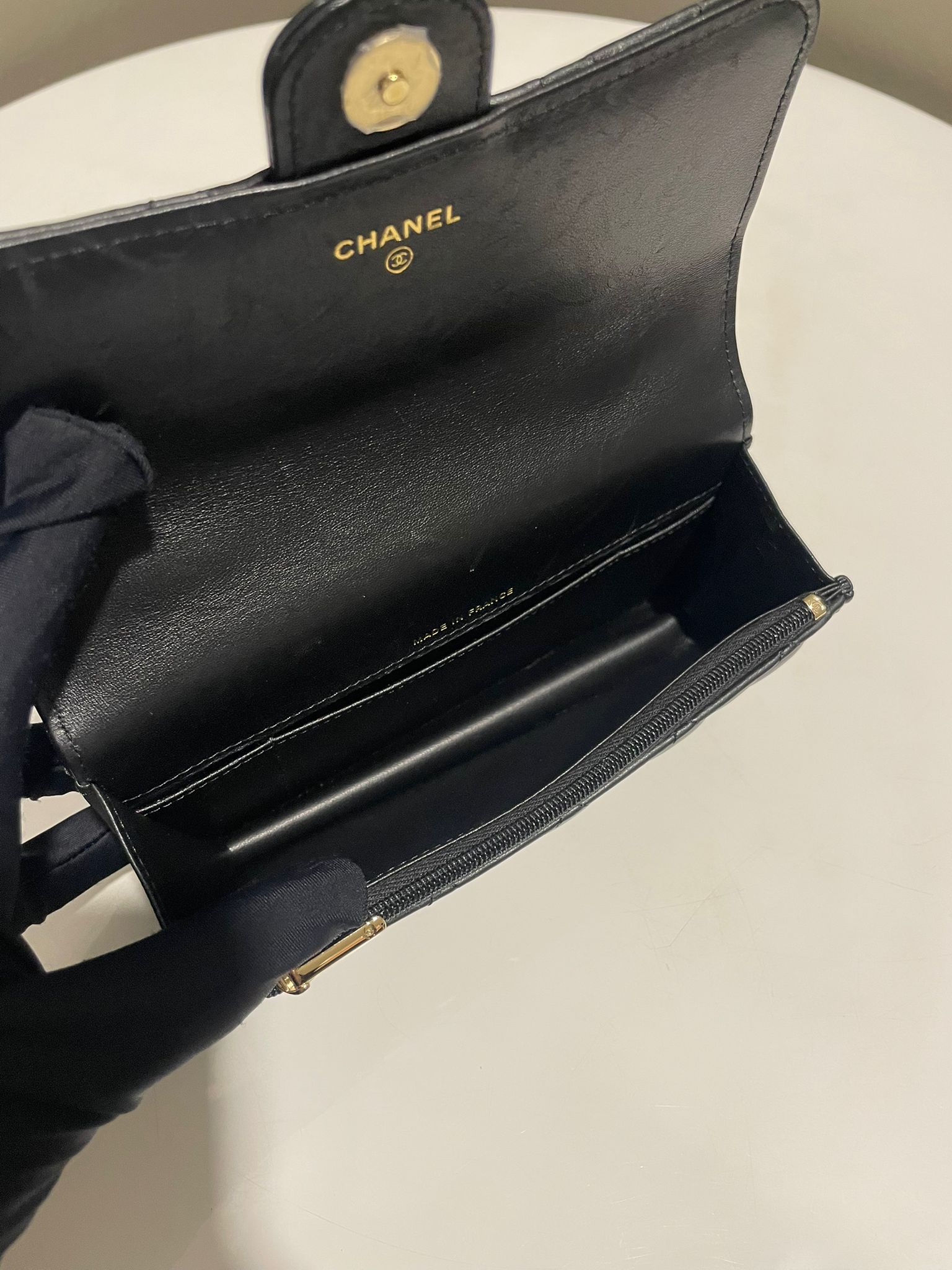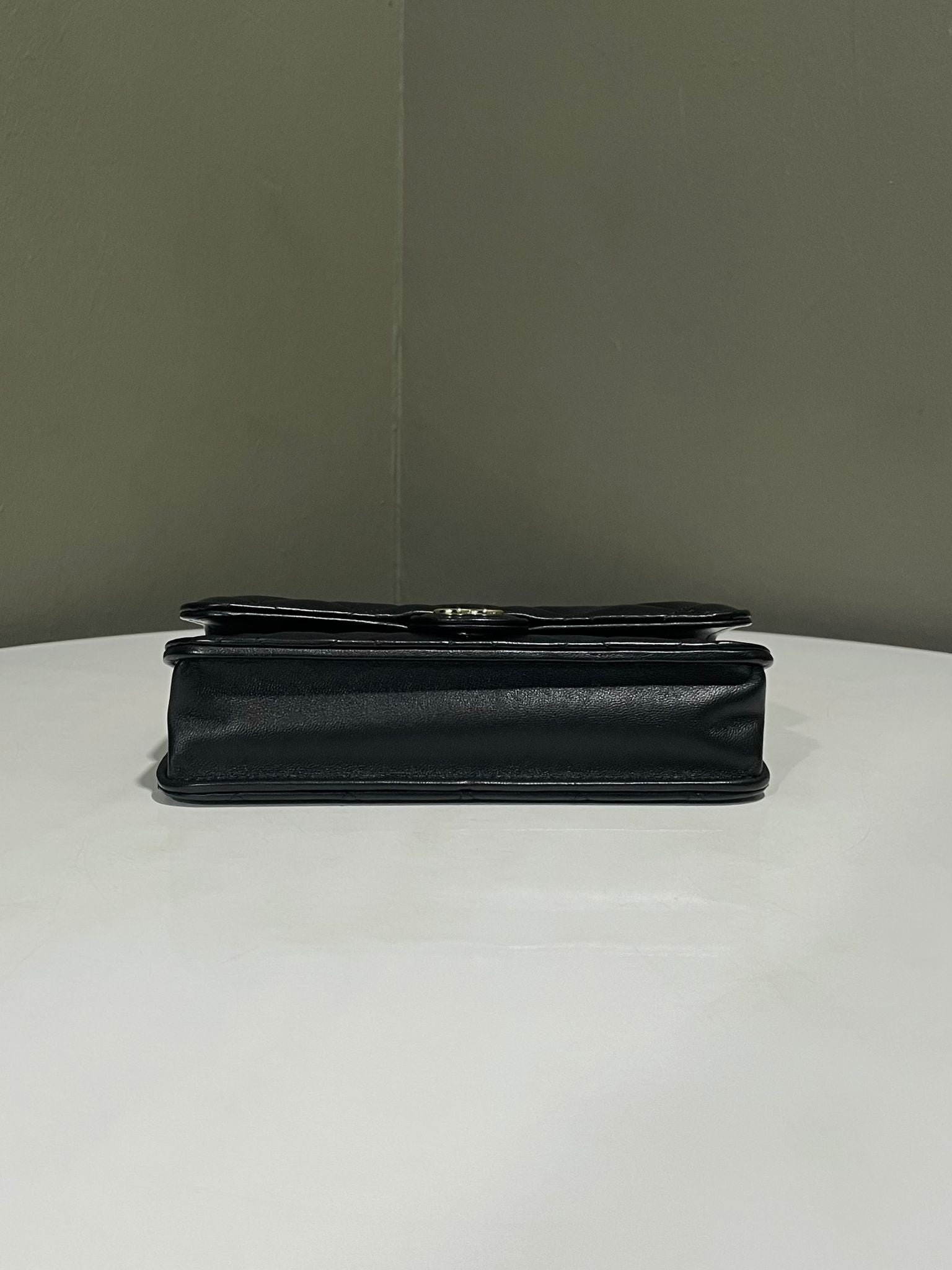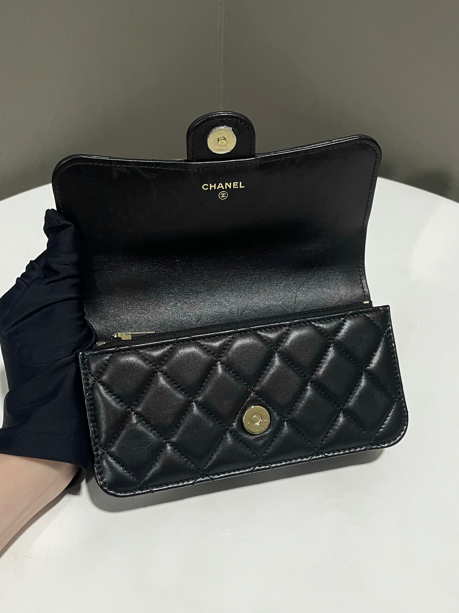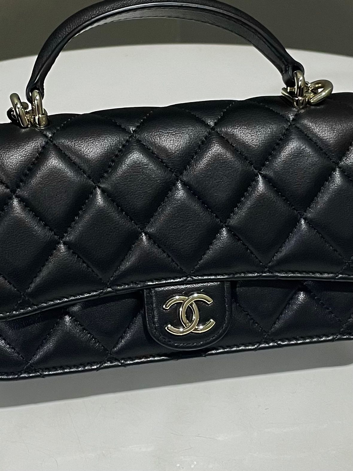 Chanel Quilted Top Handle Phone Clutch on Chain Black Lambskin