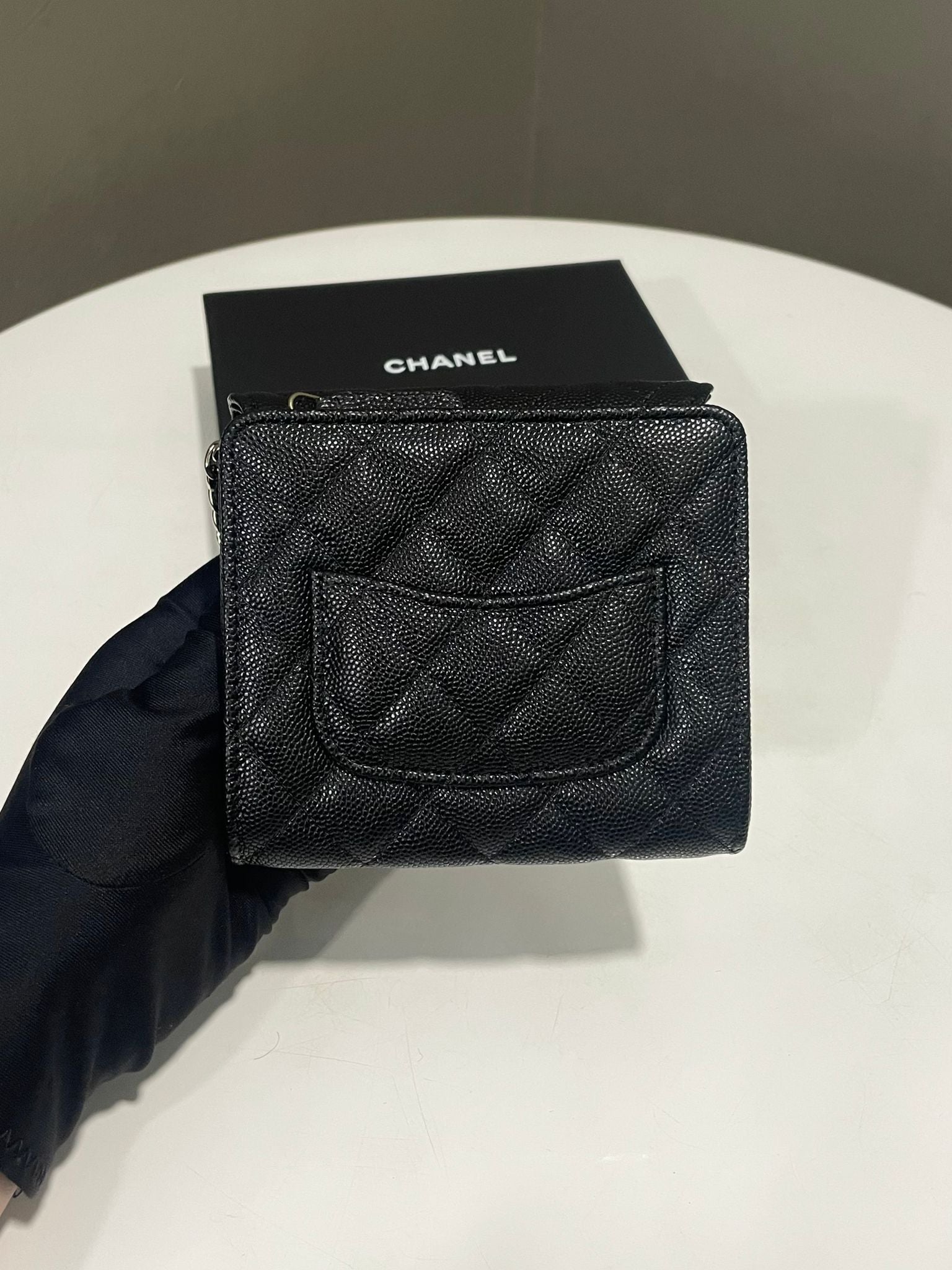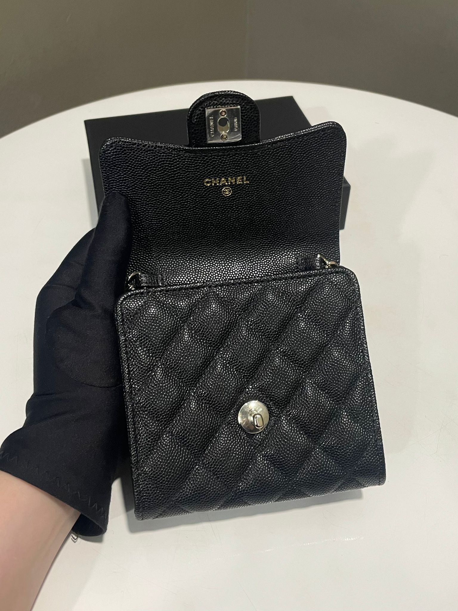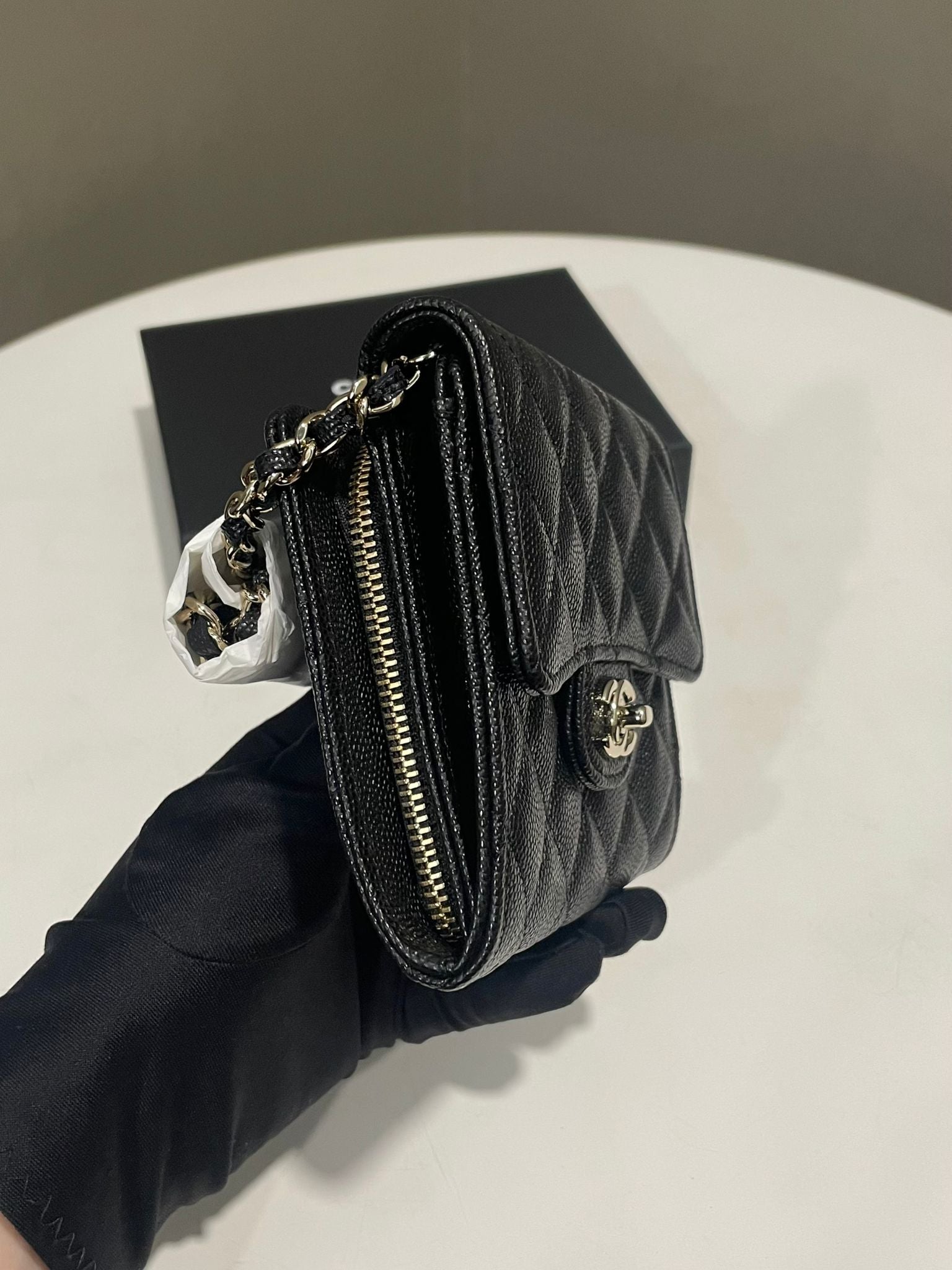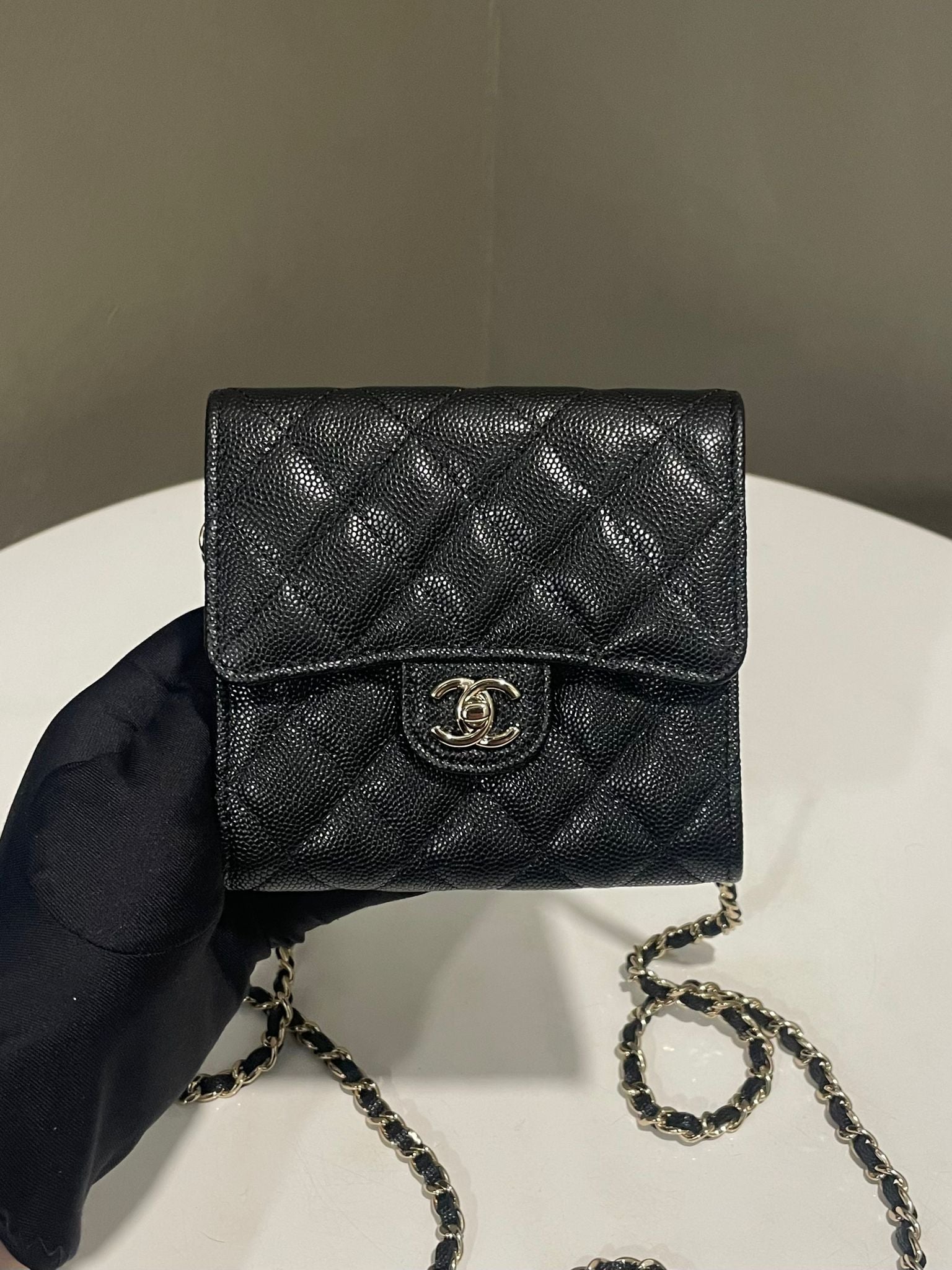 Chanel Quilted Wallet Clutch With Chain Black Caviar