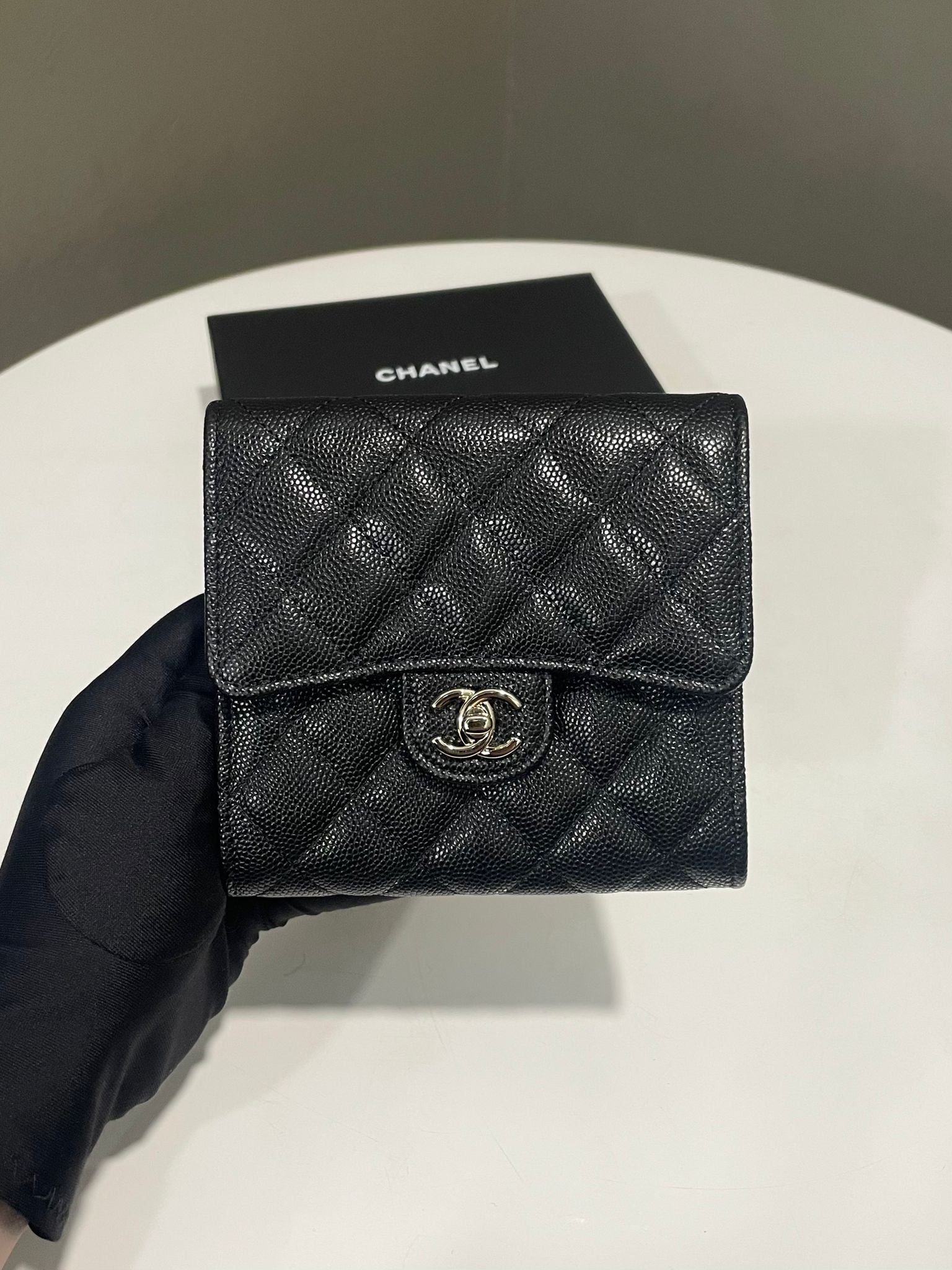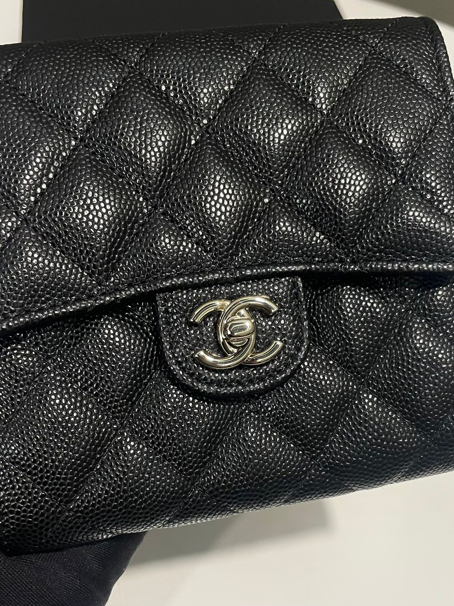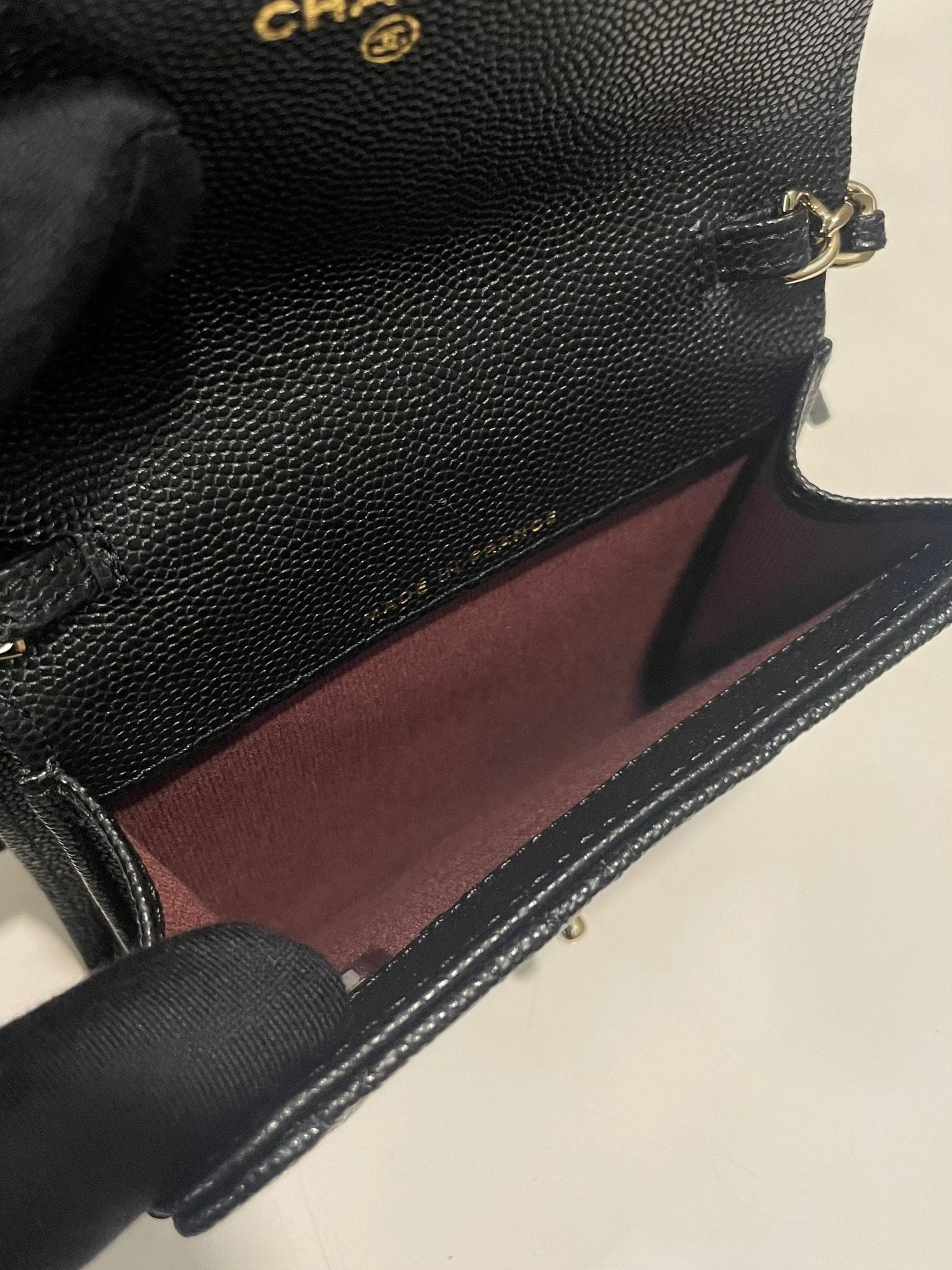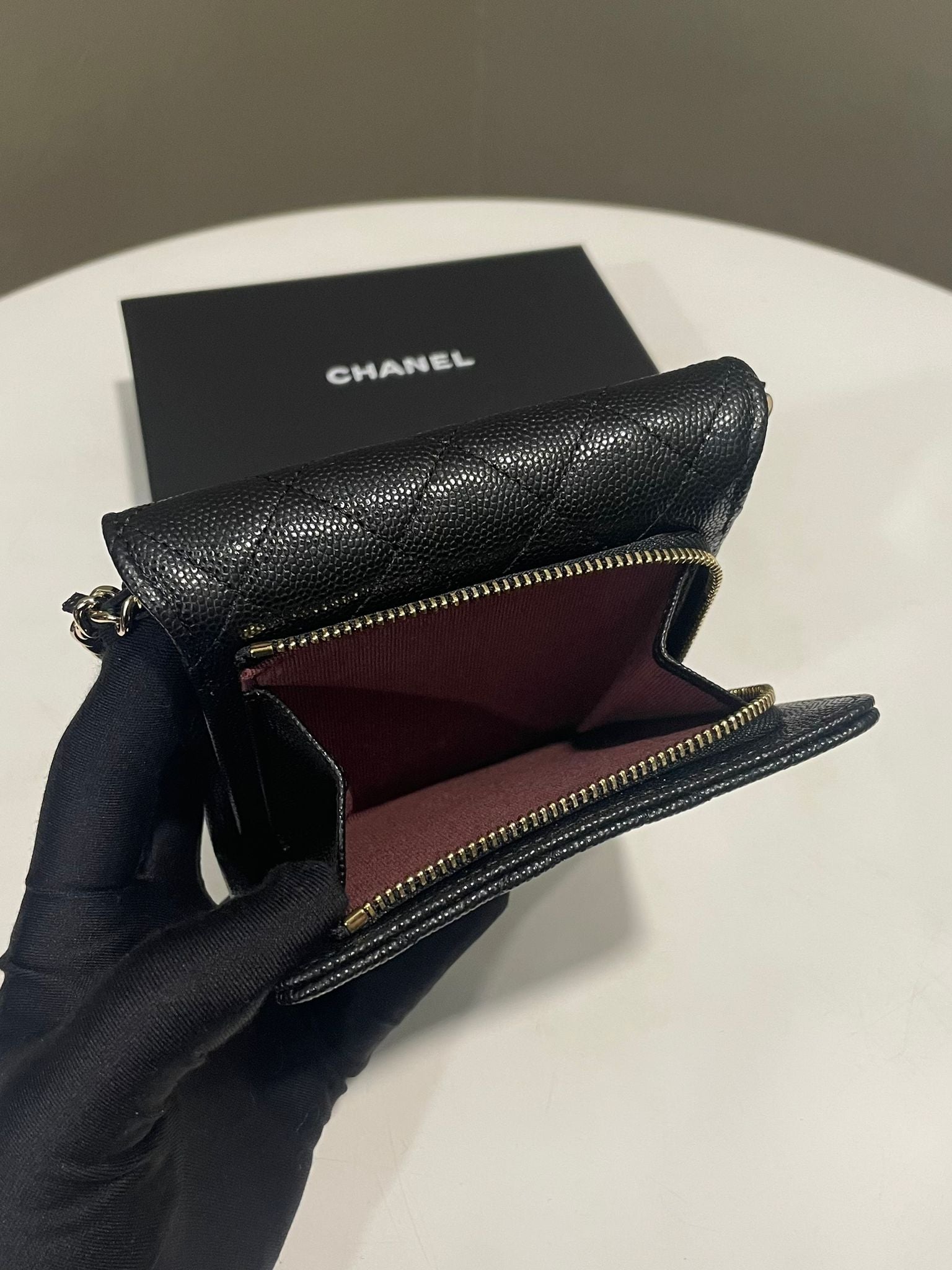 Chanel Quilted Wallet Clutch With Chain Black Caviar