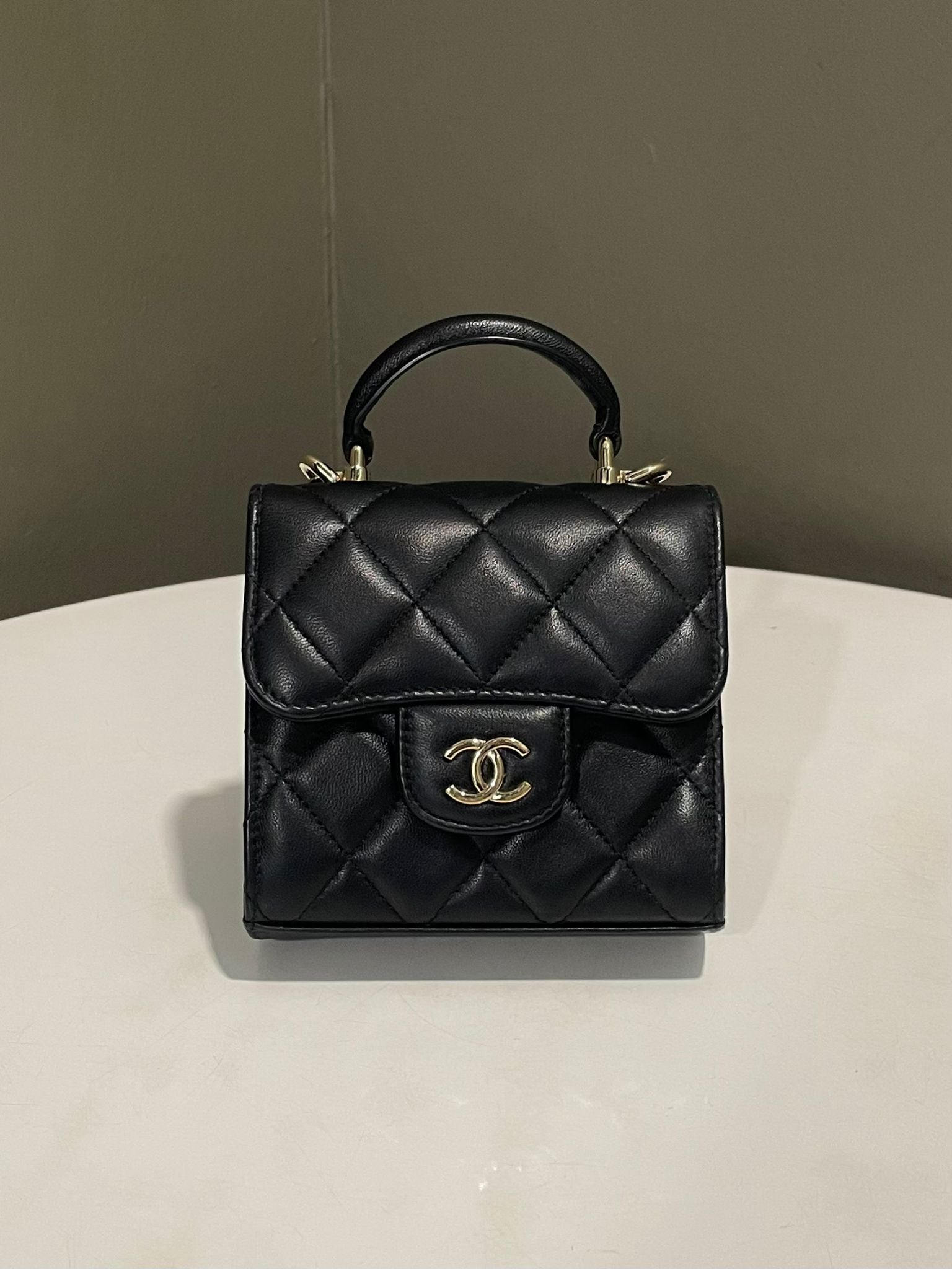 Chanel Top Handle Mini Clutch on Chain Black Lambskin