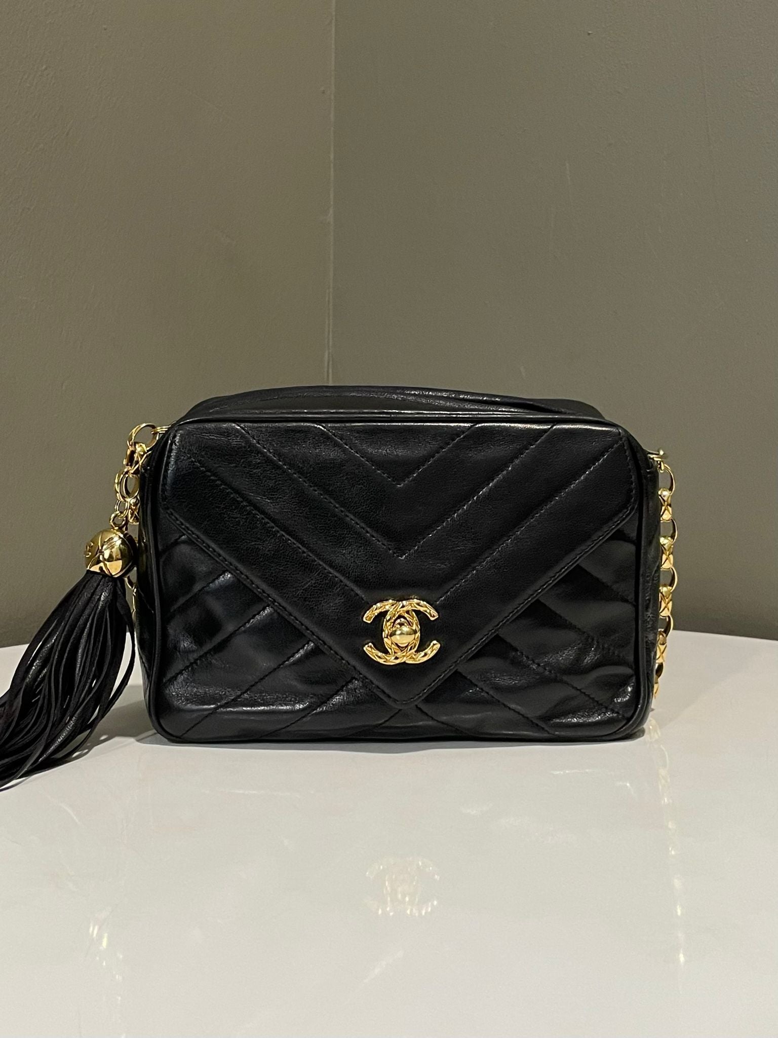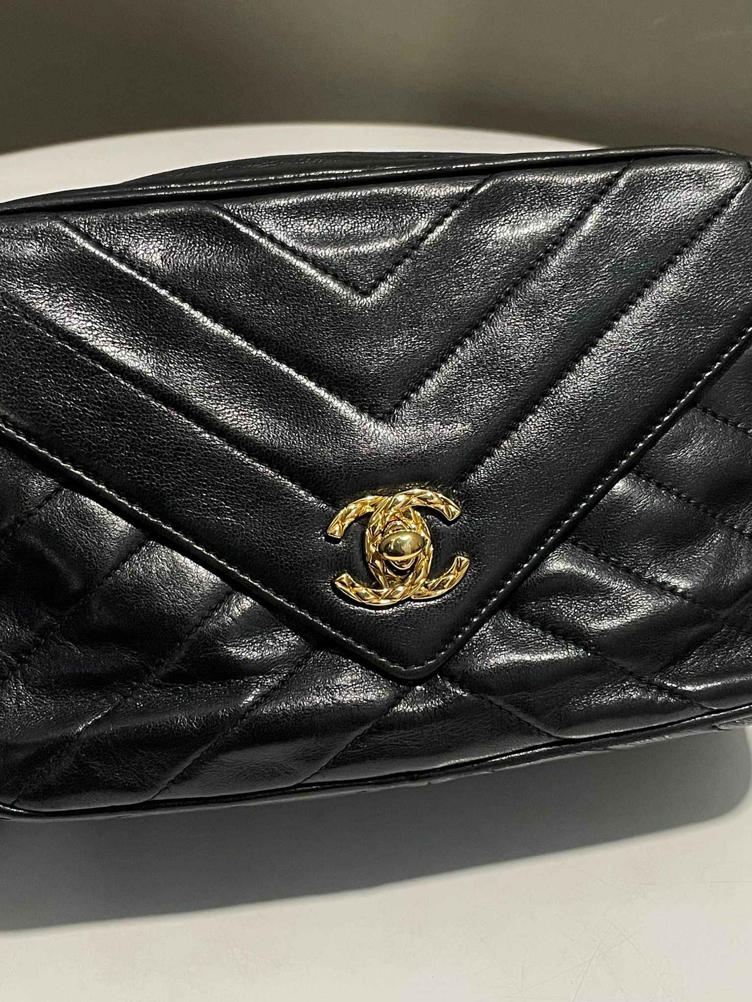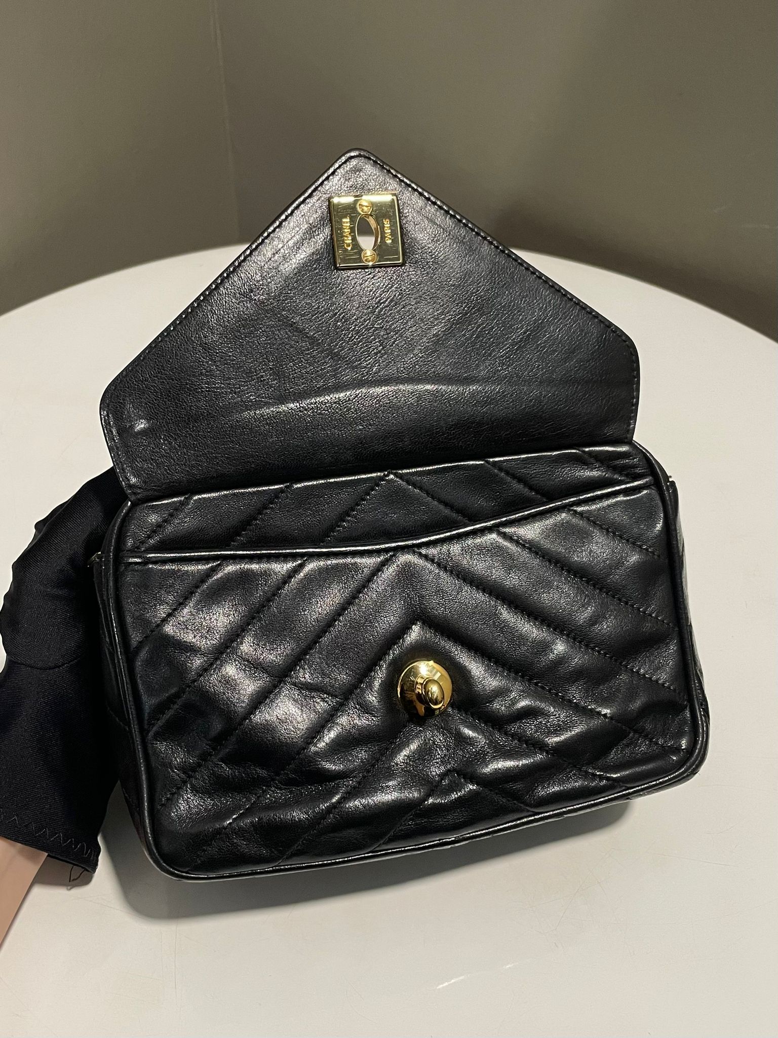 Chanel Vintage Chevron Camera Mini Bag Black Lambskin
