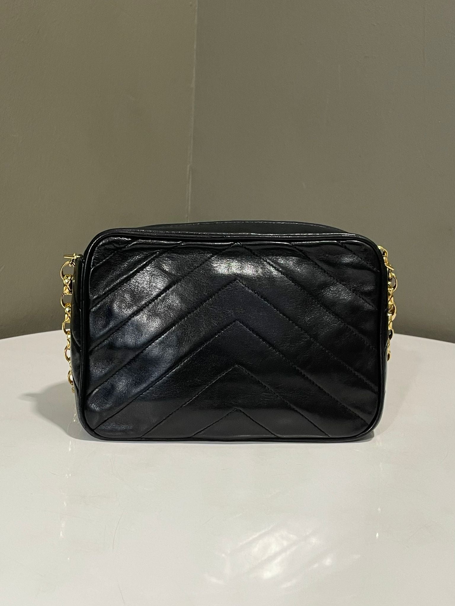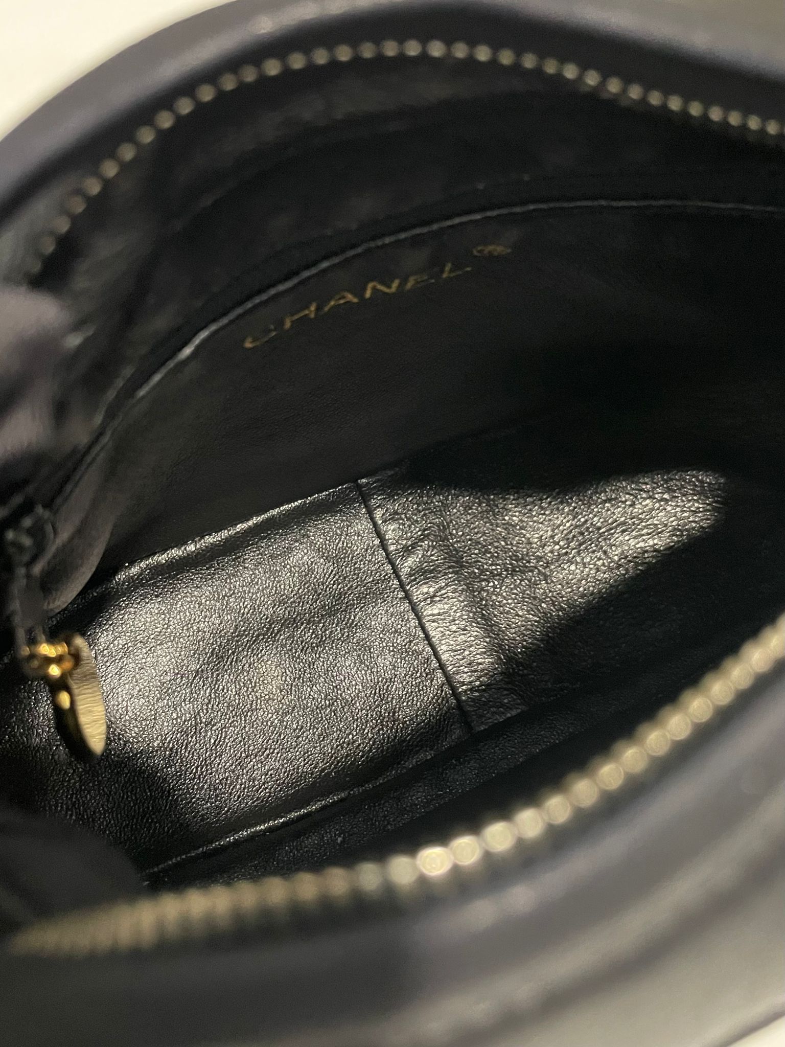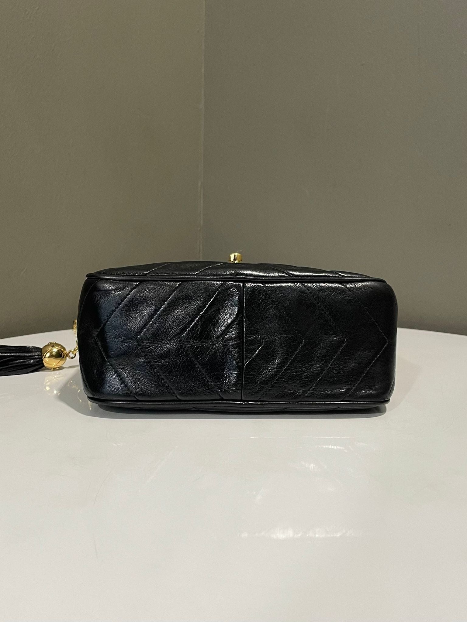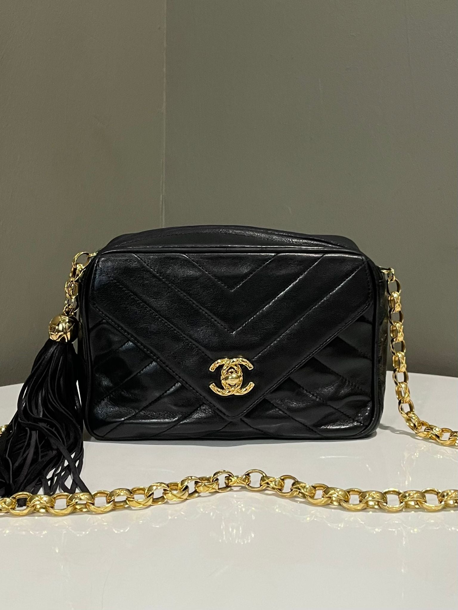 Chanel Vintage Chevron Camera Mini Bag Black Lambskin