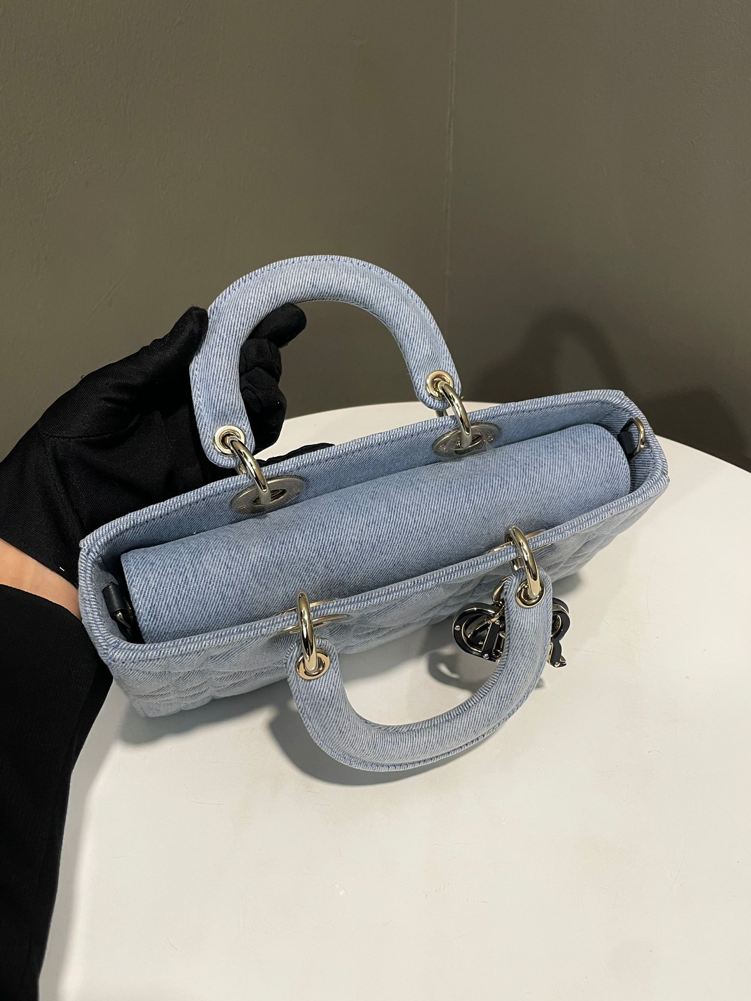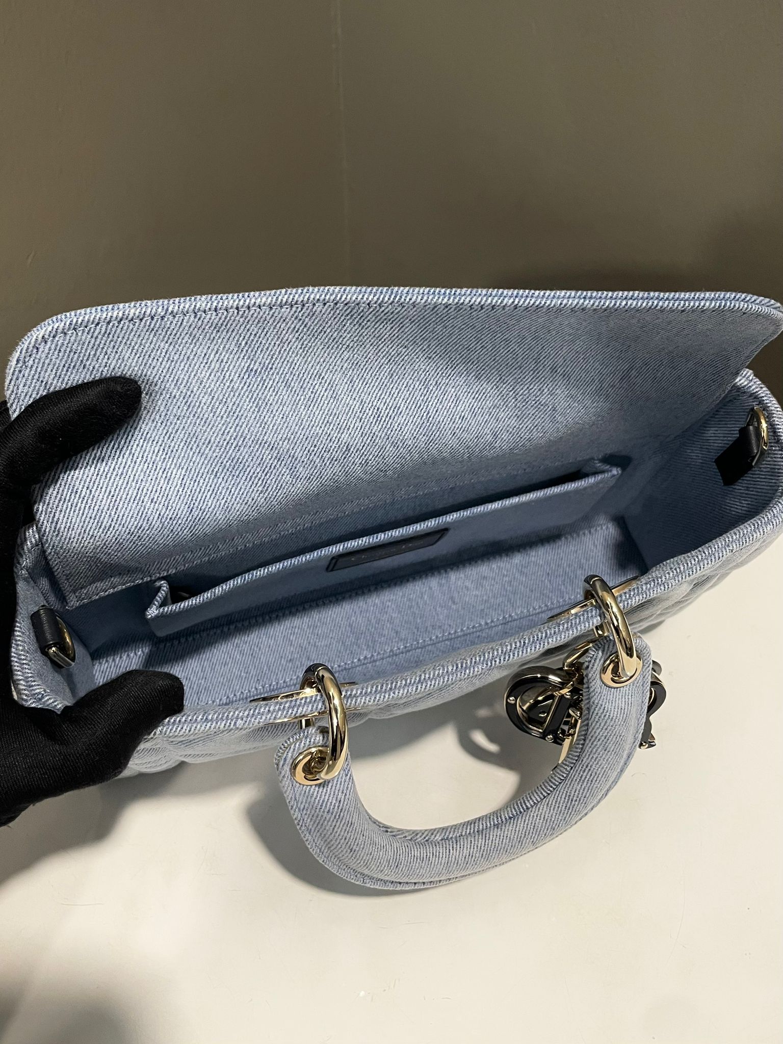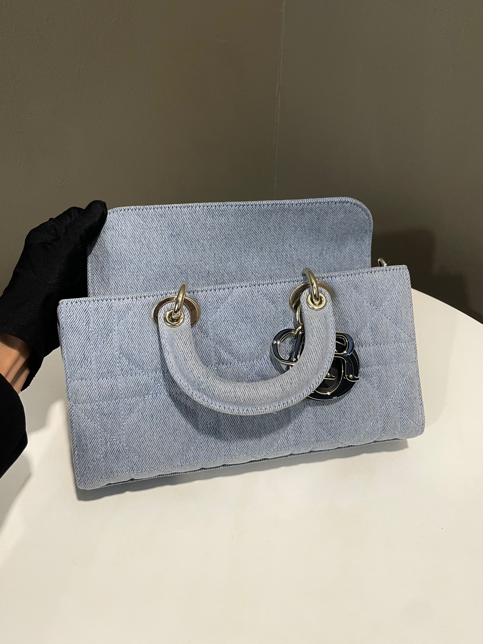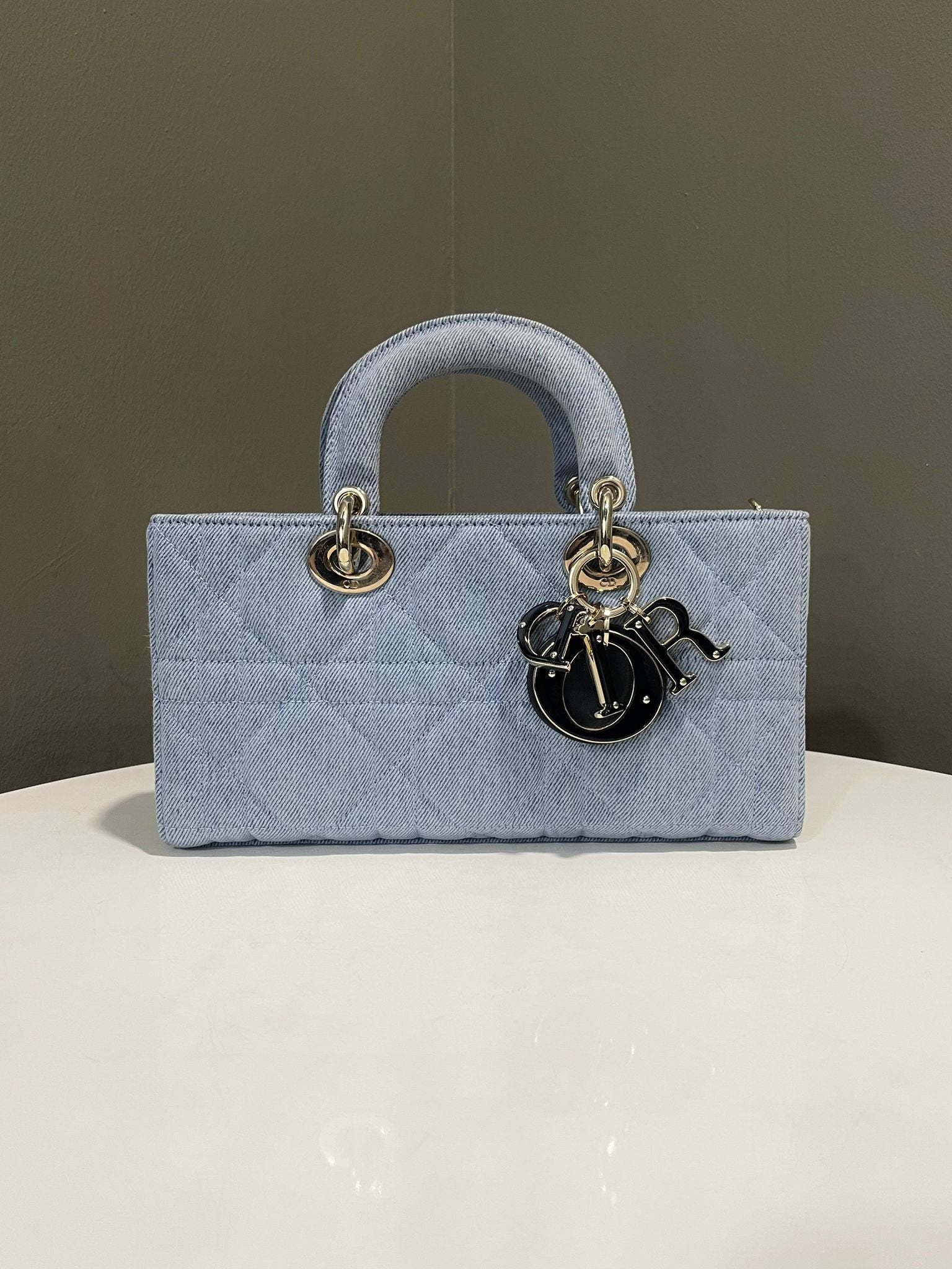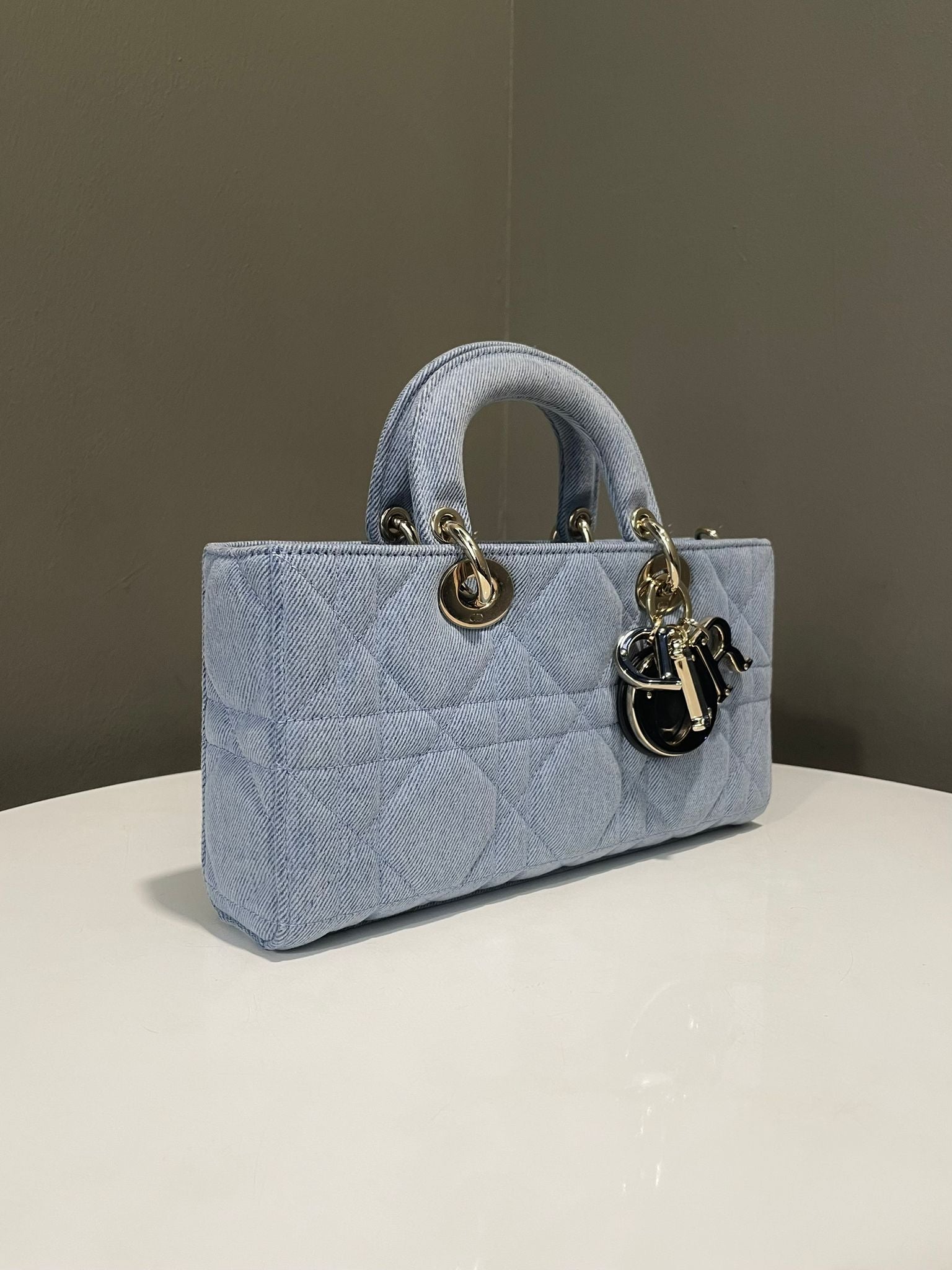 Dior Lady D-Joy Macrocannage Bag Light Blue Denim Enamel