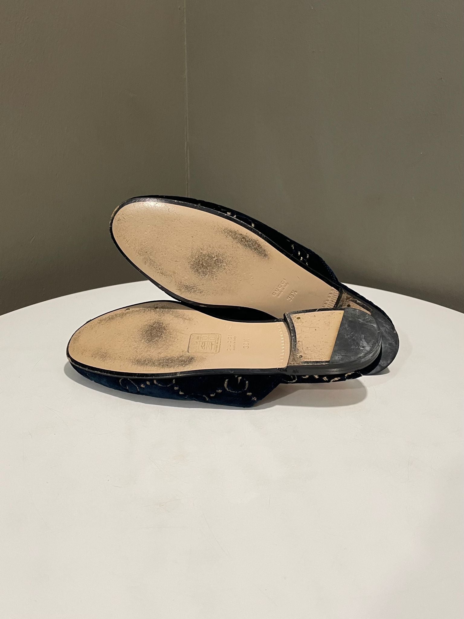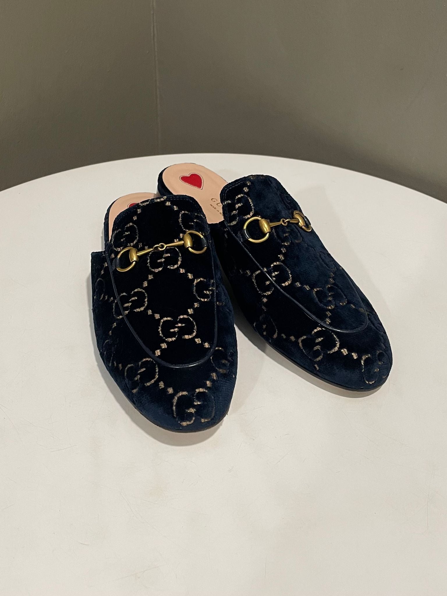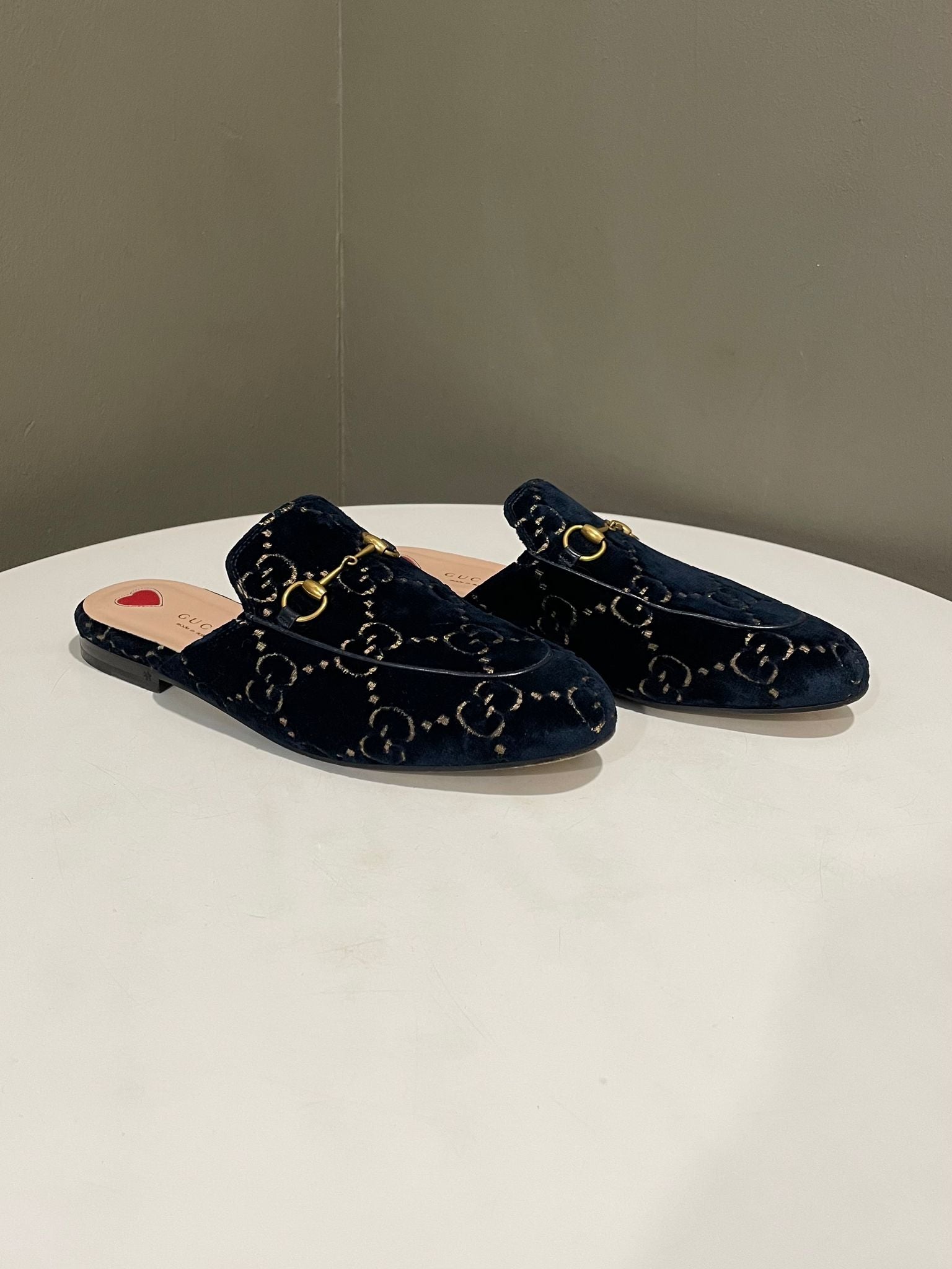 Gucci Printown Mules Midnight Navy Blue Velvet Size 38.5
