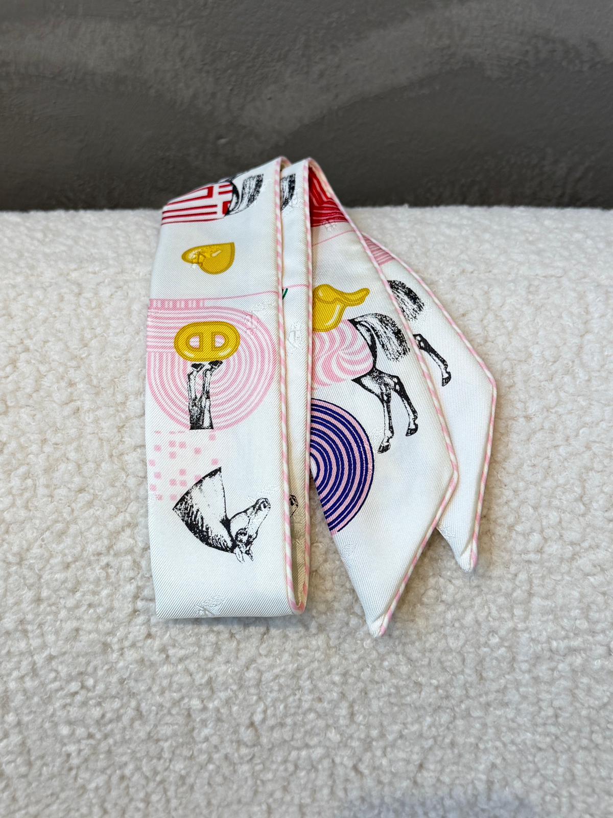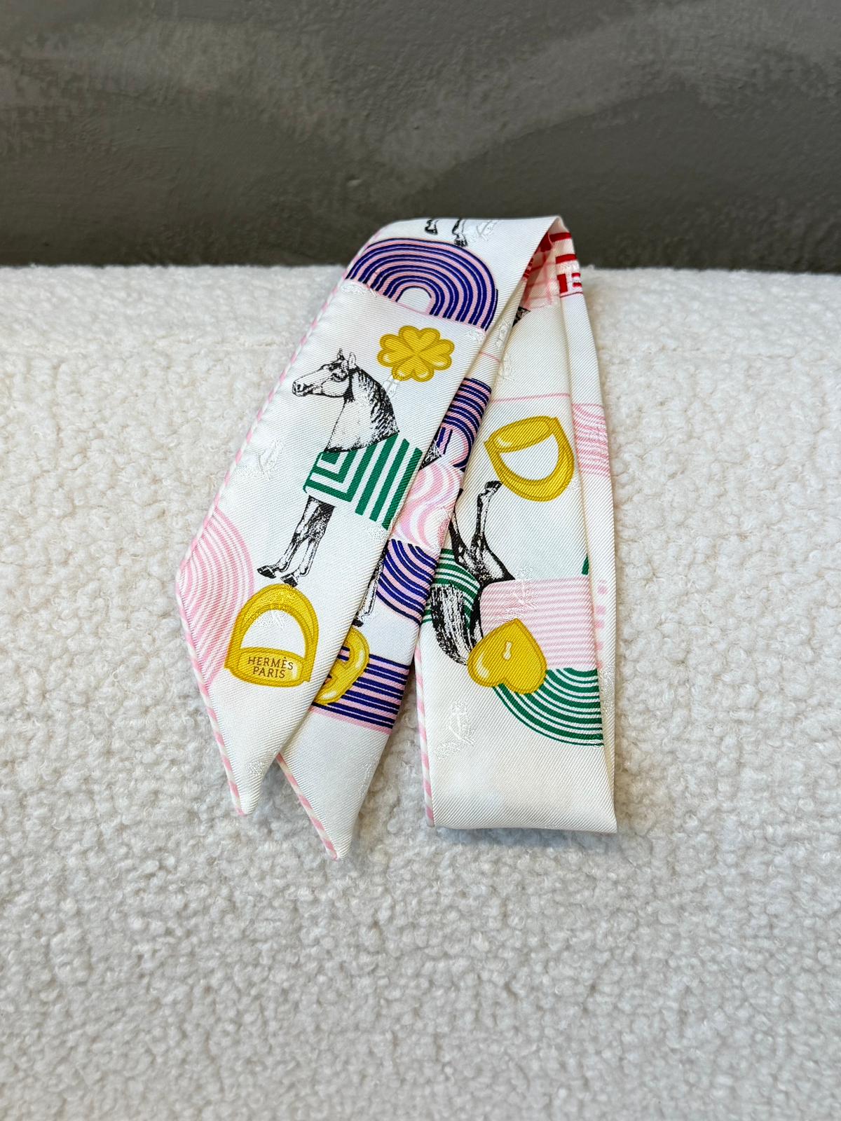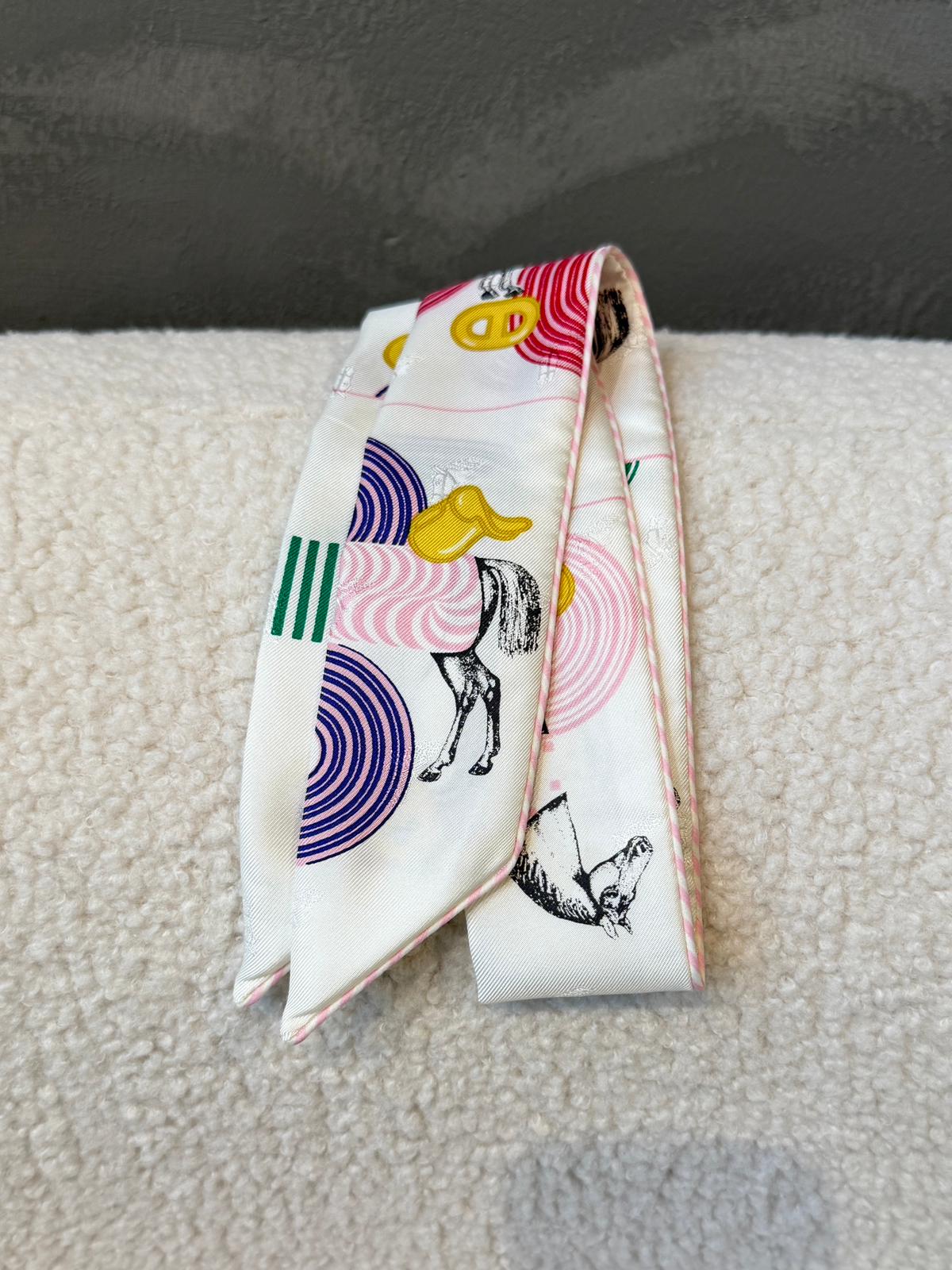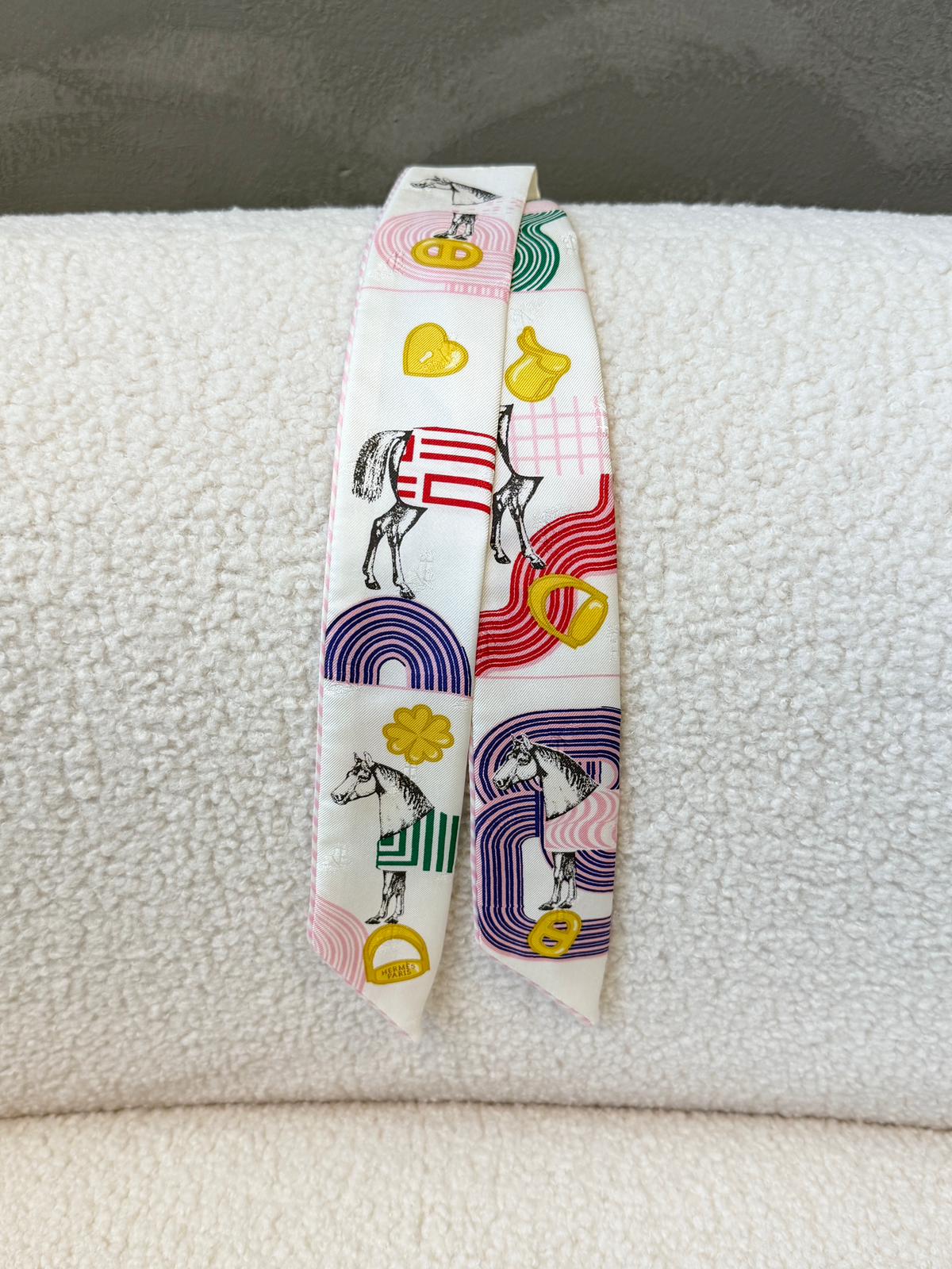 Hermes Garde Robe Pop Twilly Embroidery White/ Multicolor