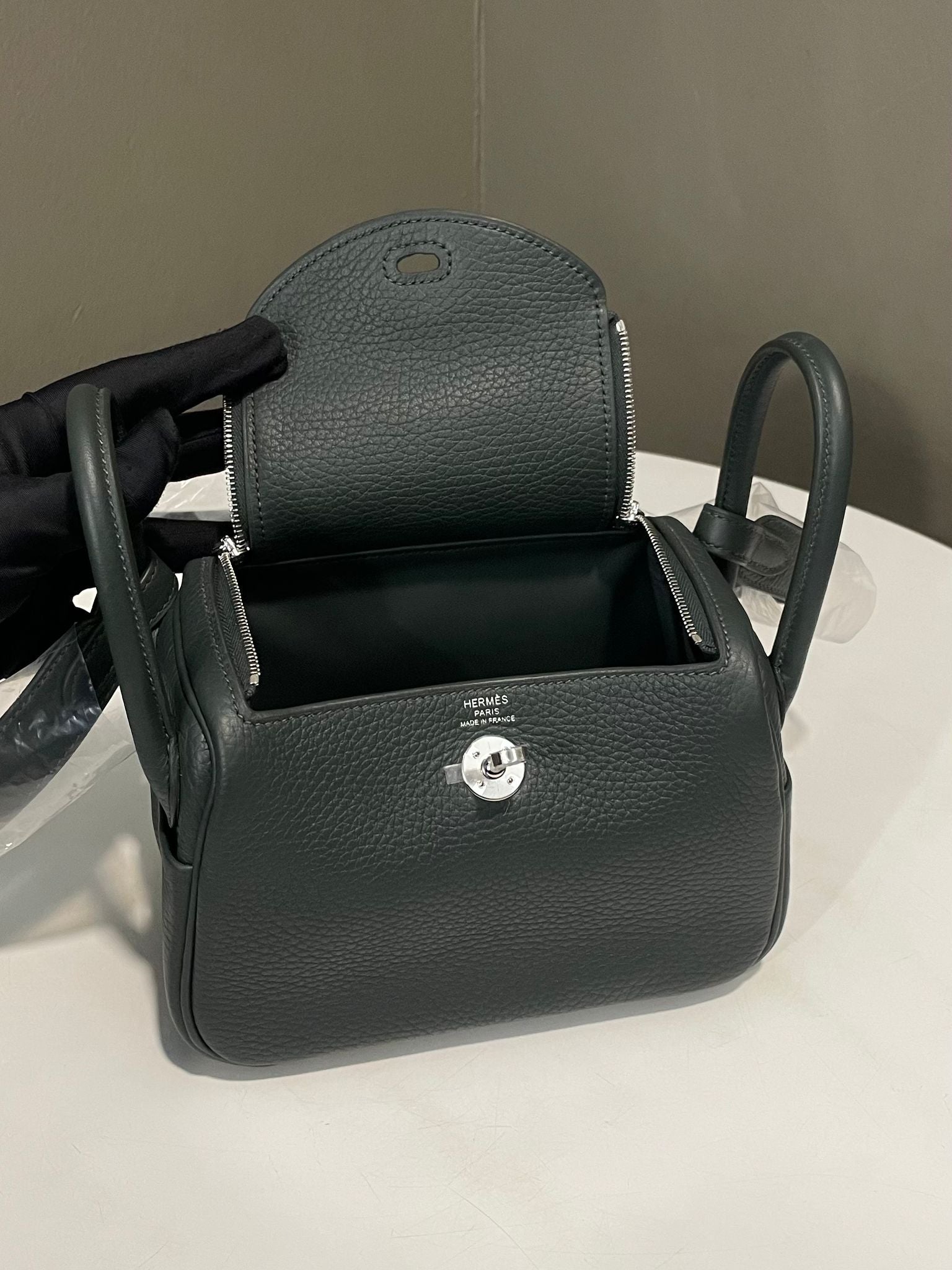Hermes Mini Lindy II Vert Mangrove Clemence