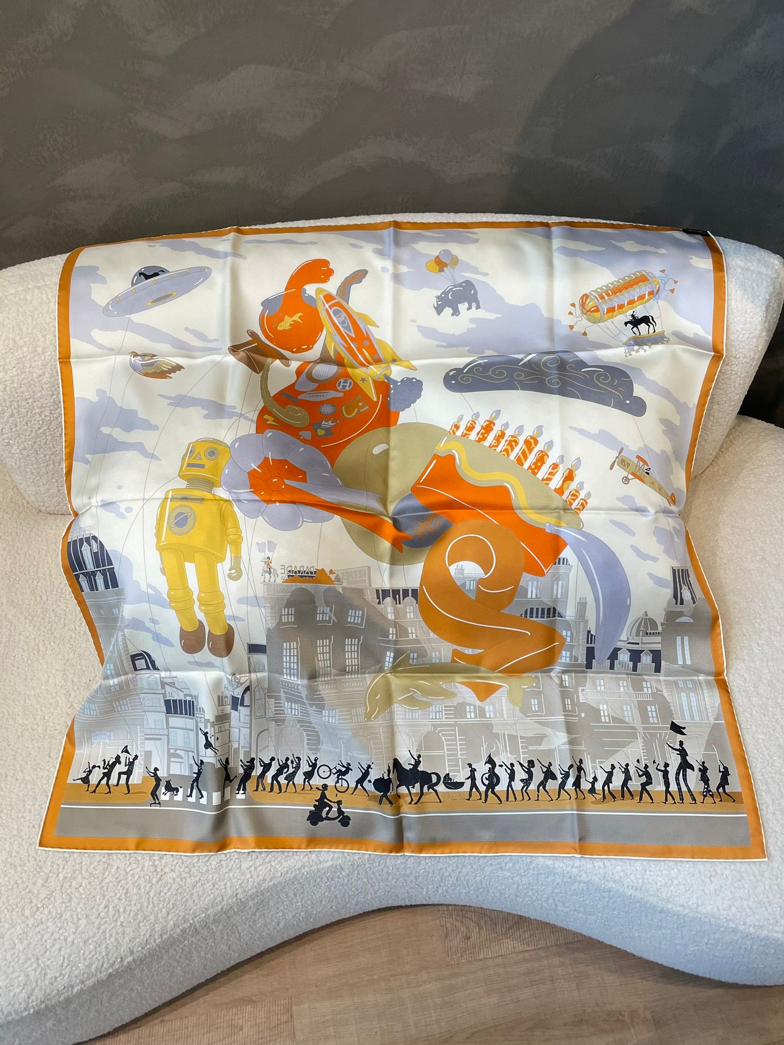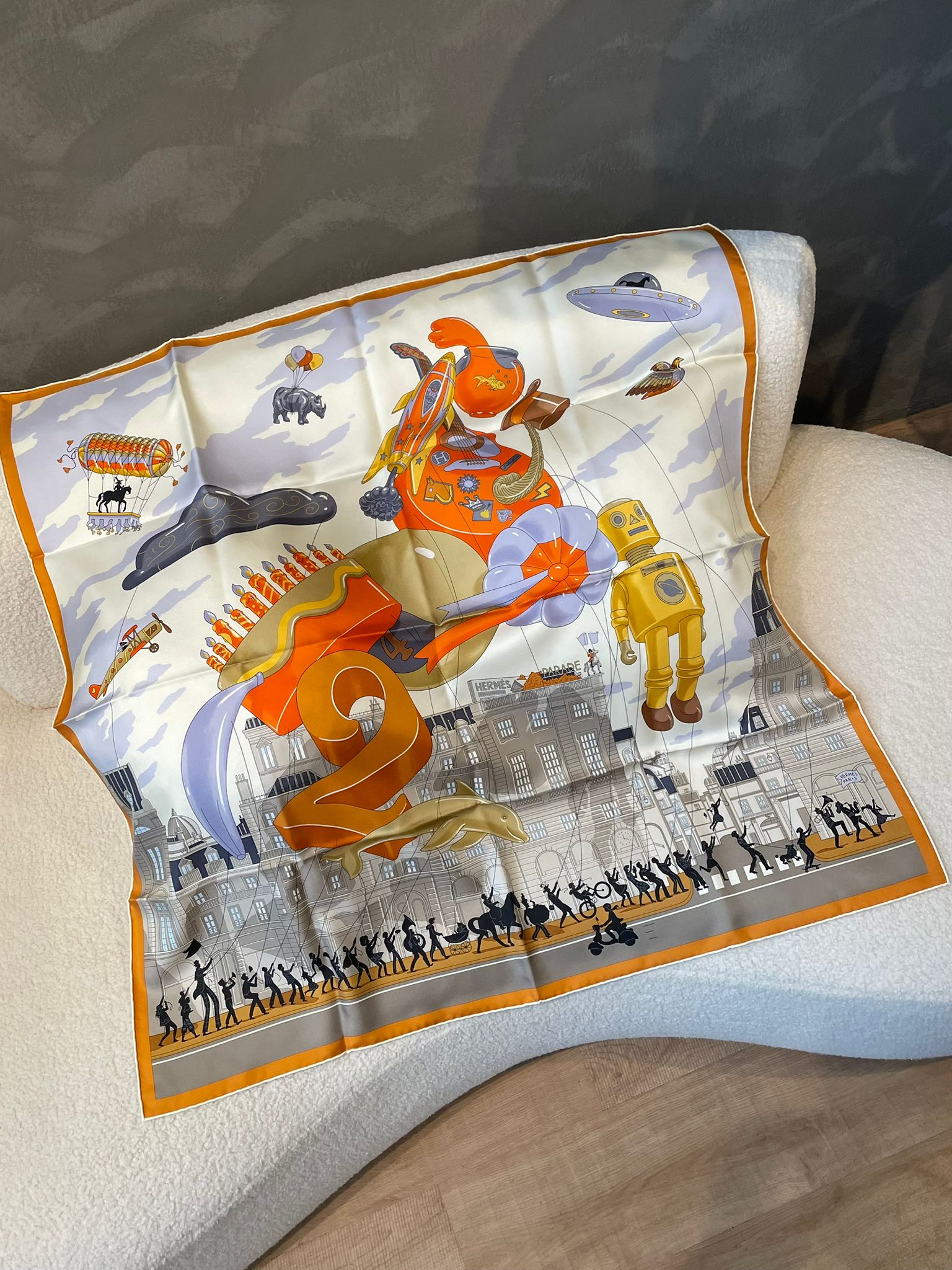 Hermes Parade Scarf 90 Crème / Orange Cuit / Tourterelle