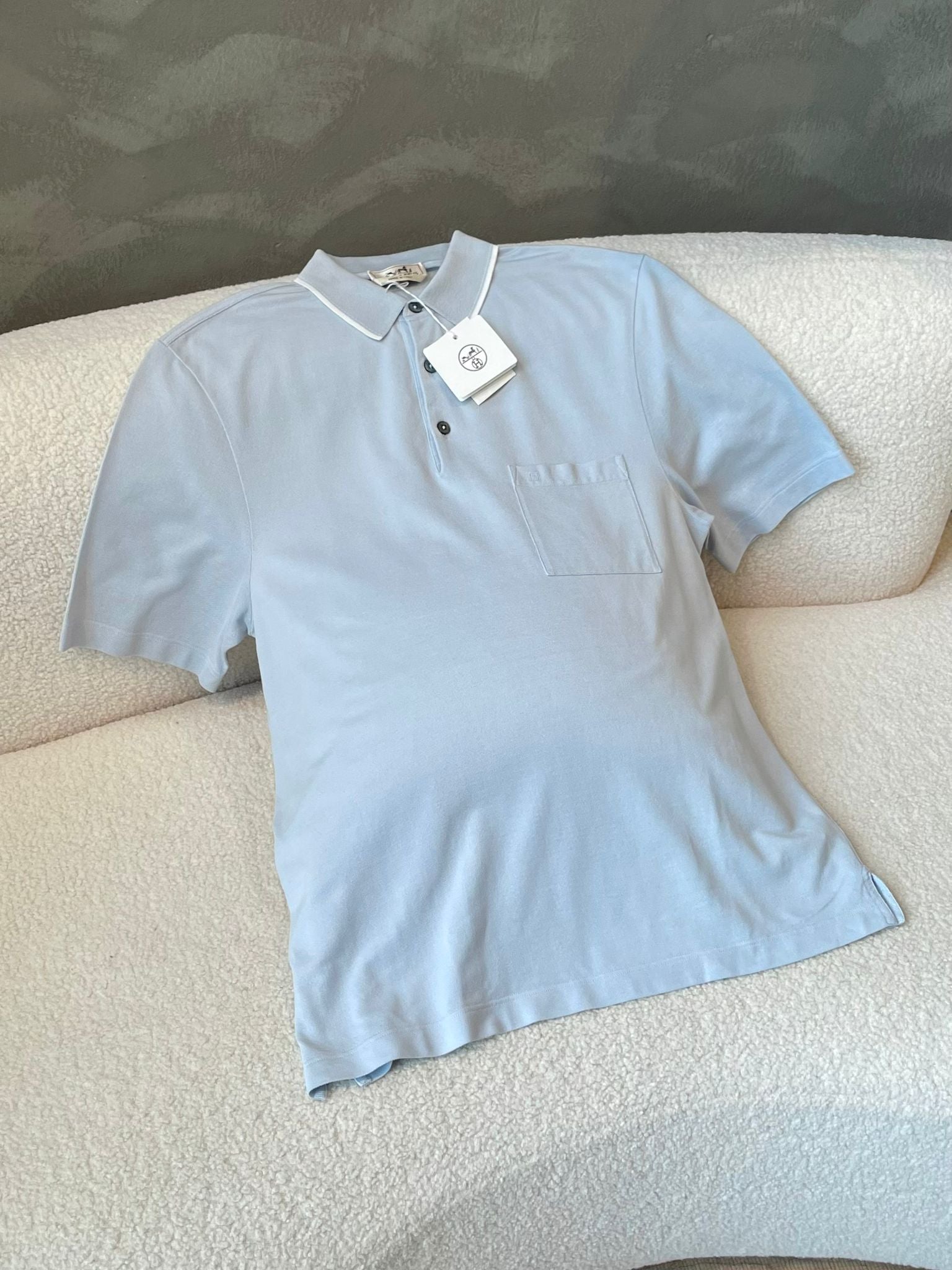 Hermes Piqures Sellier Polo Shirt Light Blue
