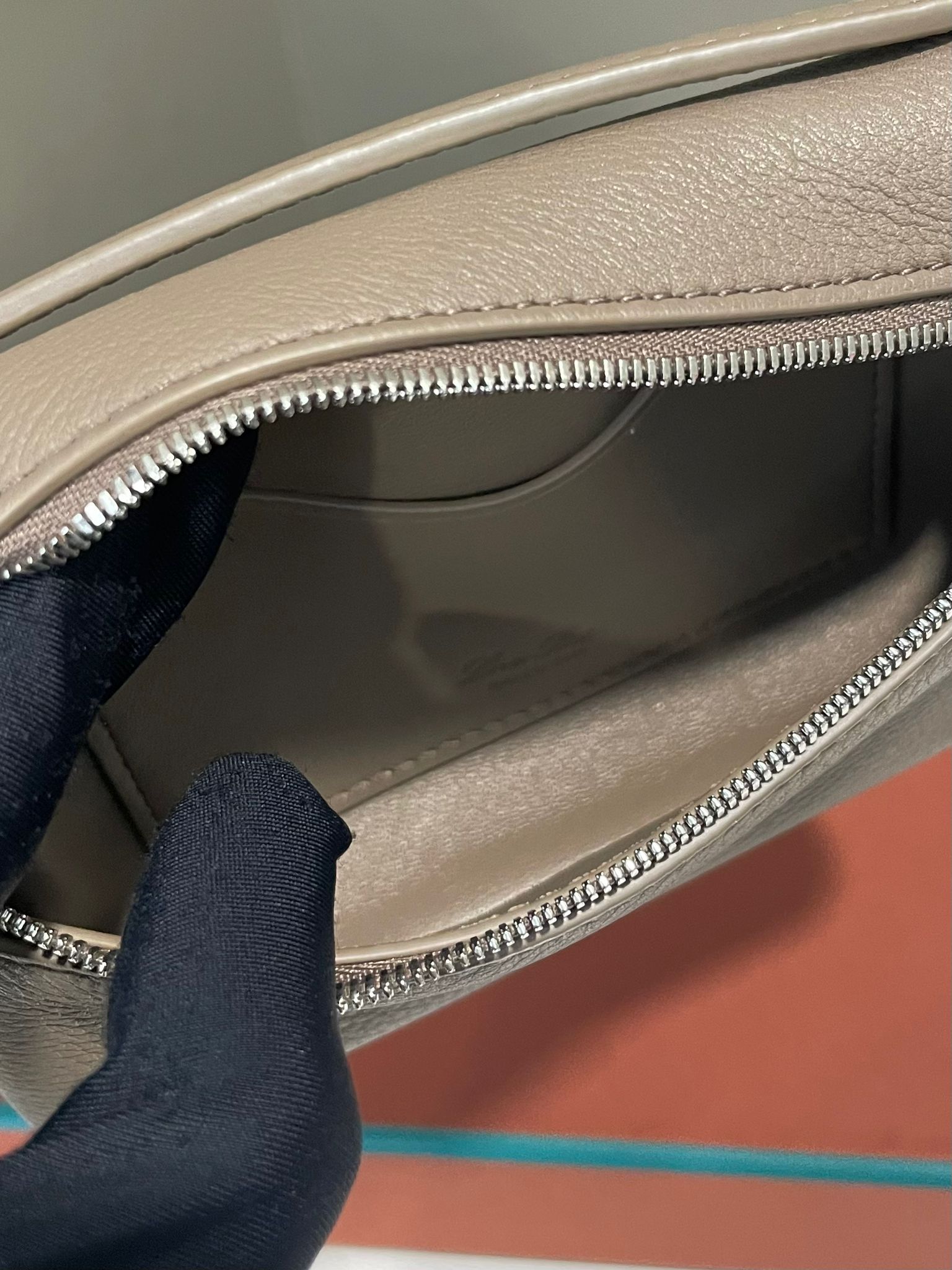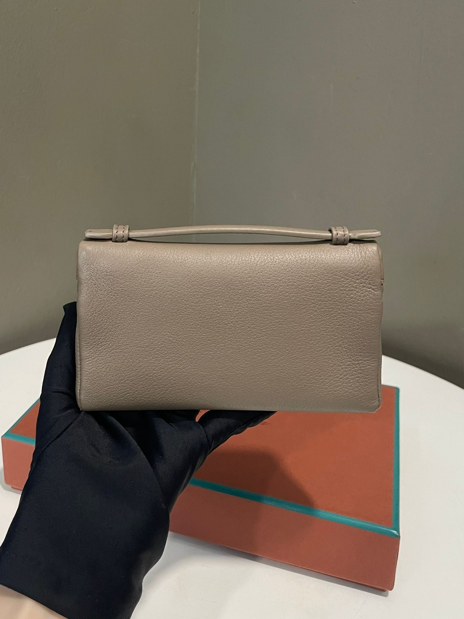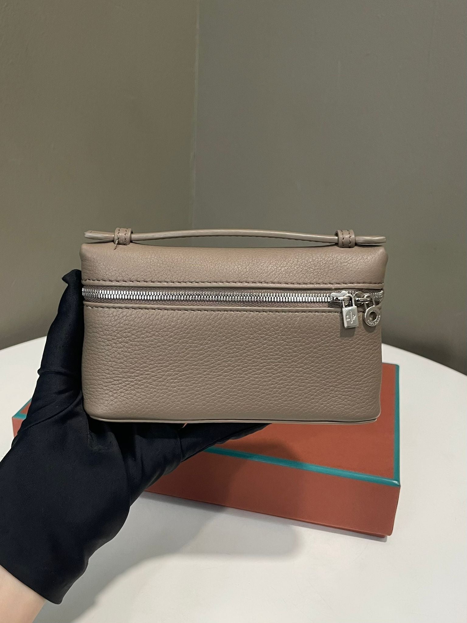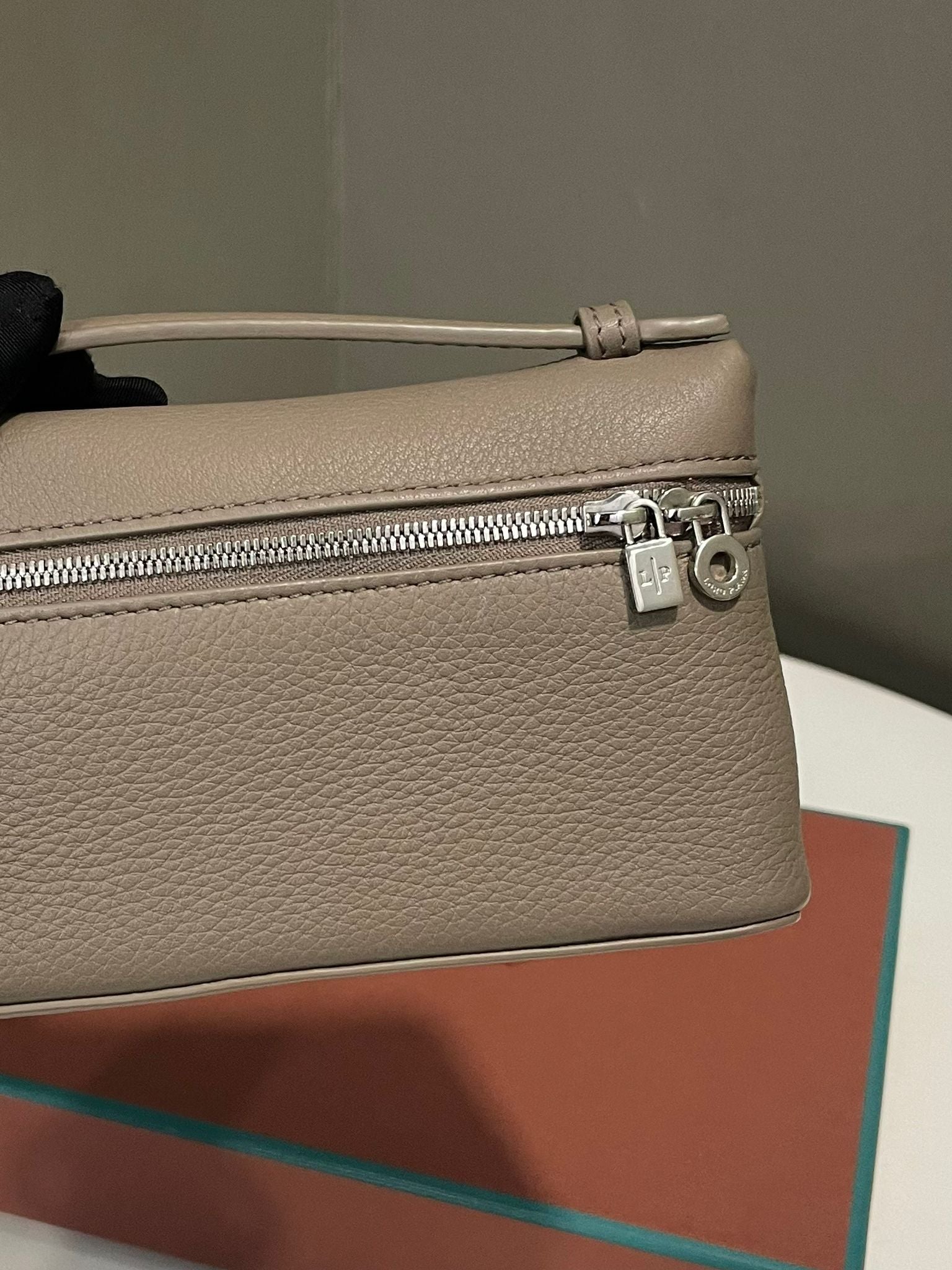 Loro Piana Extra Pocket Mini Pouch Chain Warm Mastic Etoupe Grainy Calfskin