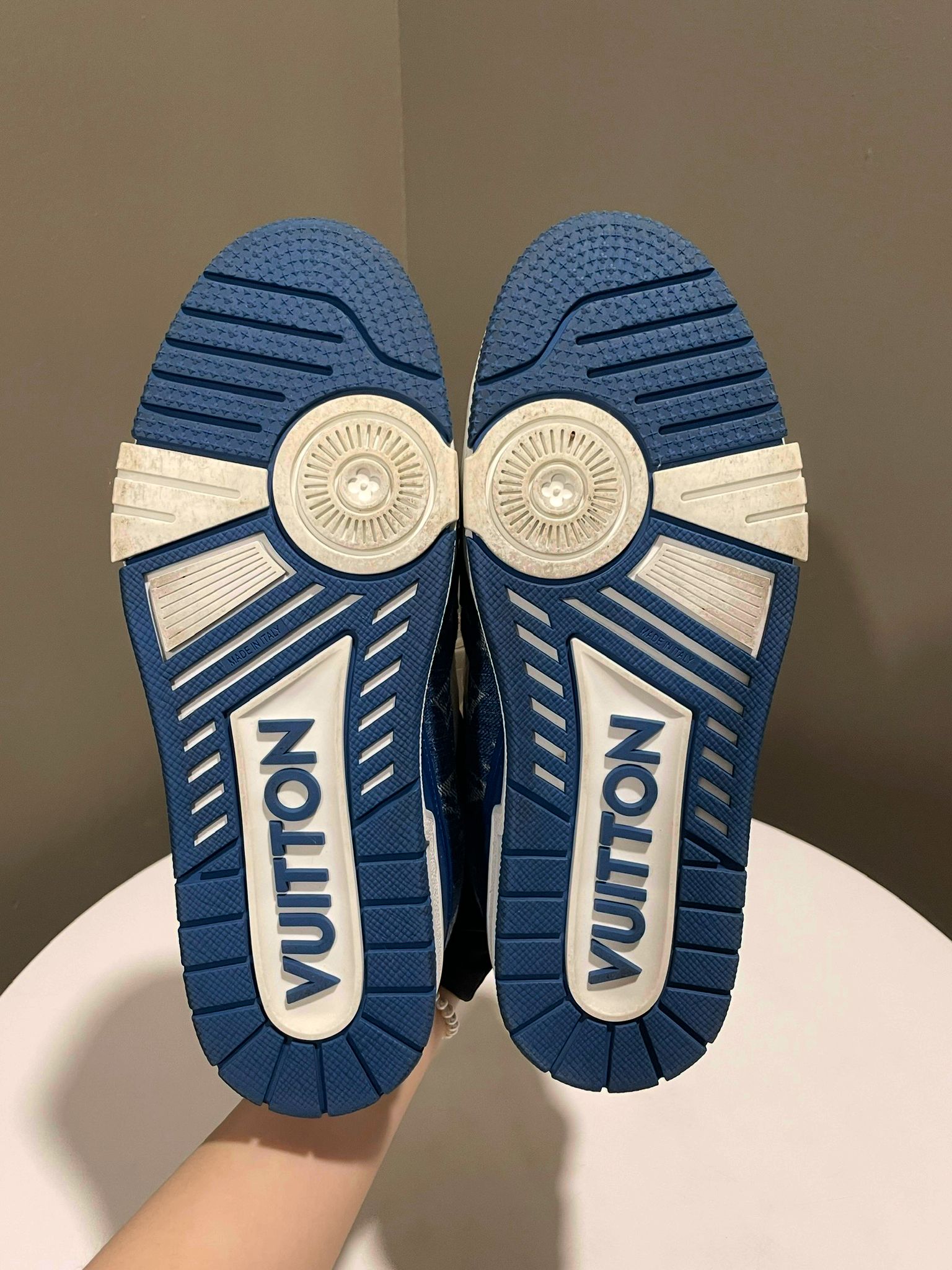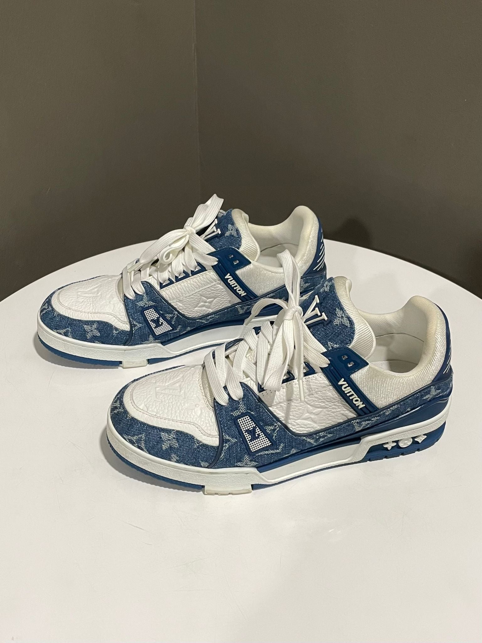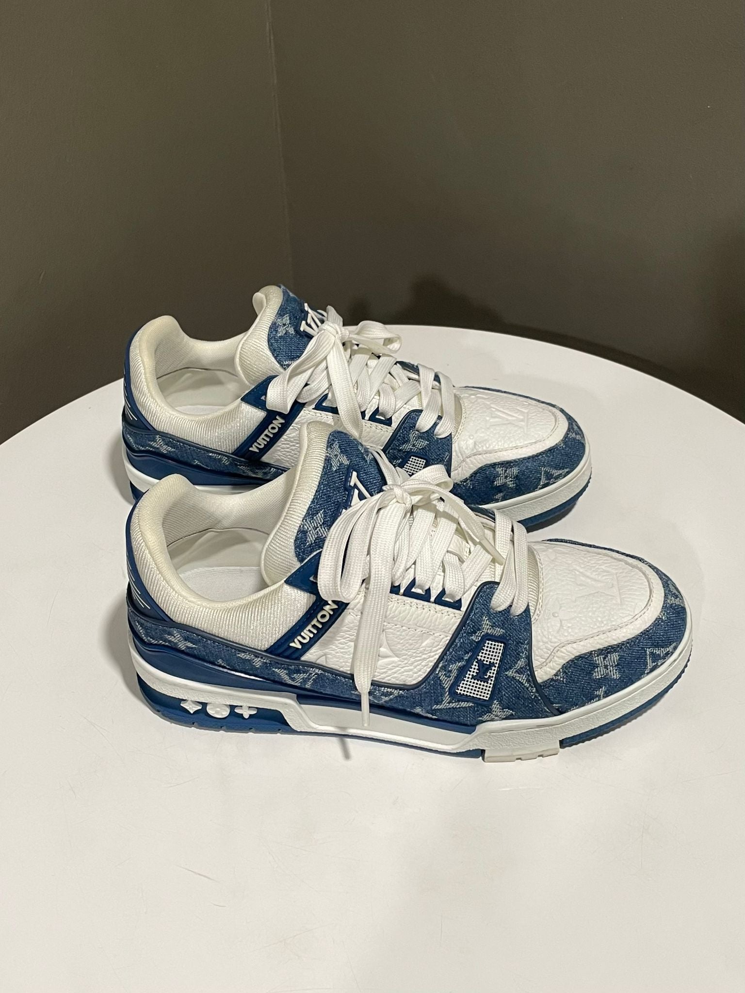 Louis Vuitton Trainer Sneakers Blue Denim / White Monogram Size 40