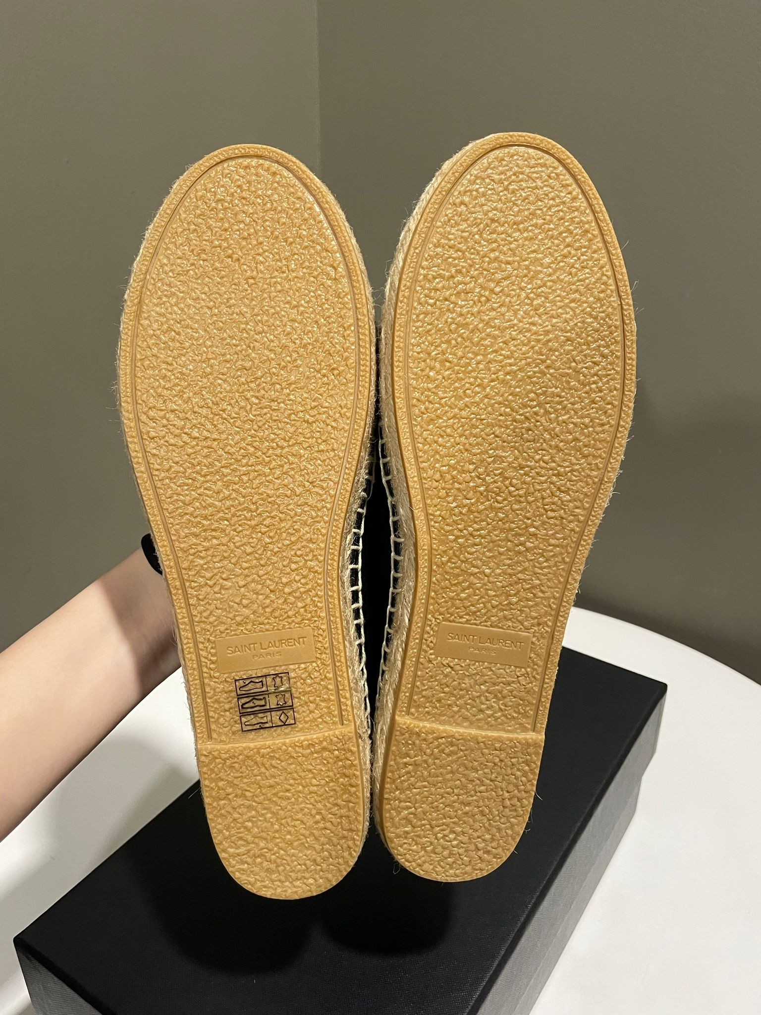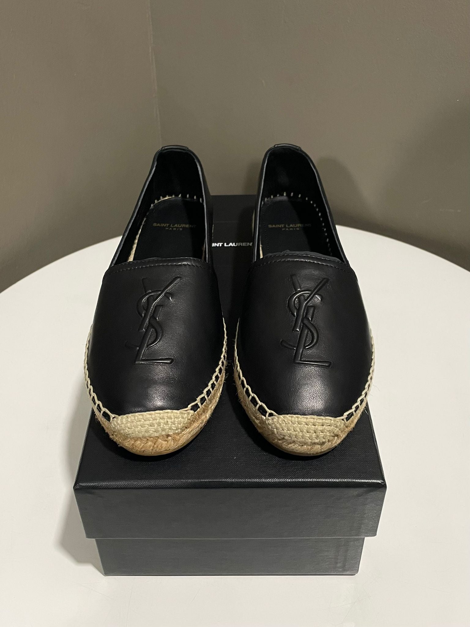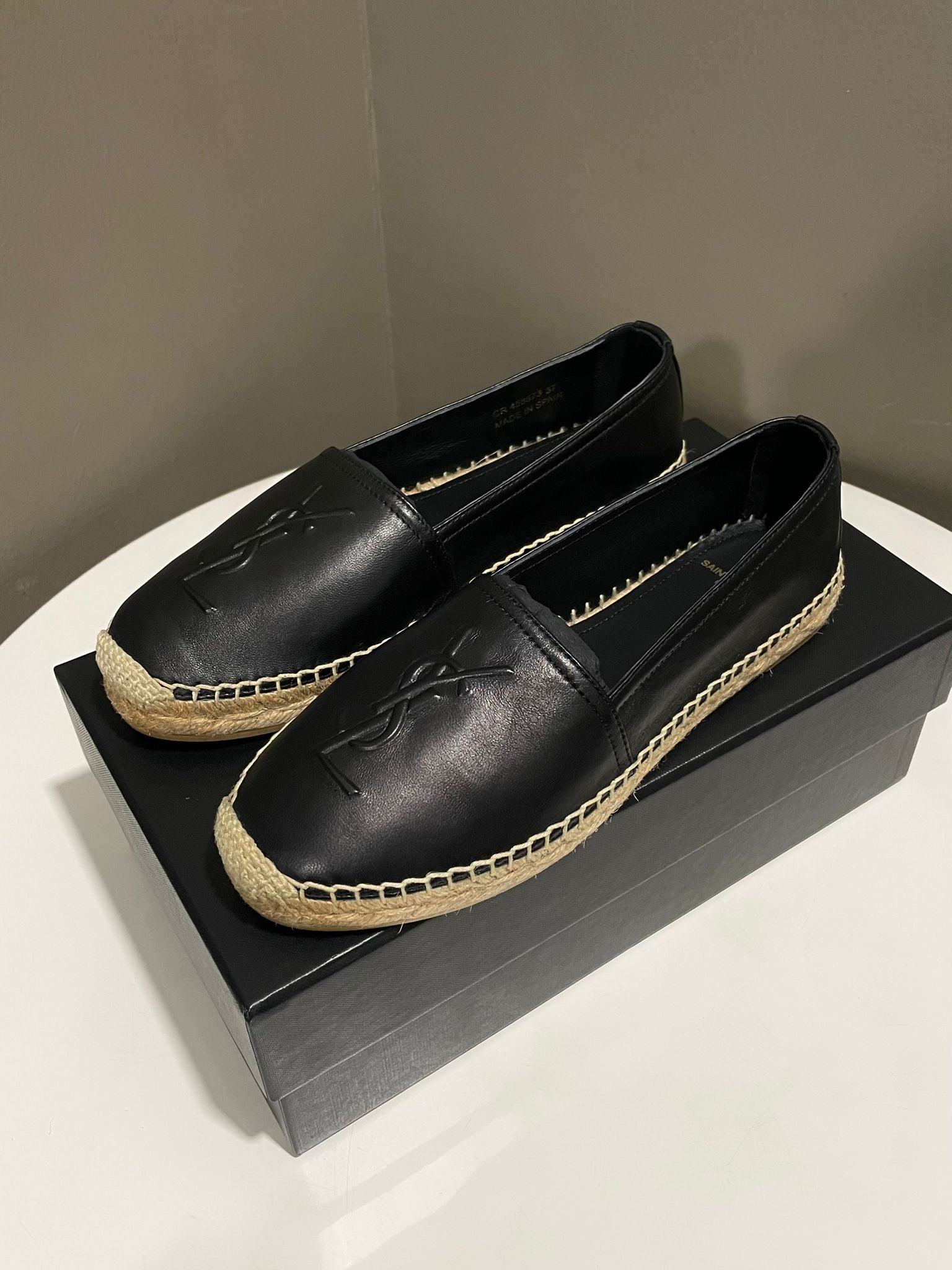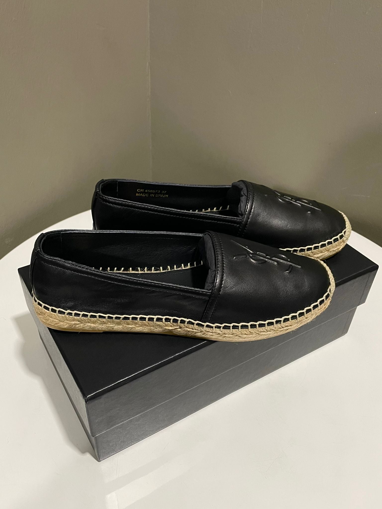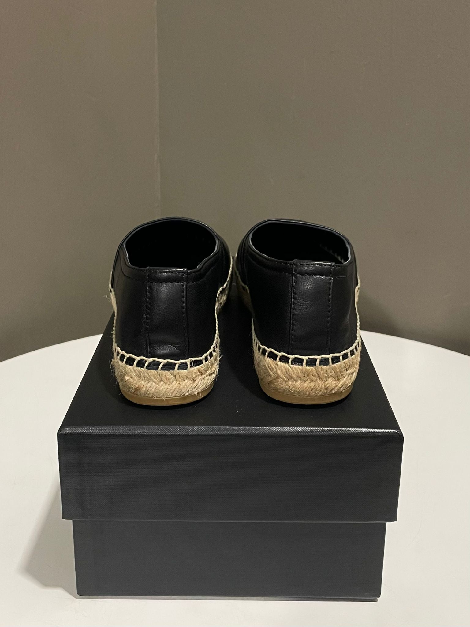 Saint Laurent Espadrilles Flats Black Embossed Leather Size 37